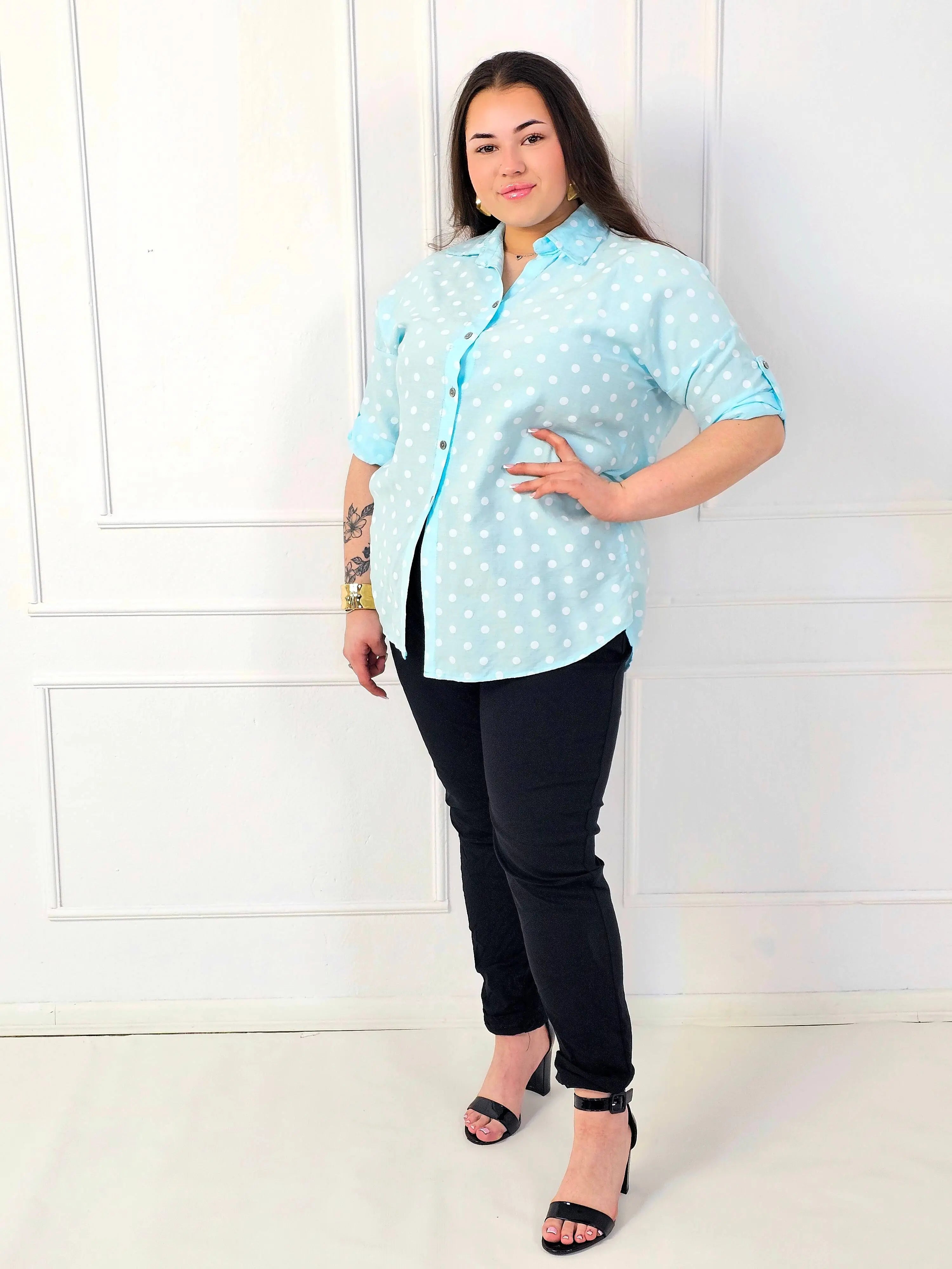 Bluzka plus size koszulowa w grochy – wygodna bluzka XXL