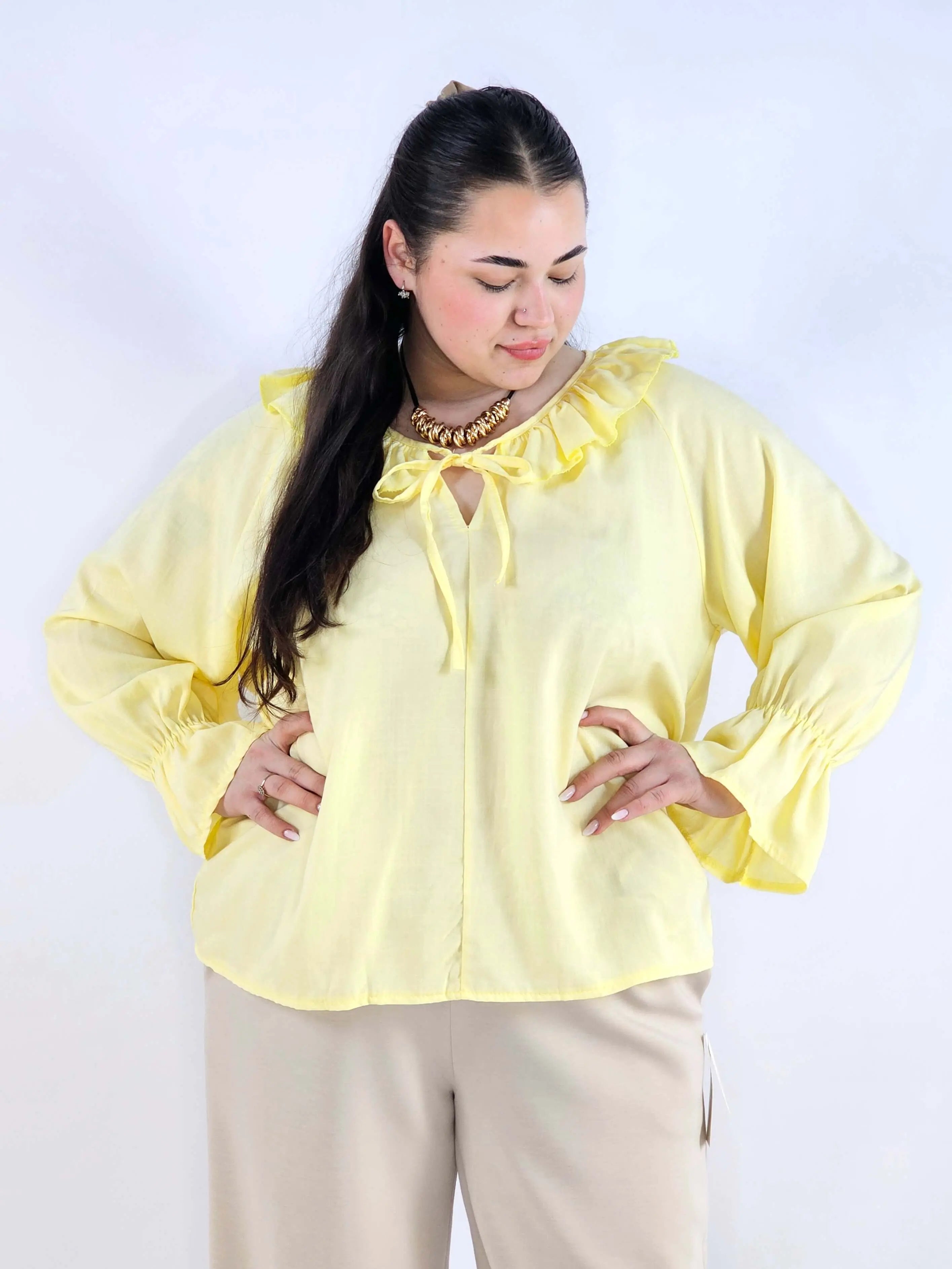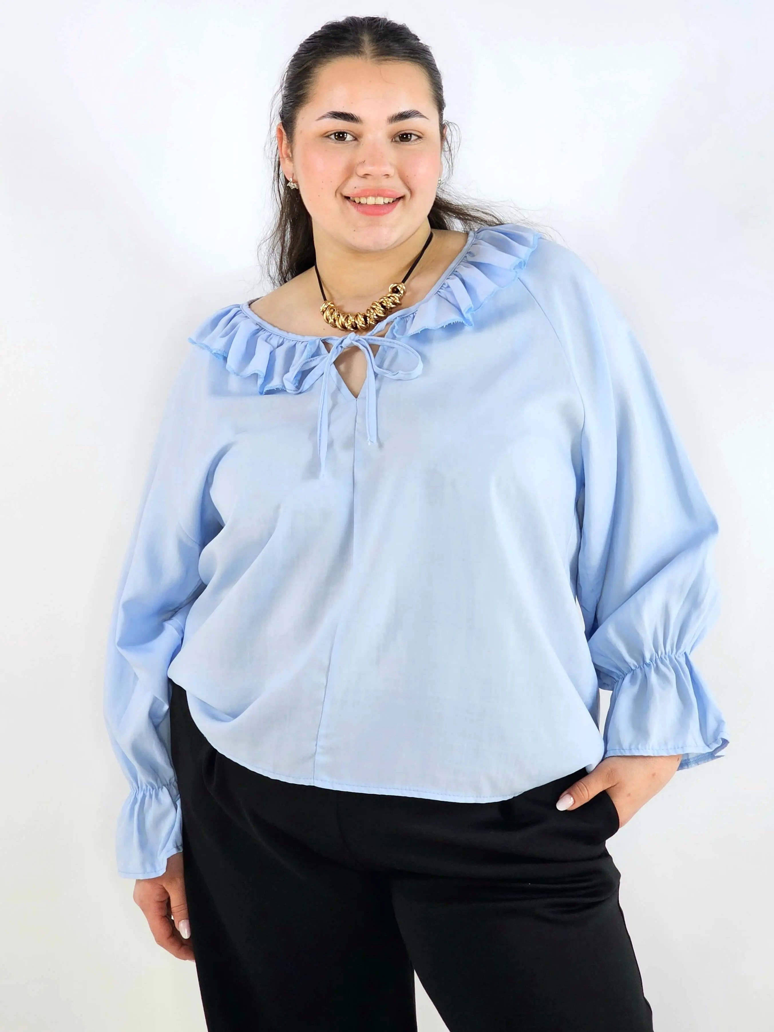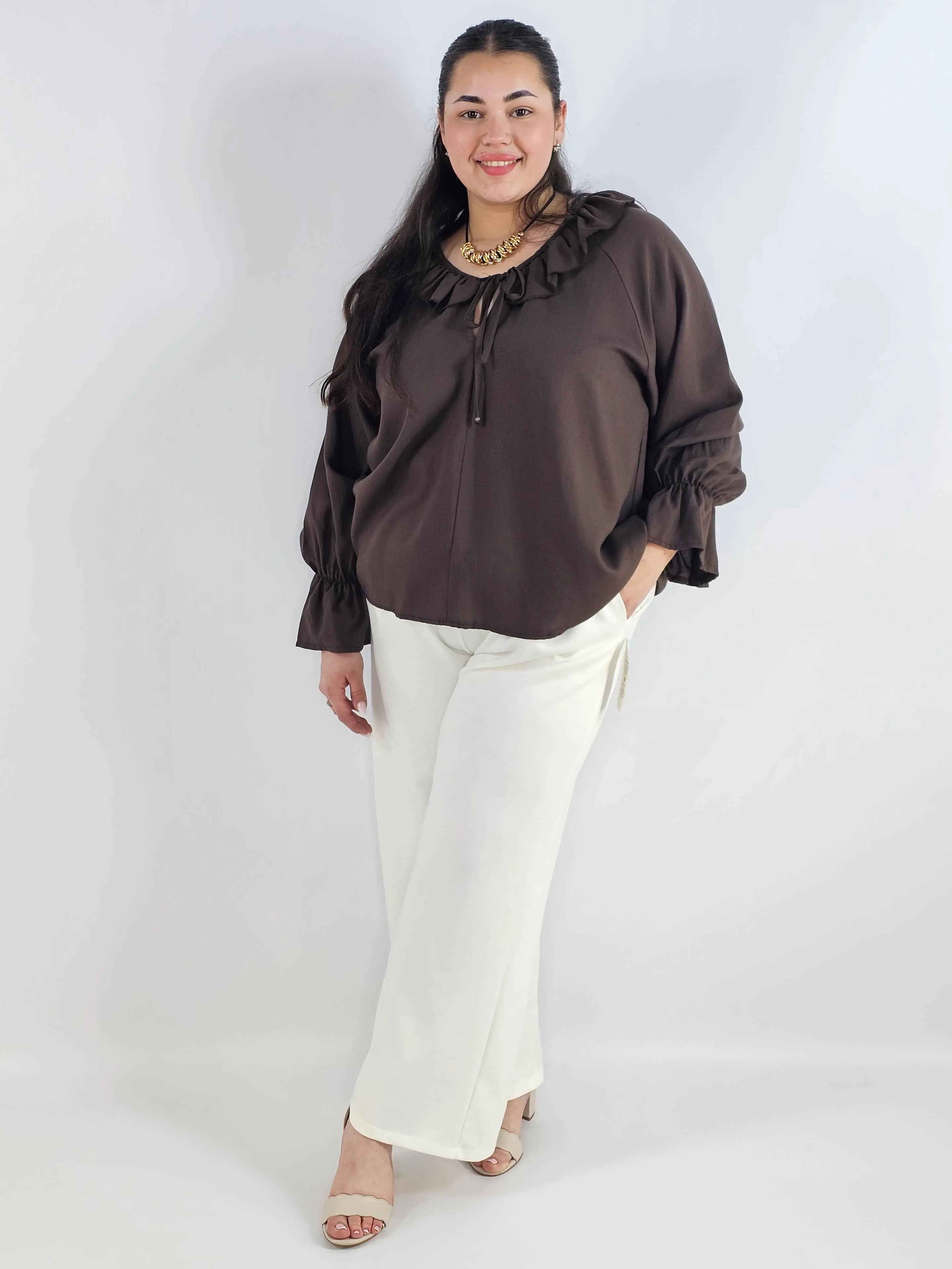 Bluzka plus size z falbaną – romantyczna elegancja w lekkim wydaniu