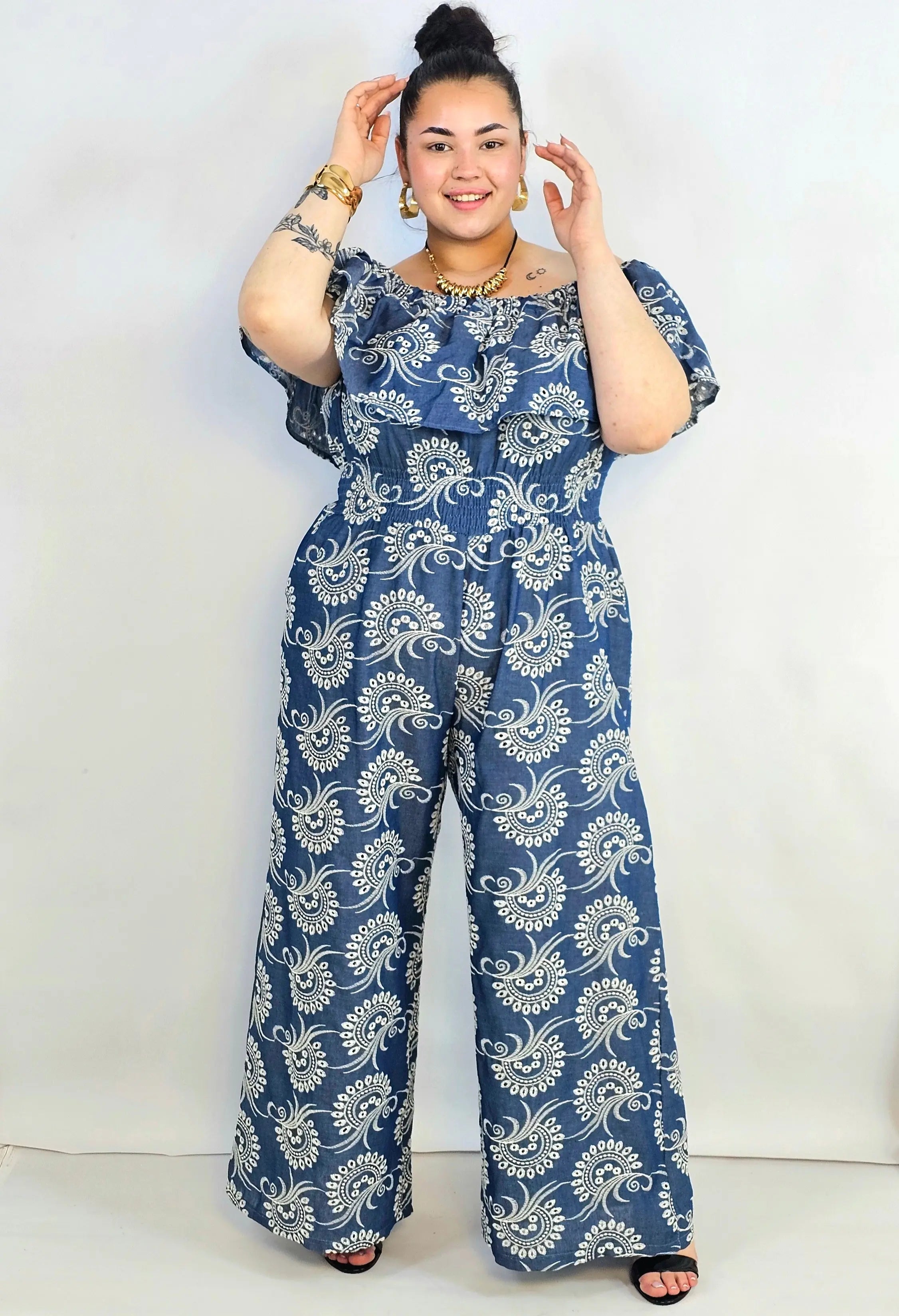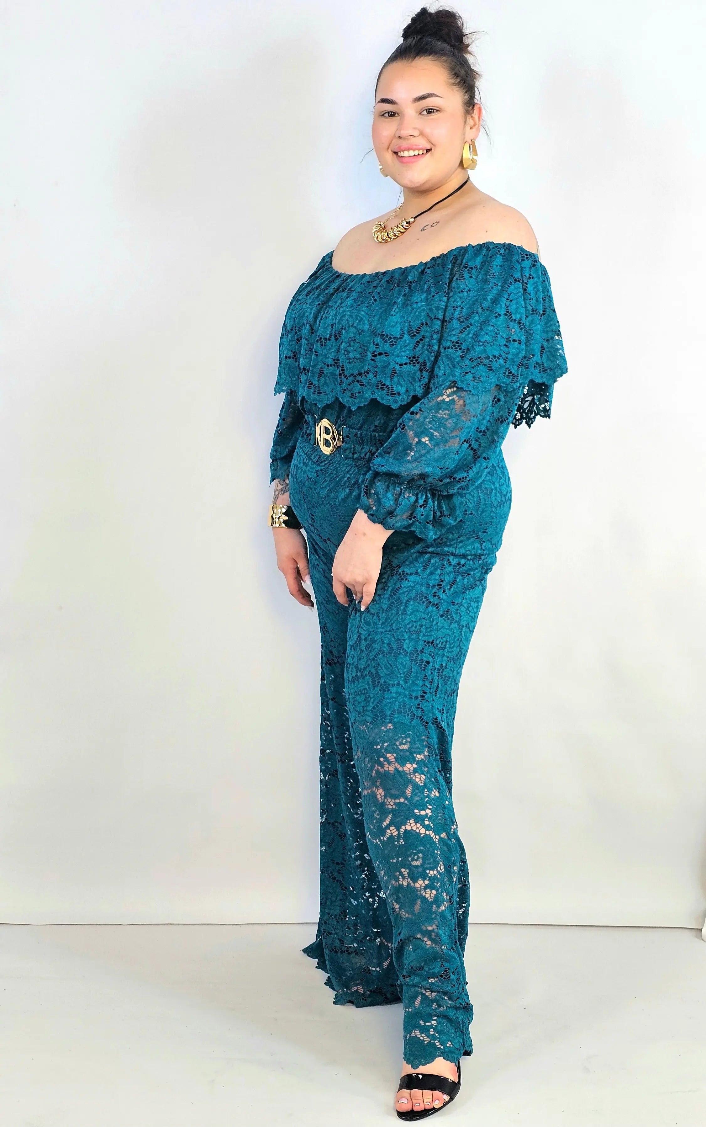 Kombinezon plus size koronkowy z hiszpańskim dekoltem – elegancja XXL