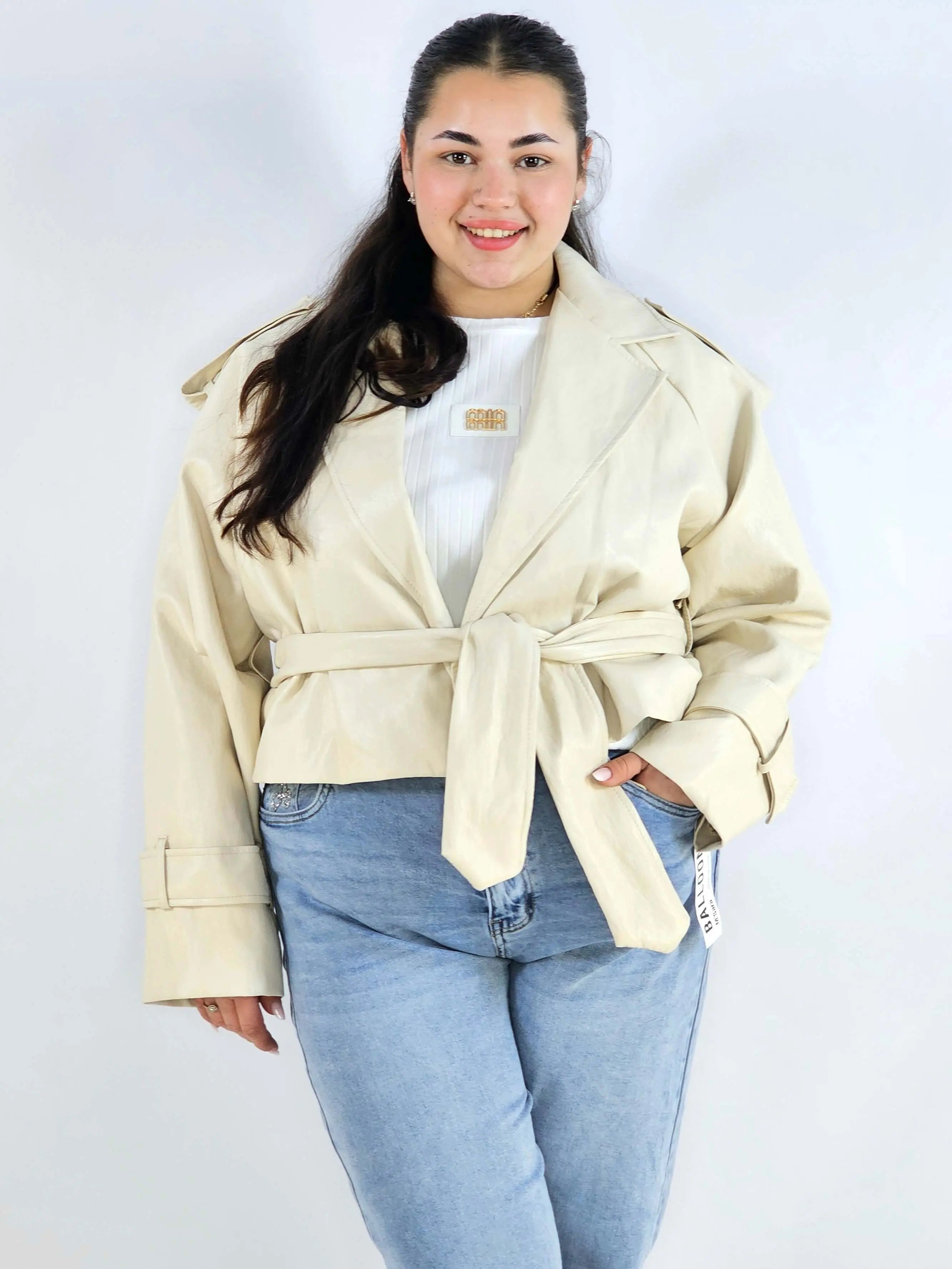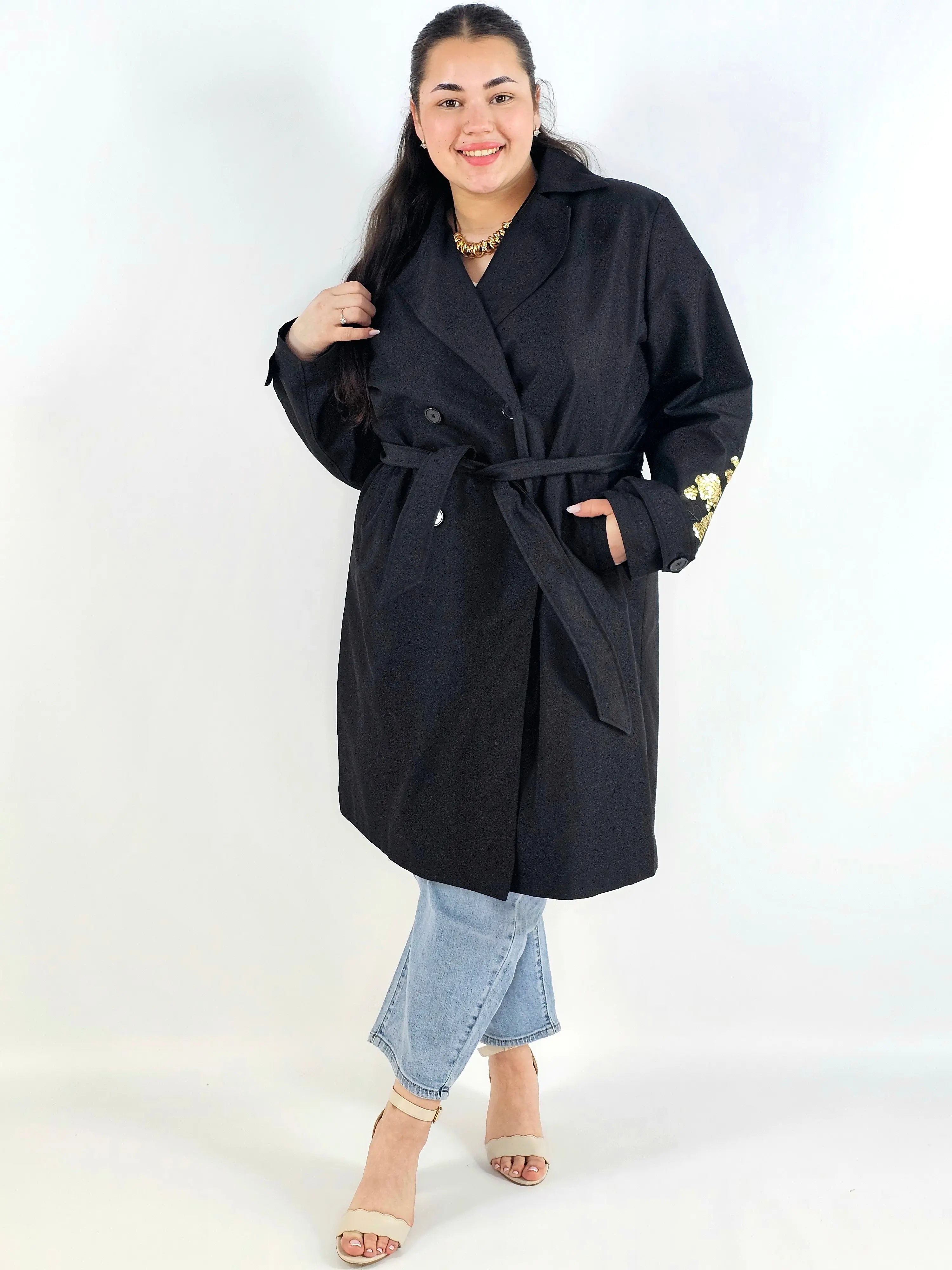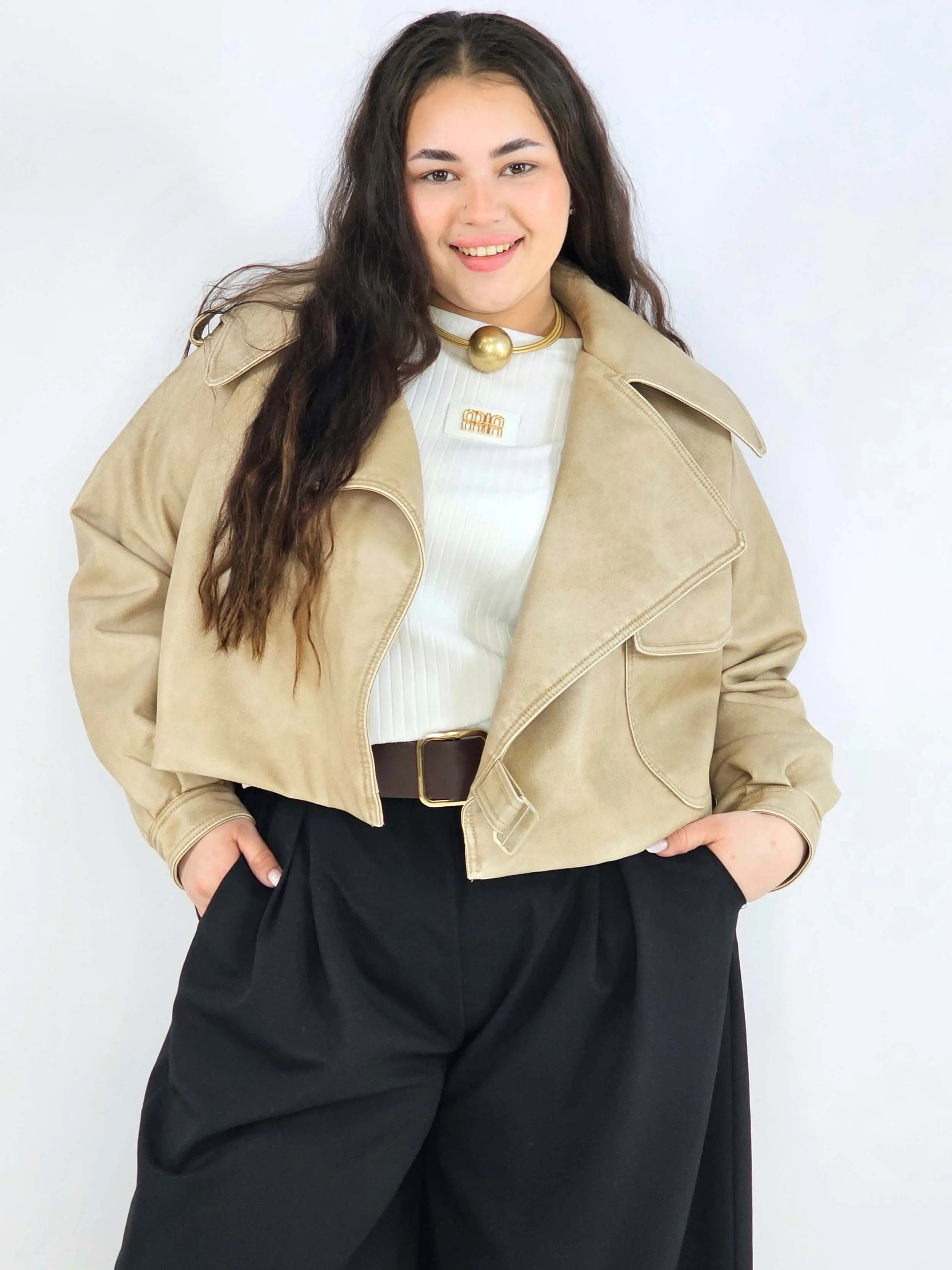 Płaszcz plus size dwurzędowy z paskiem – elegancki płaszcz XXL
