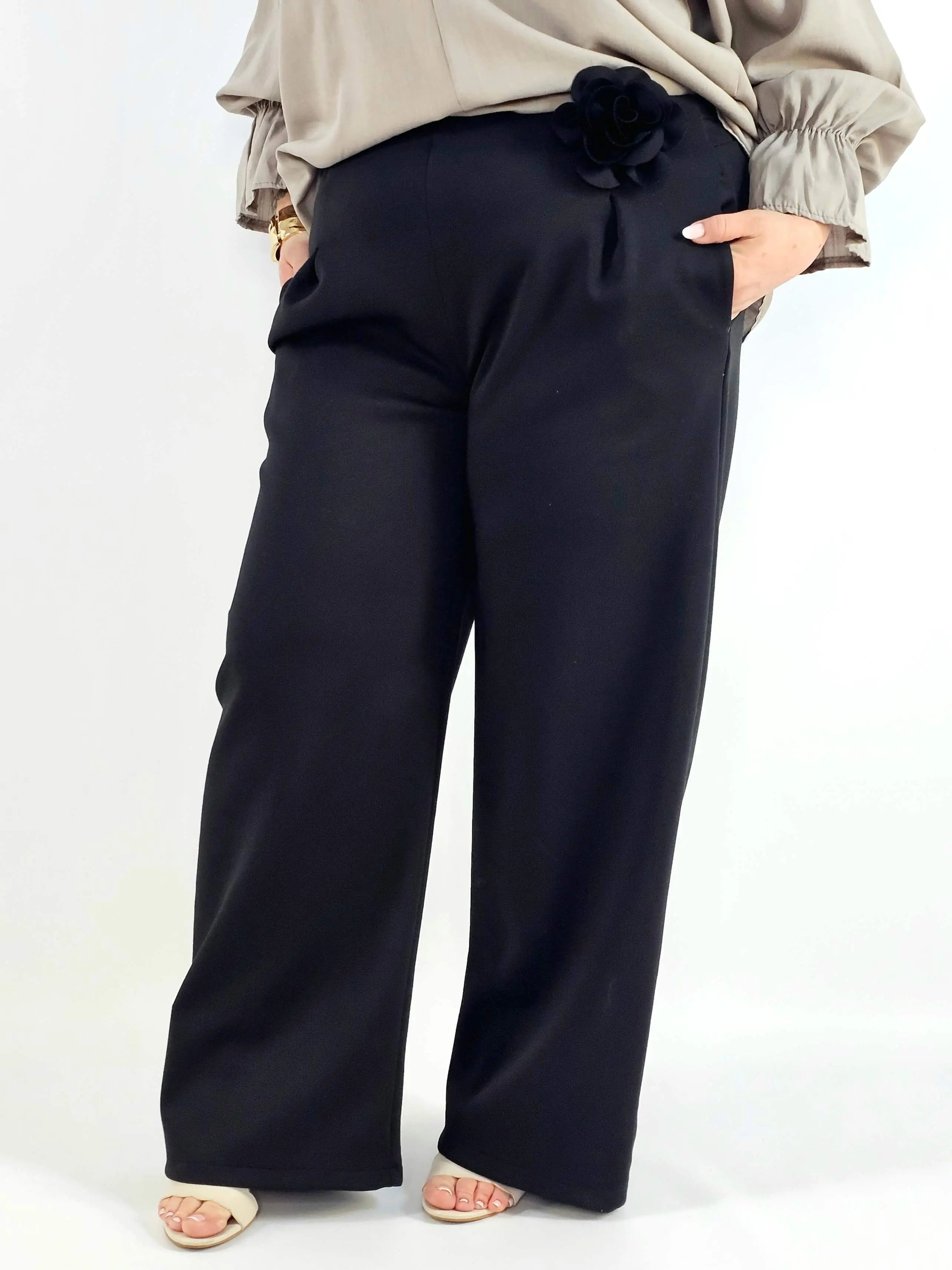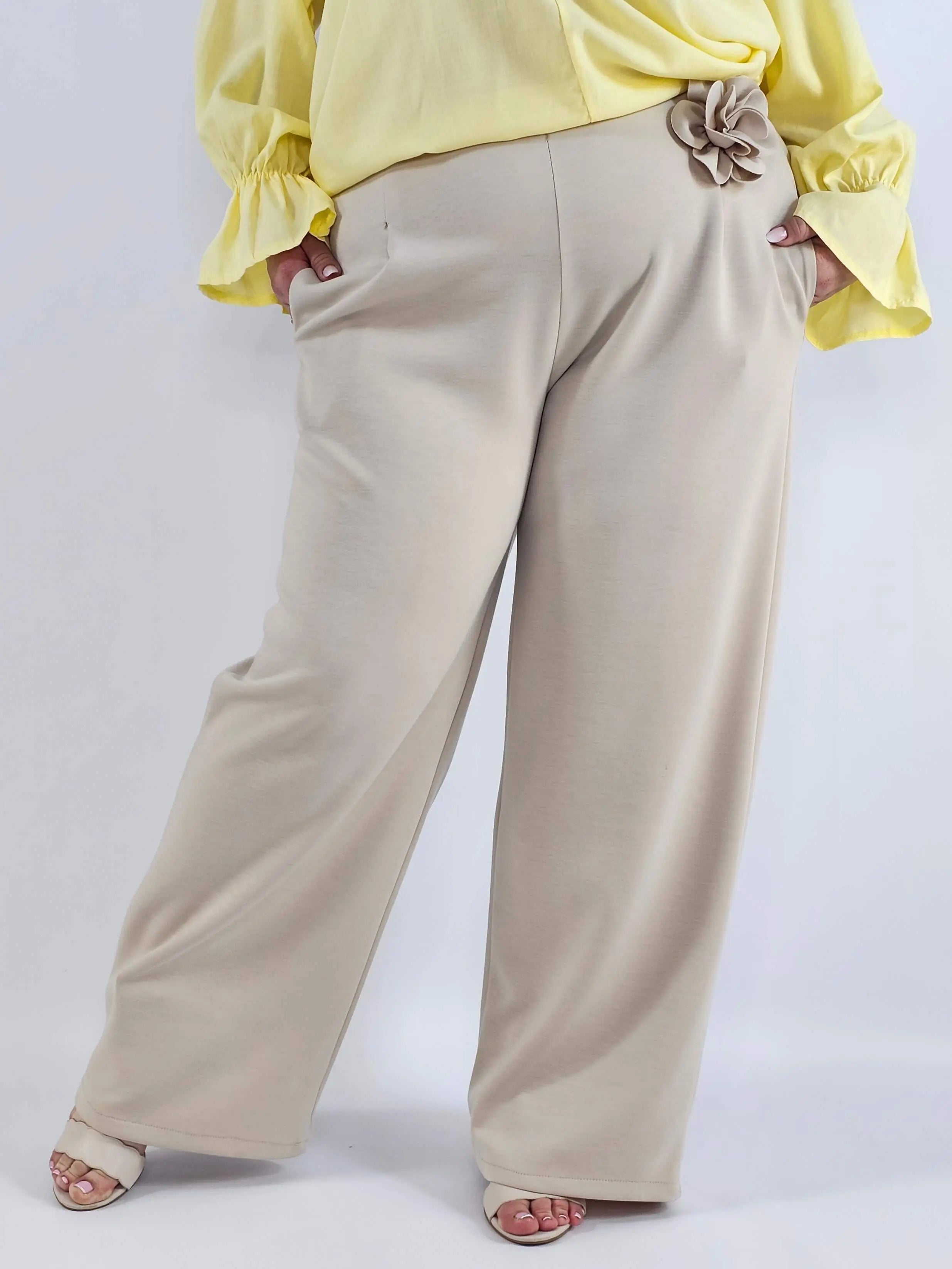 Spodnie plus size szerokie z aplikacją – elegancja i wygoda w jednym