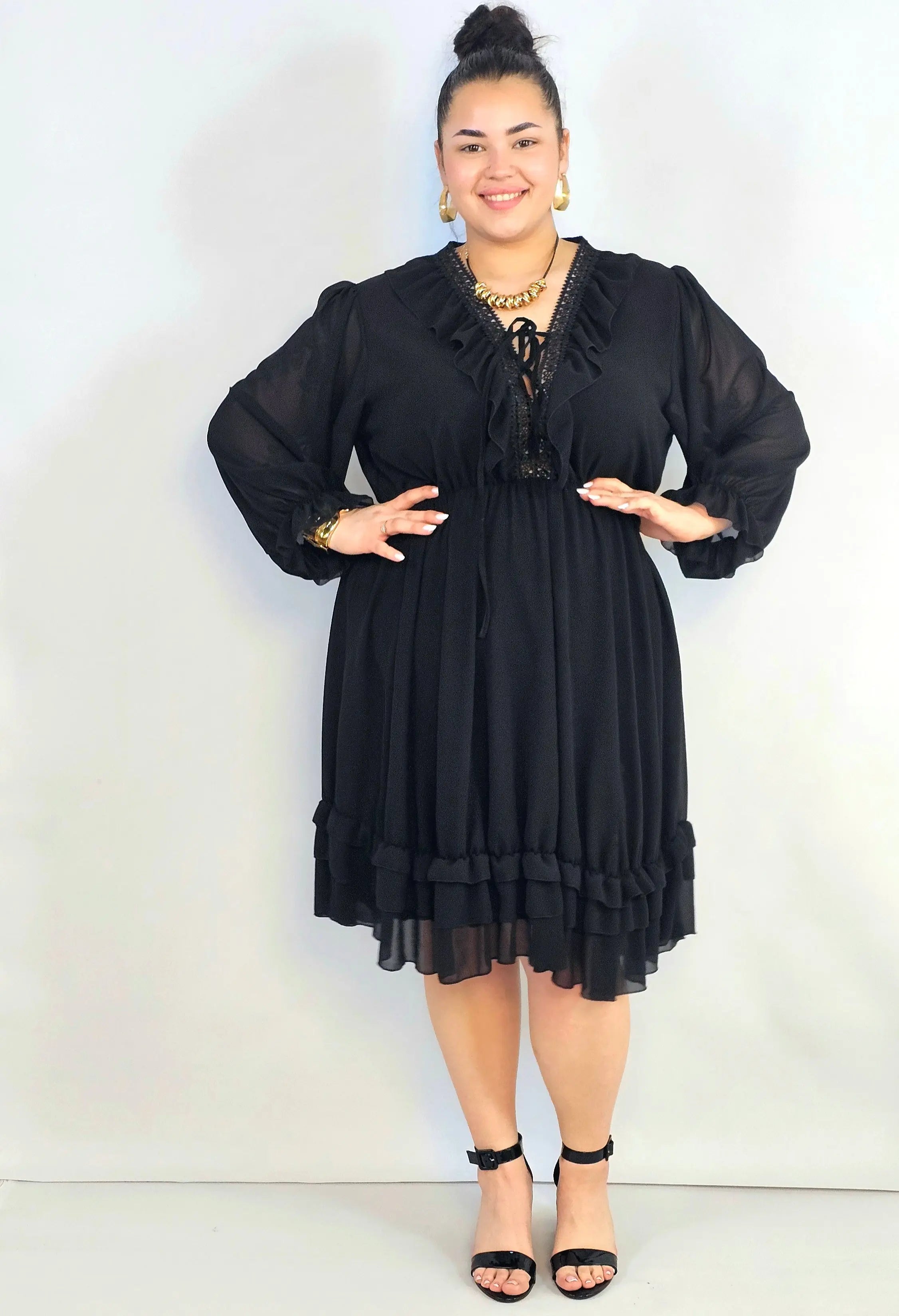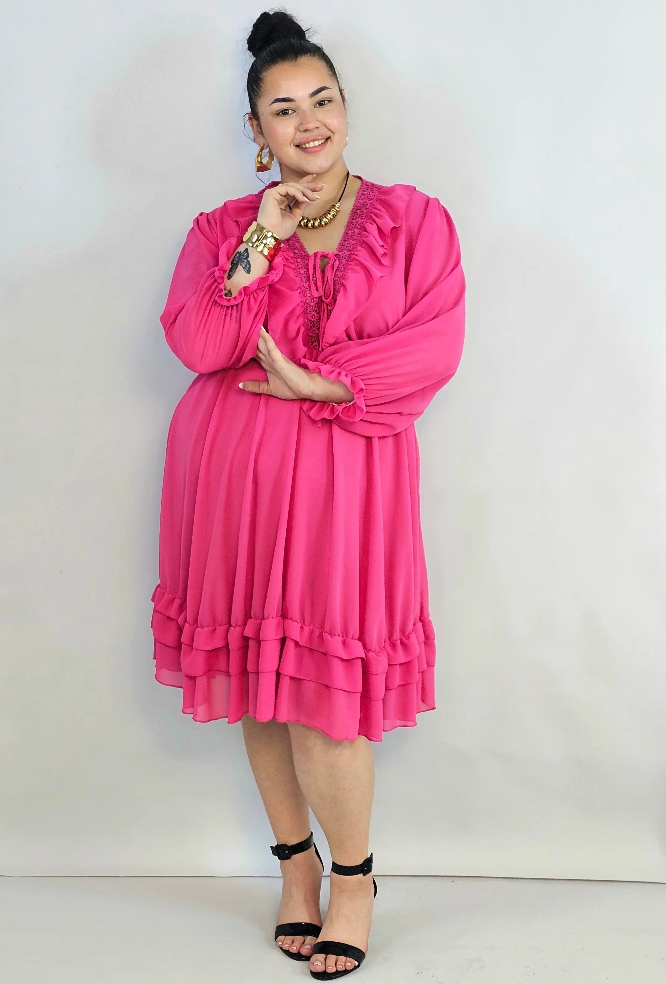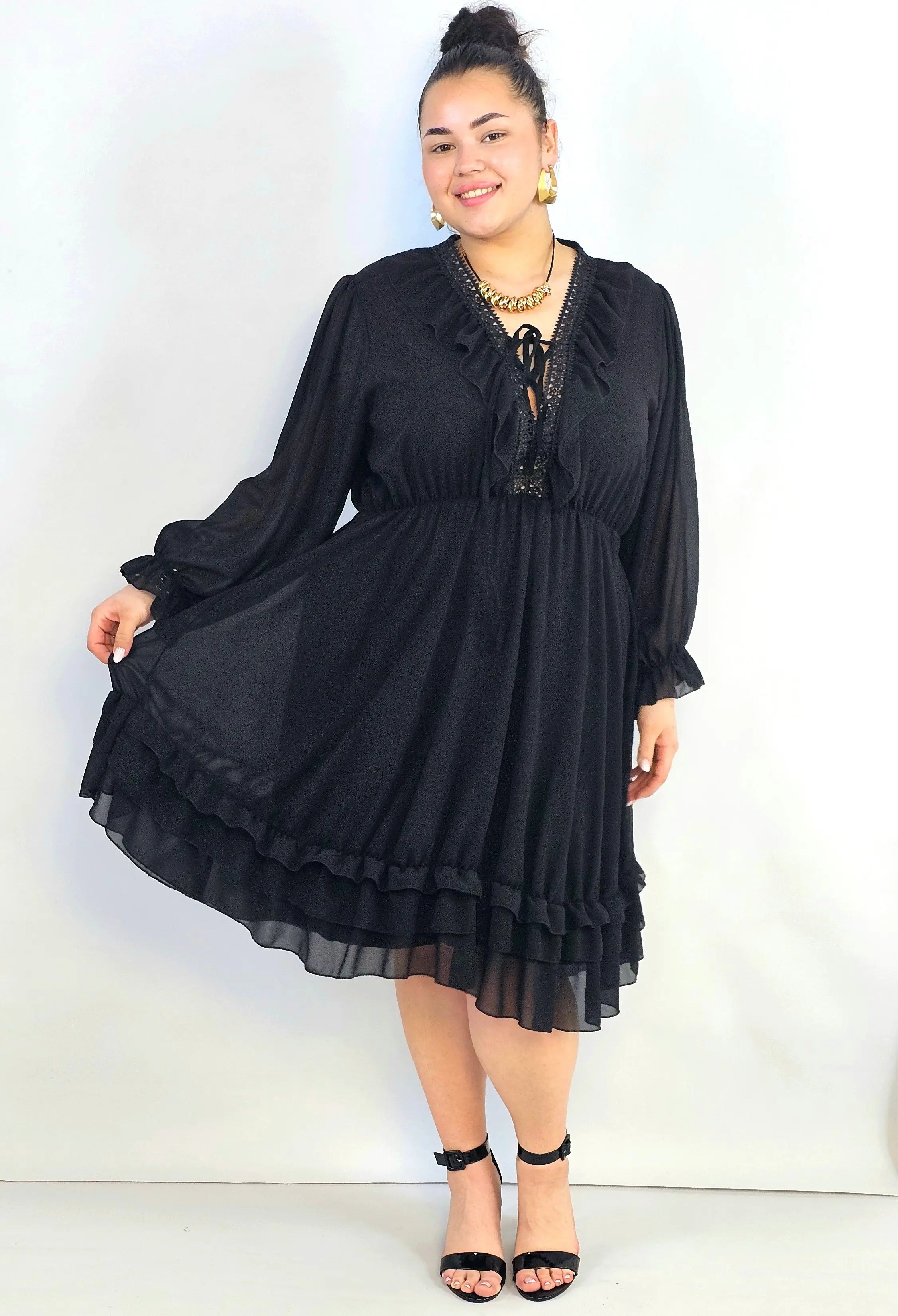 Sukienka plus size kopertowa z falbankowym rękawem – elegancja XXL