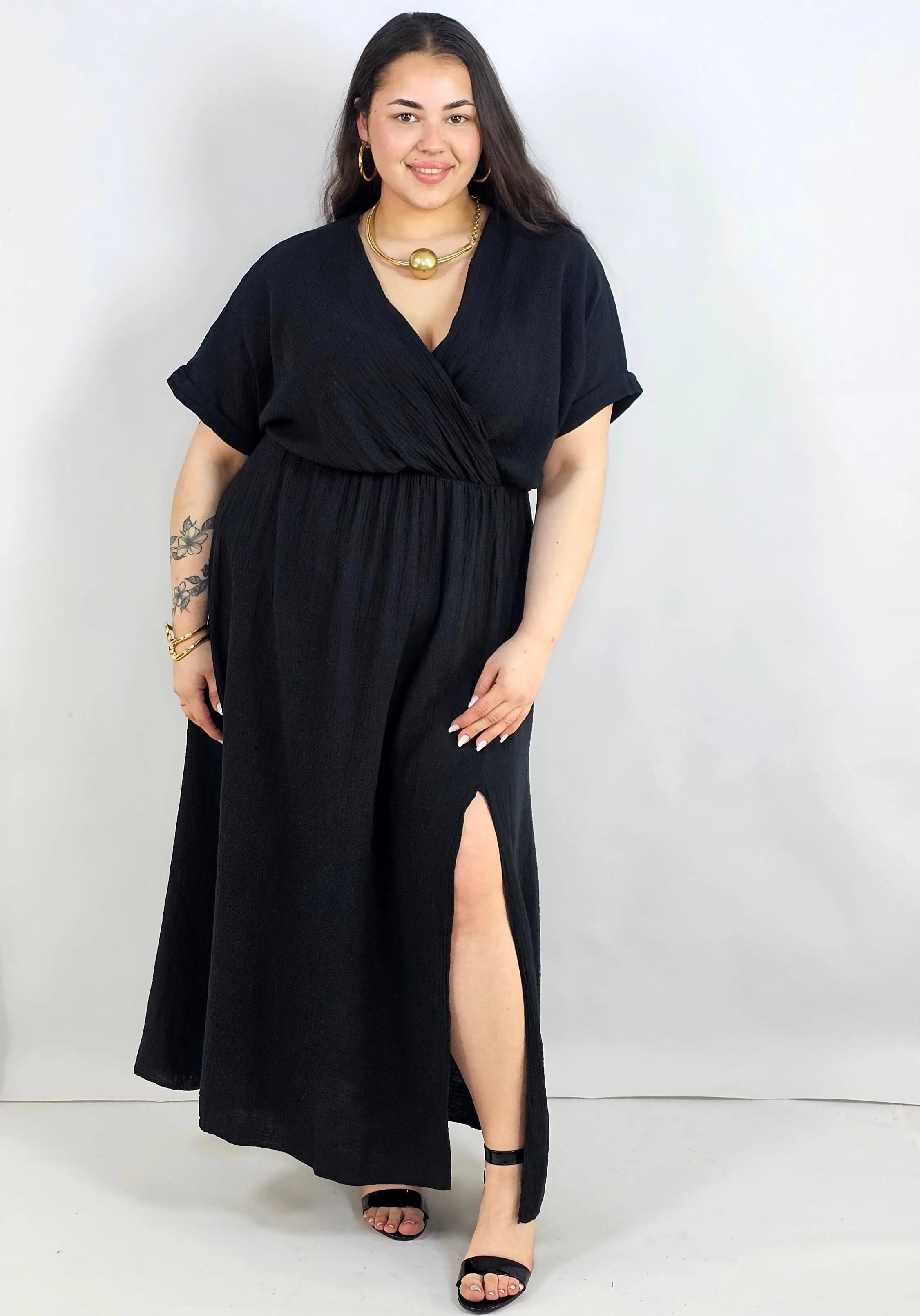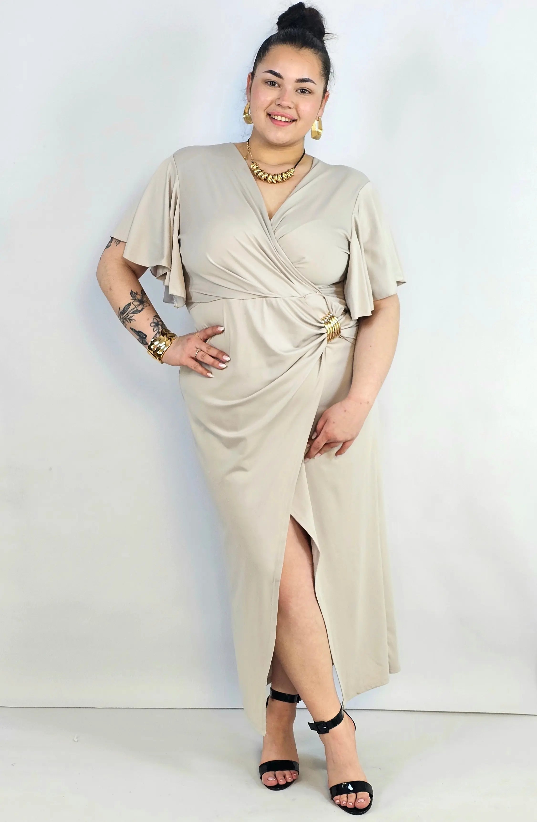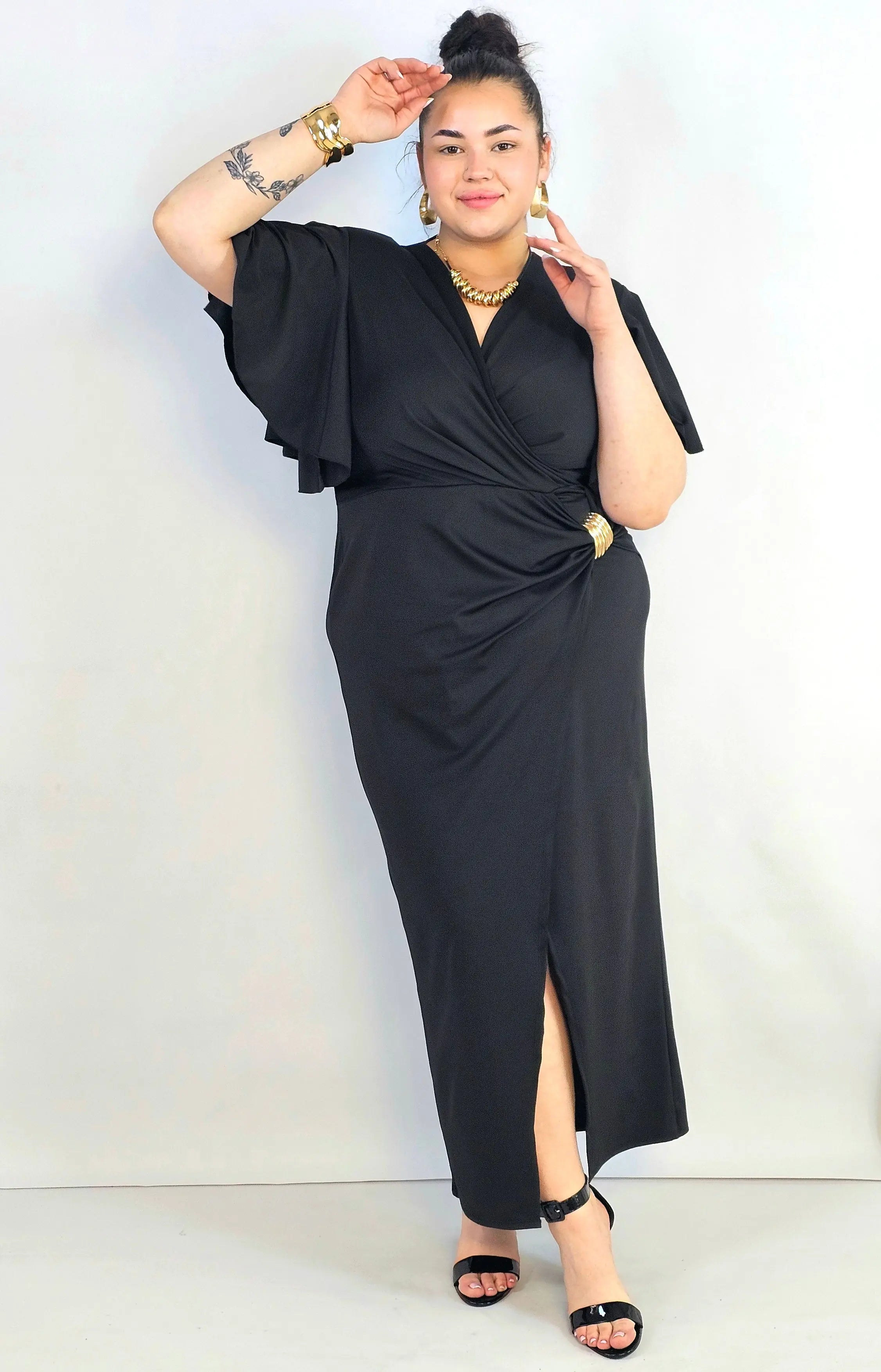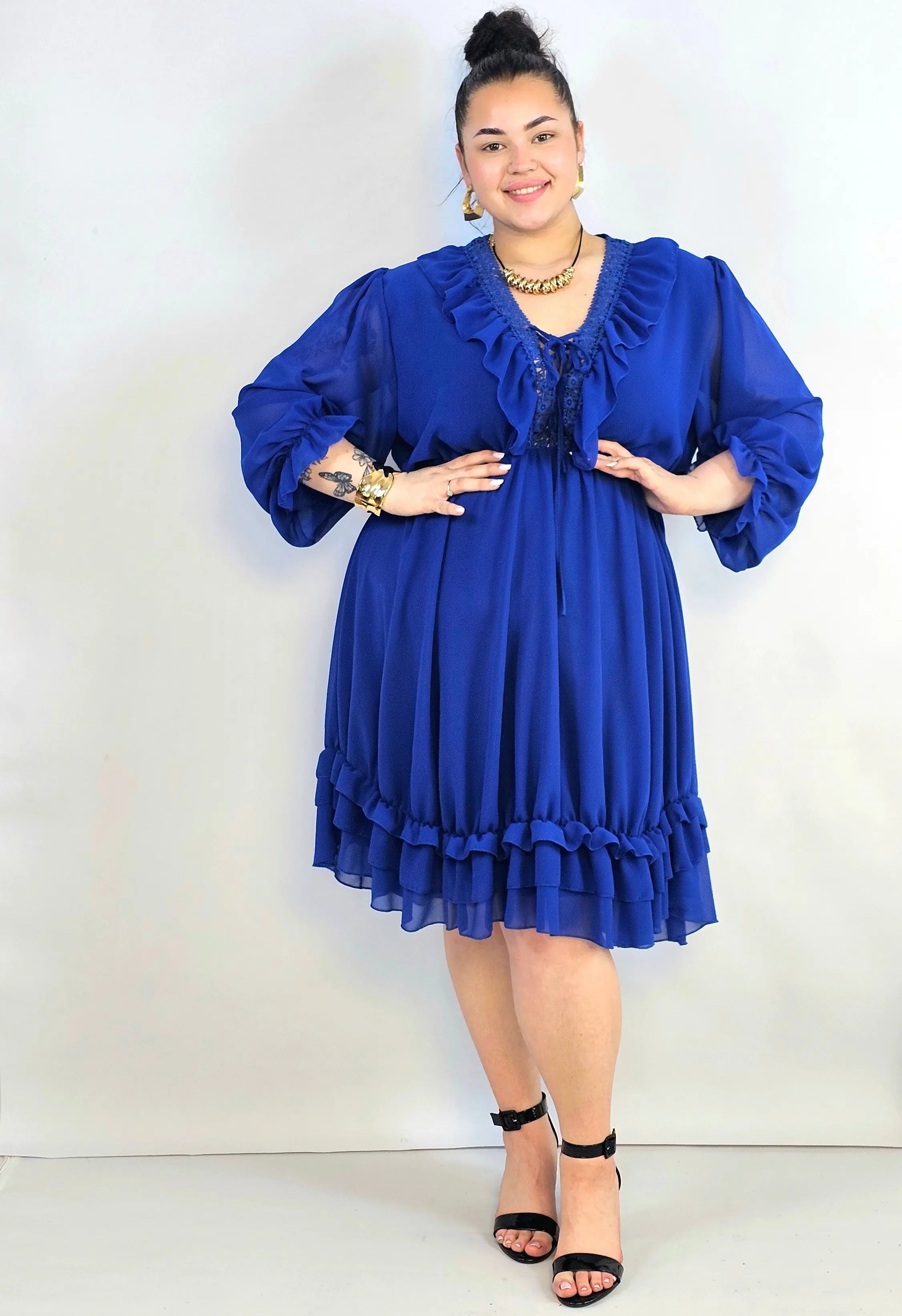 Sukienka plus size kopertowa z falbankowym rękawem – elegancja XXL