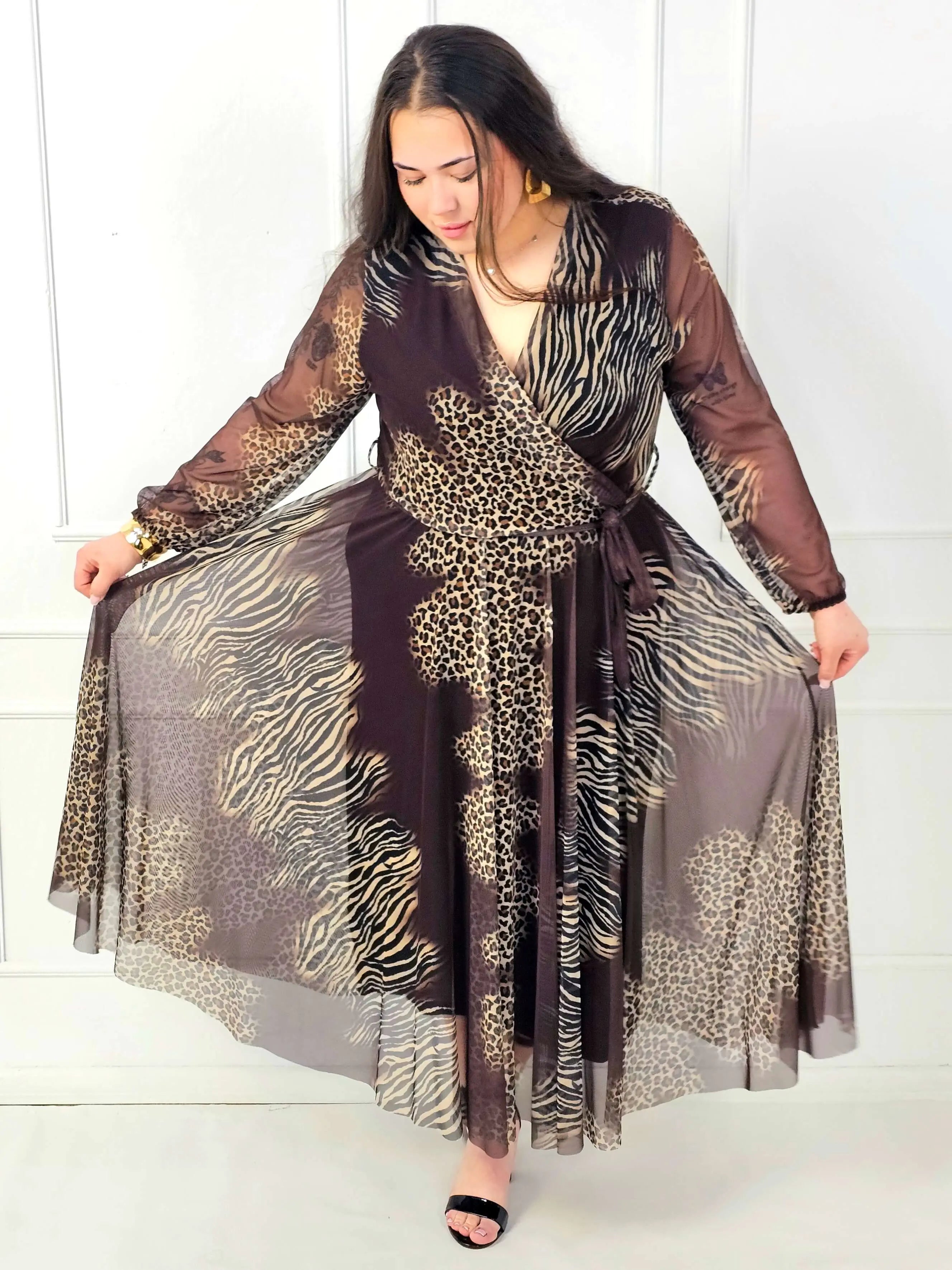 Sukienka kopertowa maxi z koronkową wstawką
