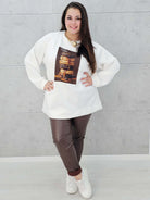 Ta biała bluza plus size z nadrukiem to połączenie wygody i kobiecego stylu.