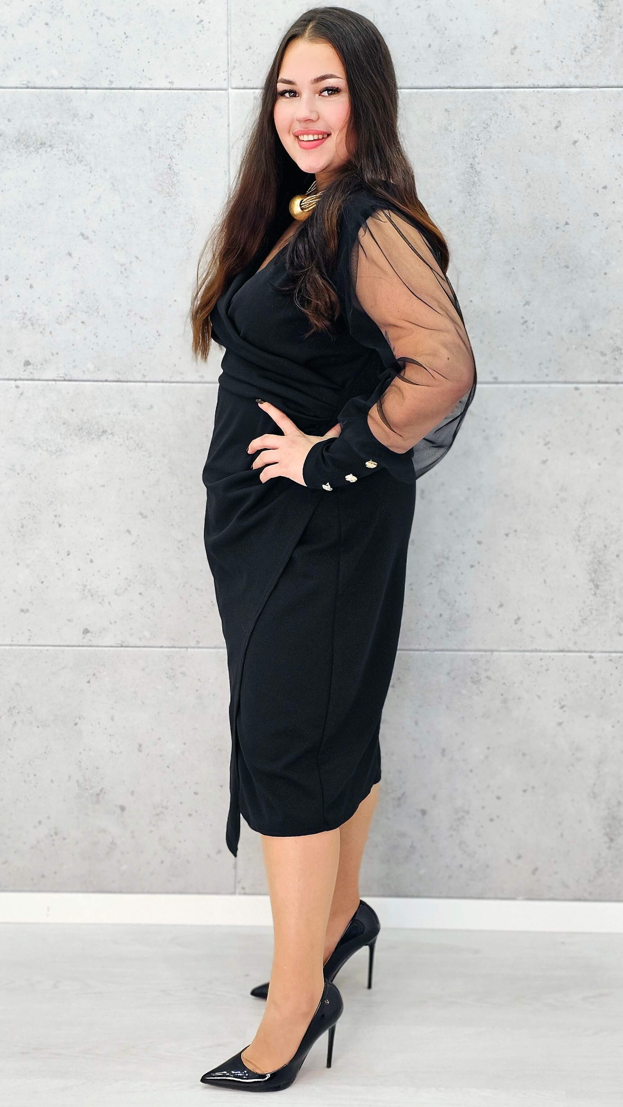 Elegancka czarna sukienka plus size.Stylowa kreacja na wyjątkowe okazje