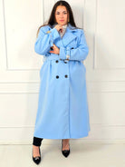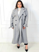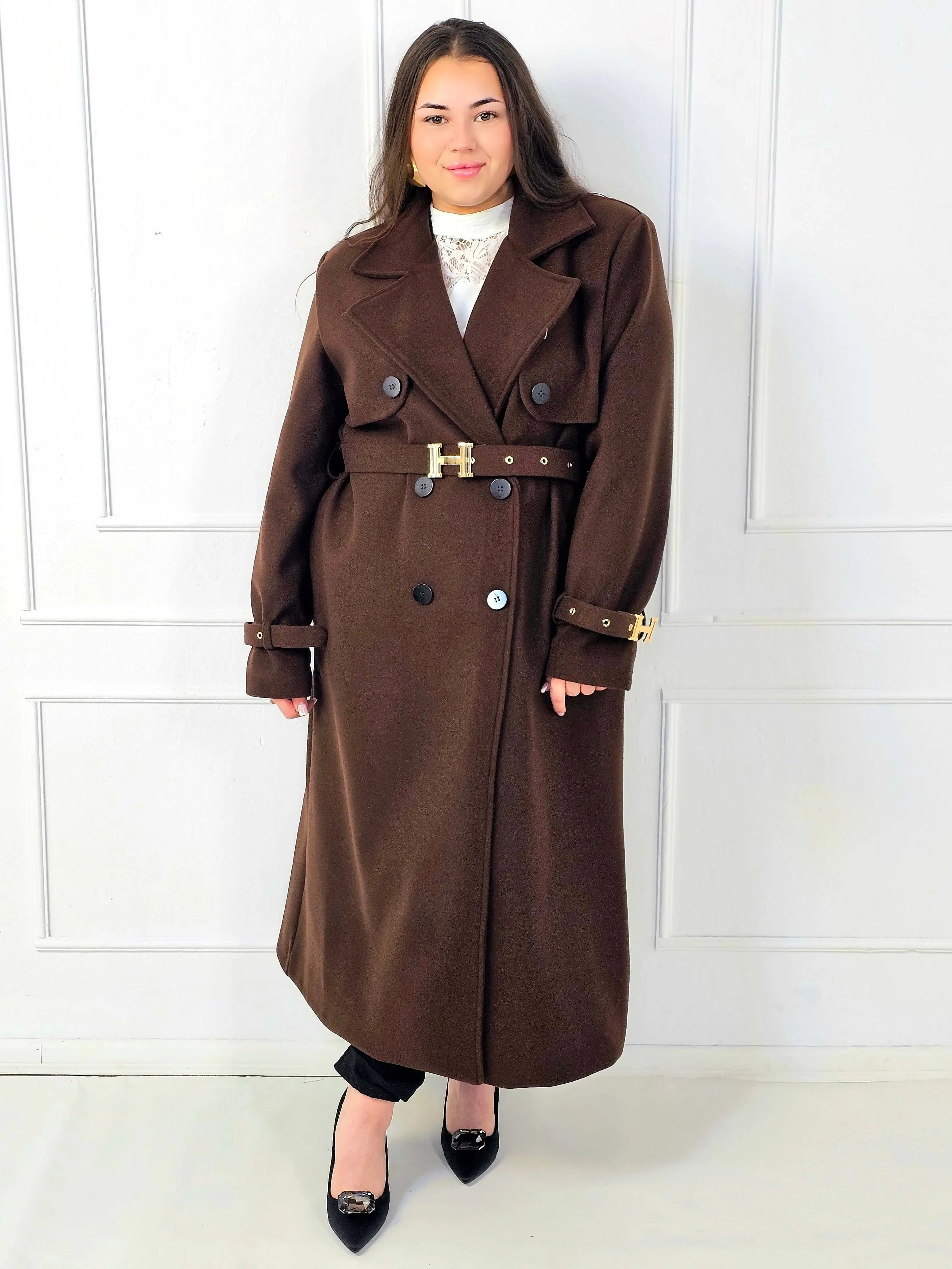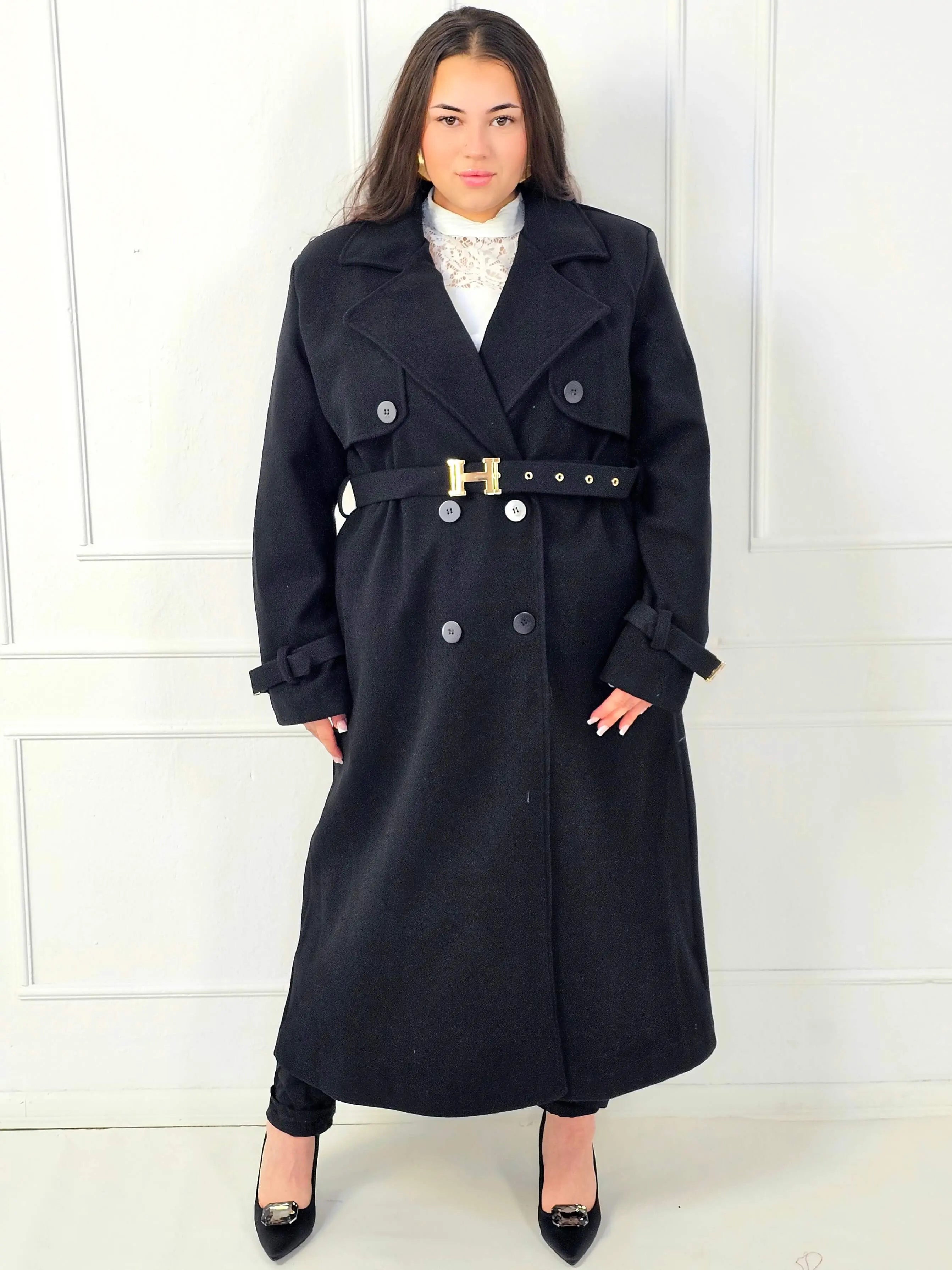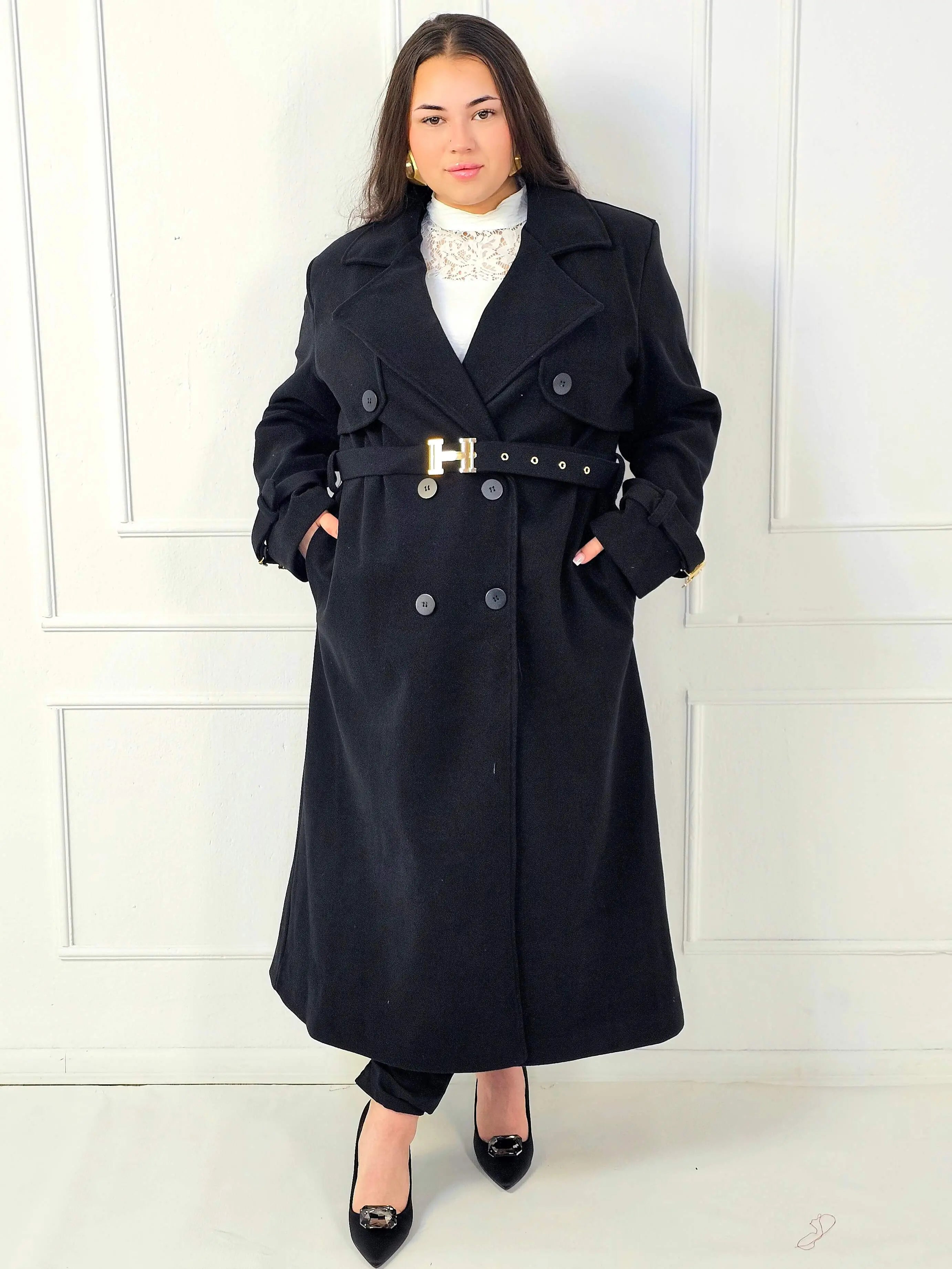 Płaszcz plus size dwurzędowy z paskiem – elegancki płaszcz XXL