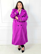 Płaszcz plus size zapinany jest na dwurzędowe guziki i dodatkowo wiązany paskiem, co pozwala na indywidualne dopasowanie do figury. Długość 126 cm sprawia, że płaszcz wygląda bardzo elegancko, a jednocześnie dobrze chroni przed chłodem. To model, który doskonale sprawdzi się zarówno w stylizacjach codziennych, jak i bardziej eleganckich – do pracy, na spotkania czy wyjątkowe okazje.