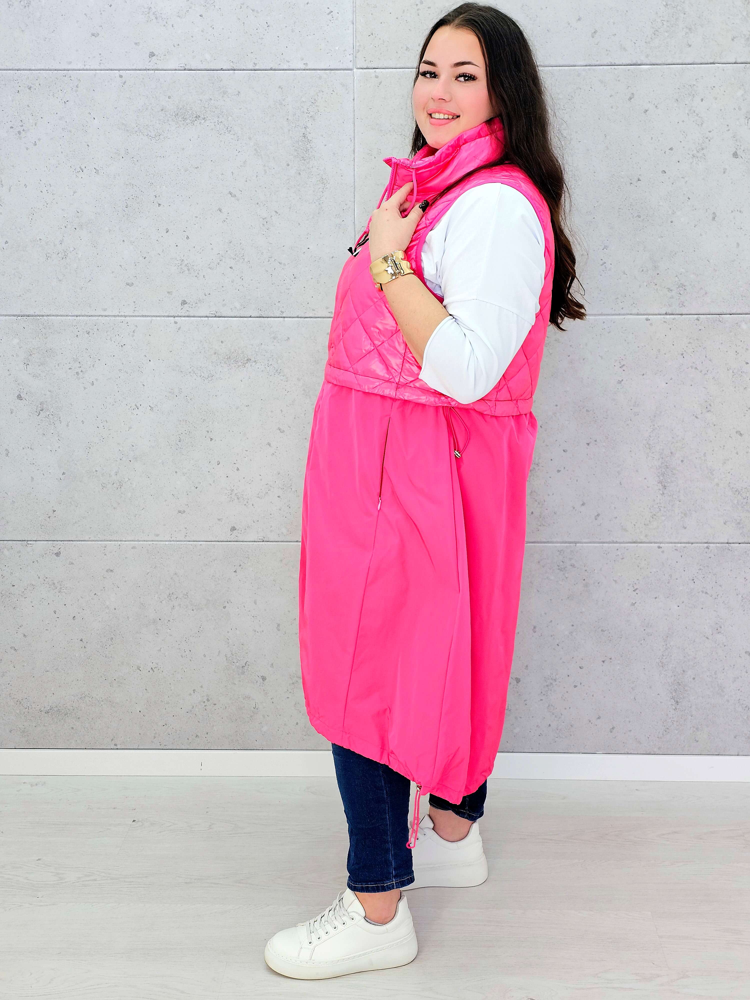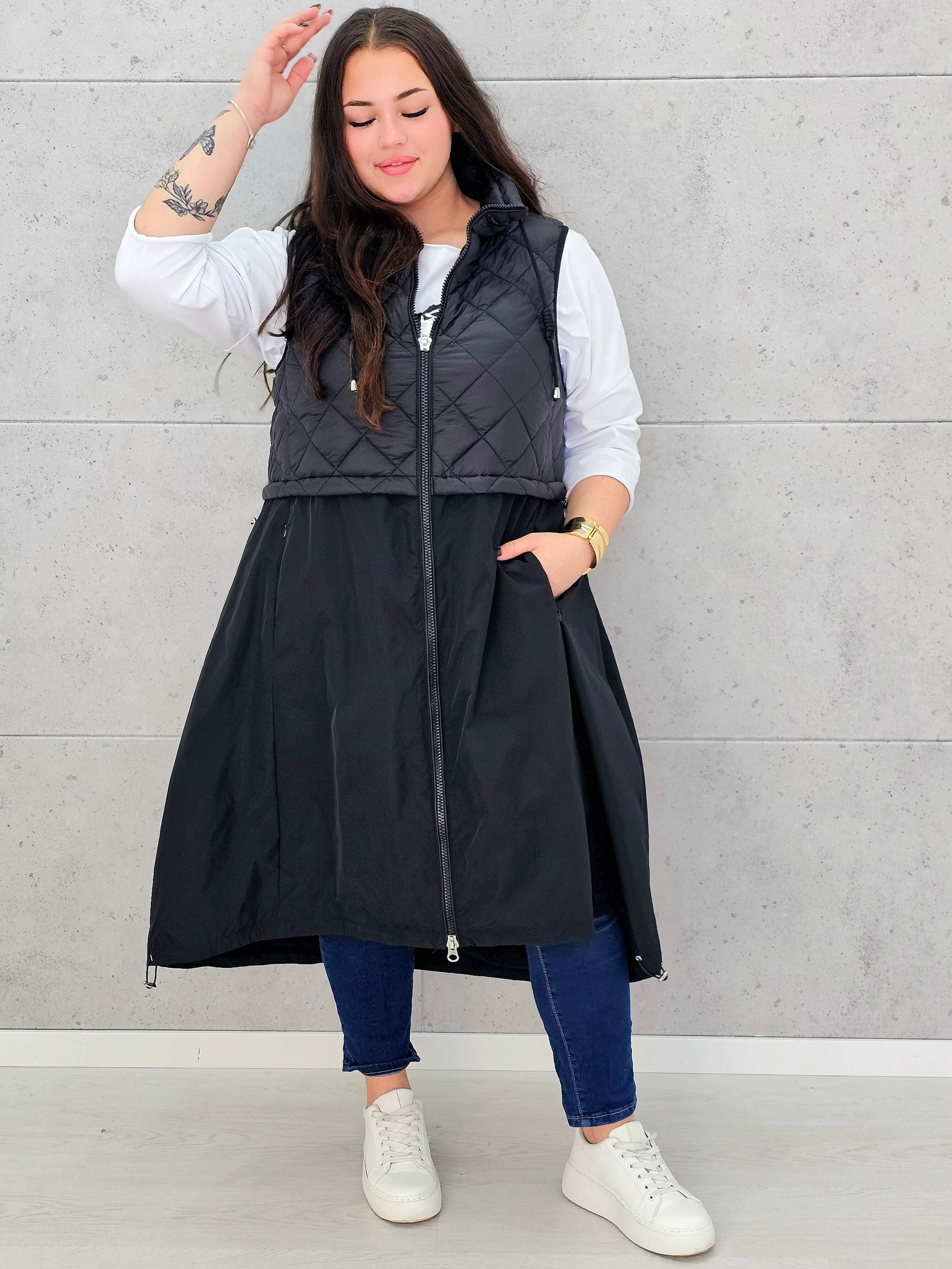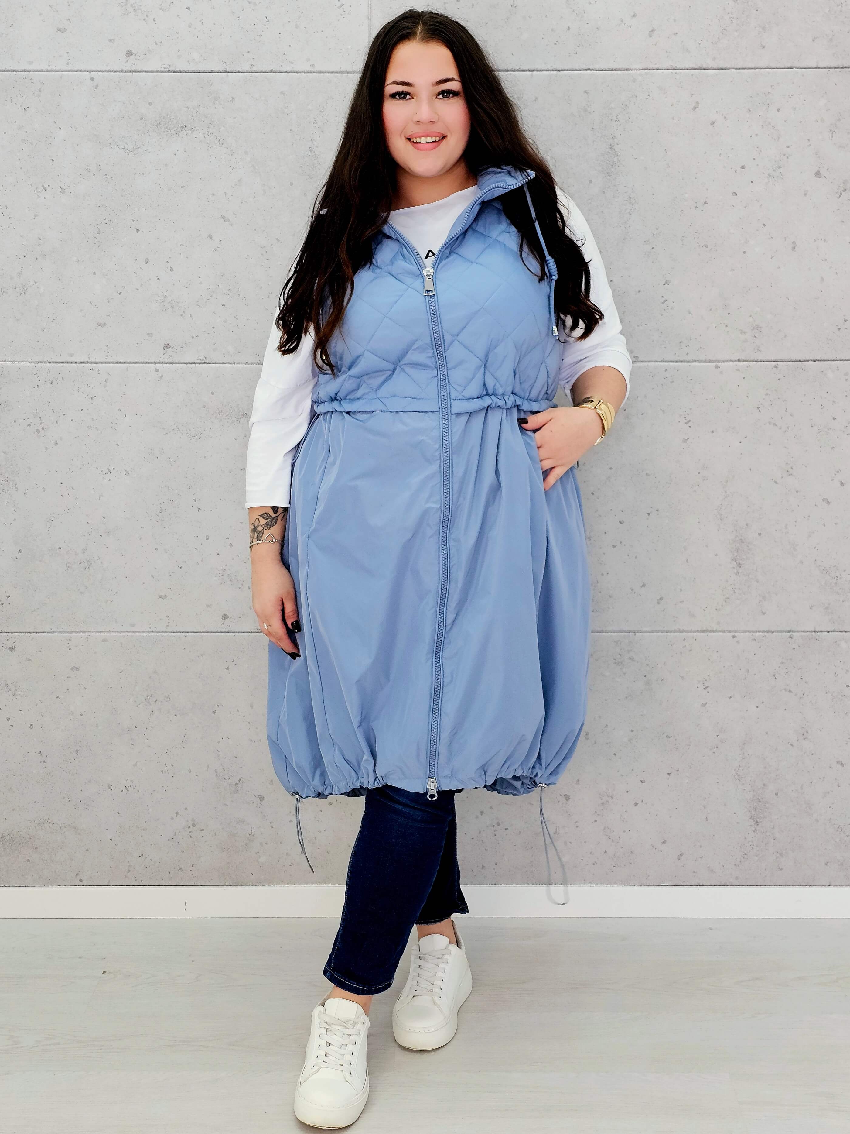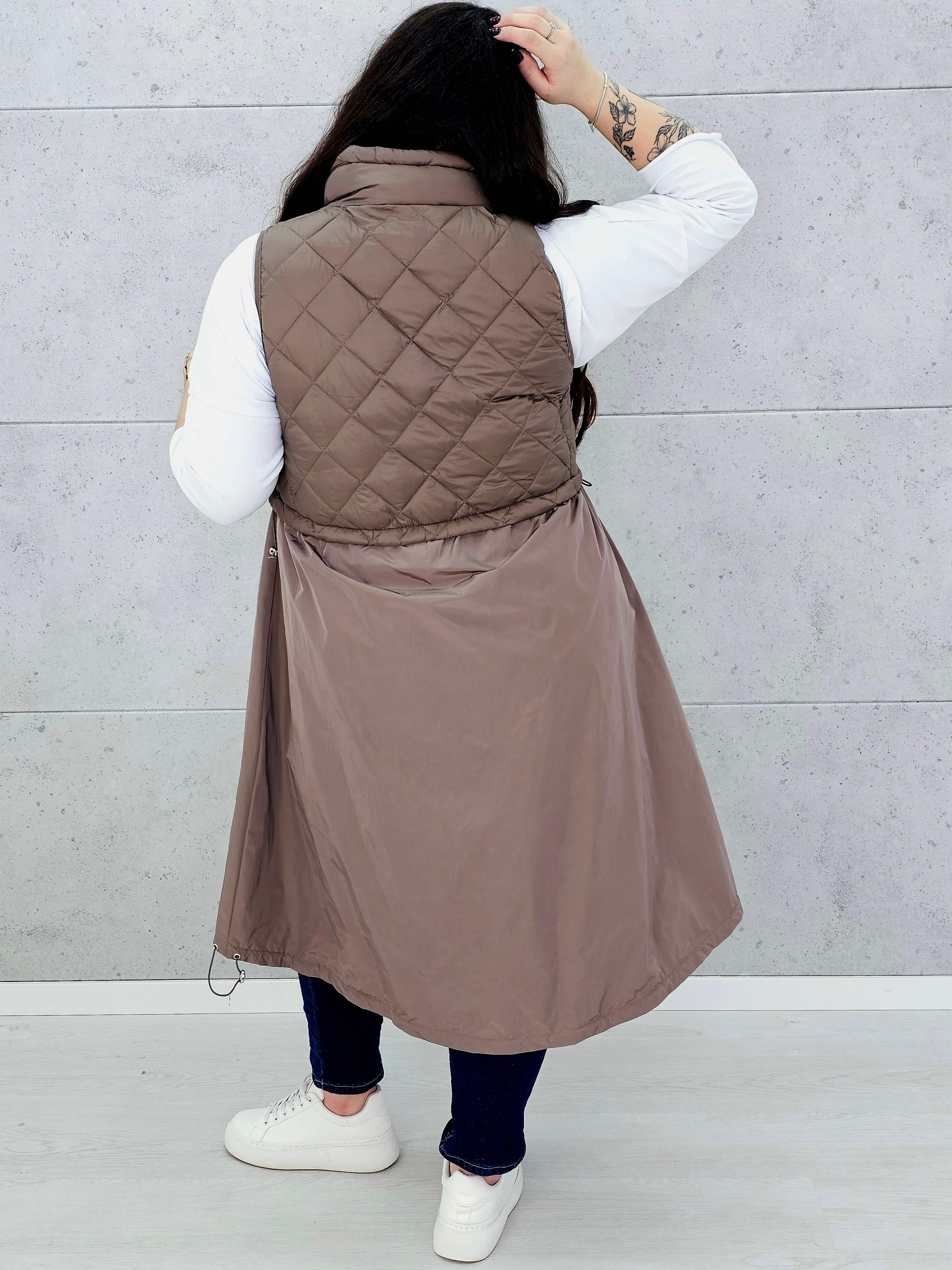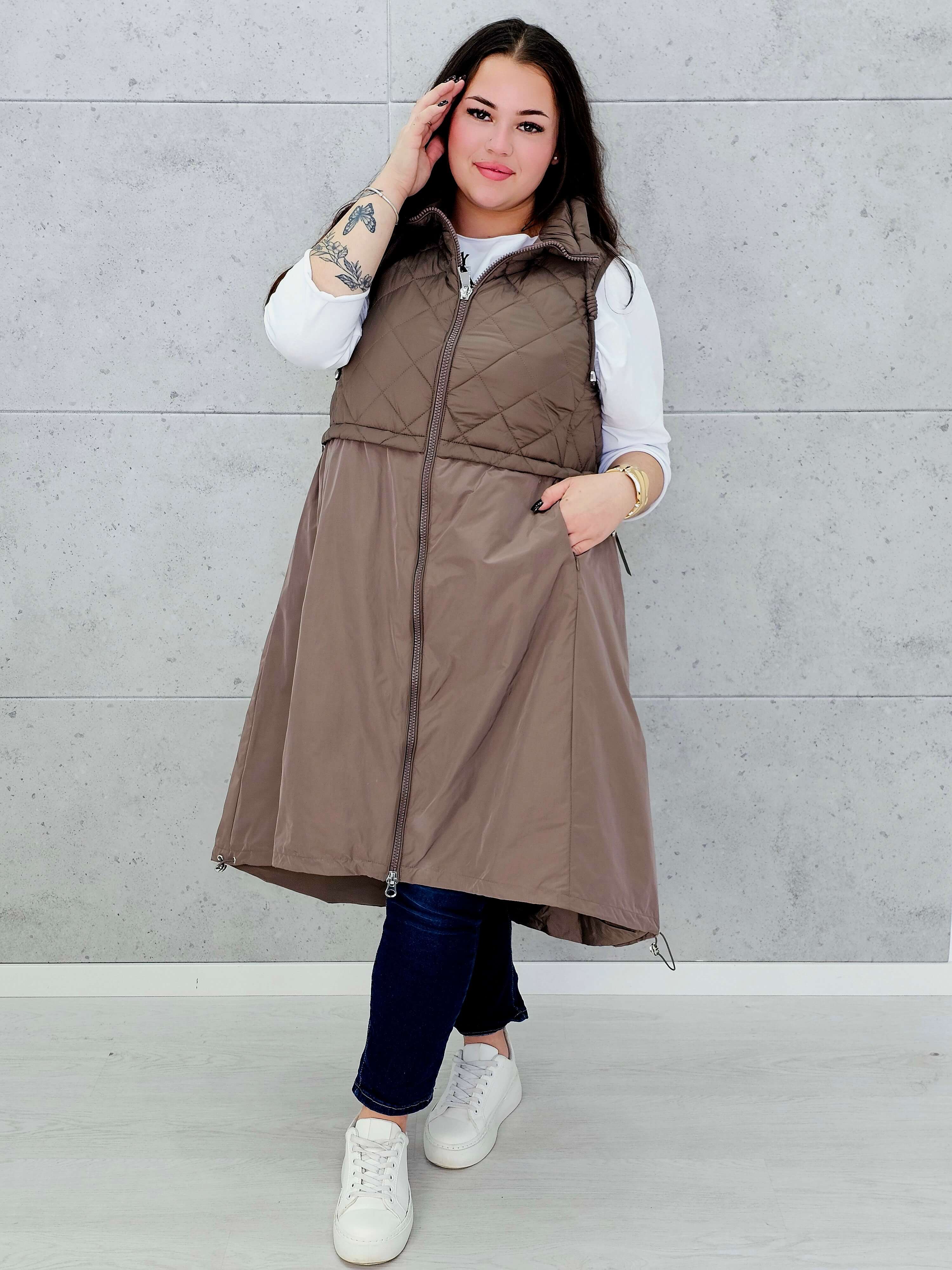 Kamizelka plus size długa z pikowaną górą – kolor i styl na chłodniejsze dni