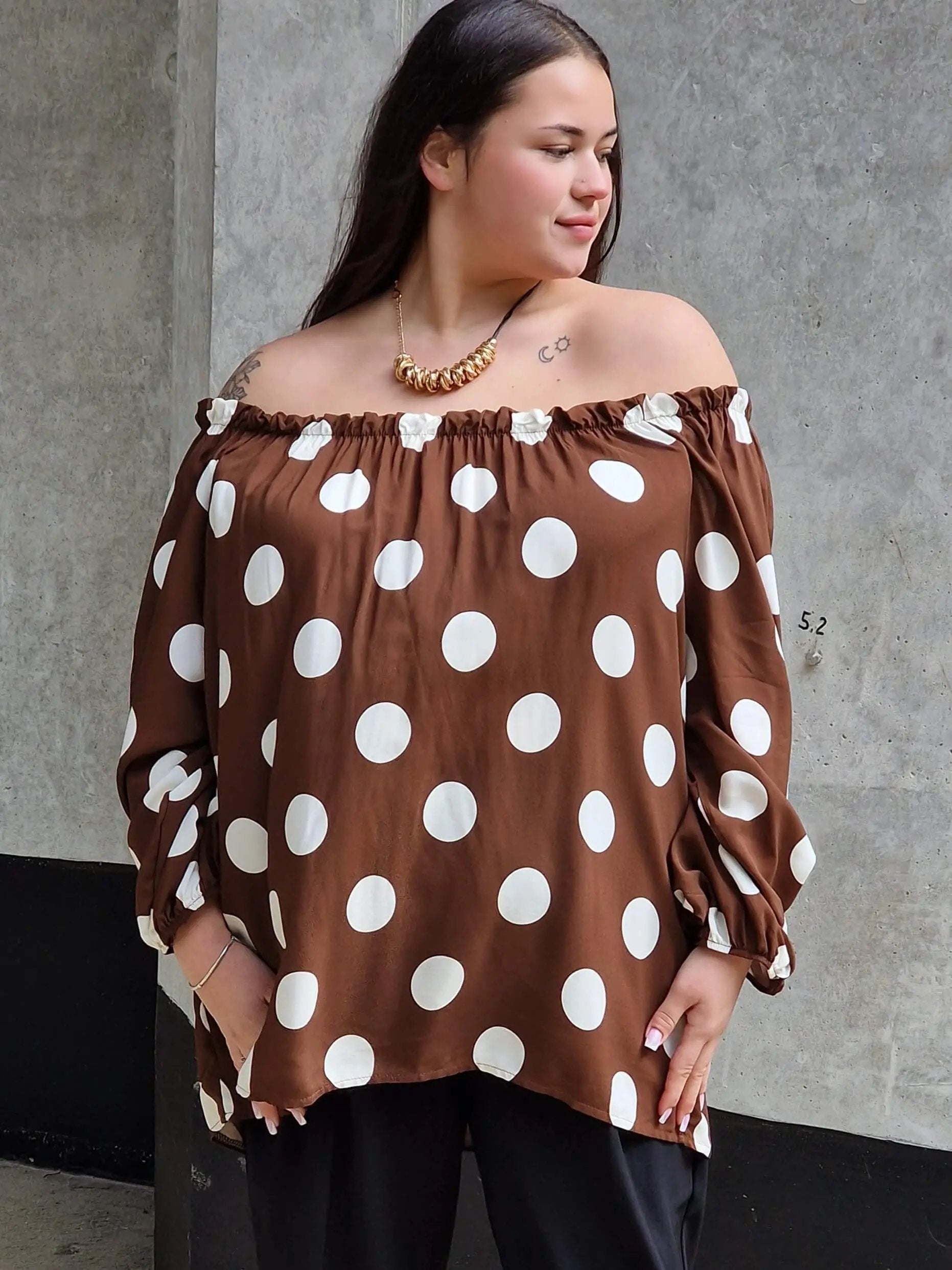 Bluzka Hiszpanka Plus Size StylowaXL – Urok Groszków i Dziewczęcy Styl