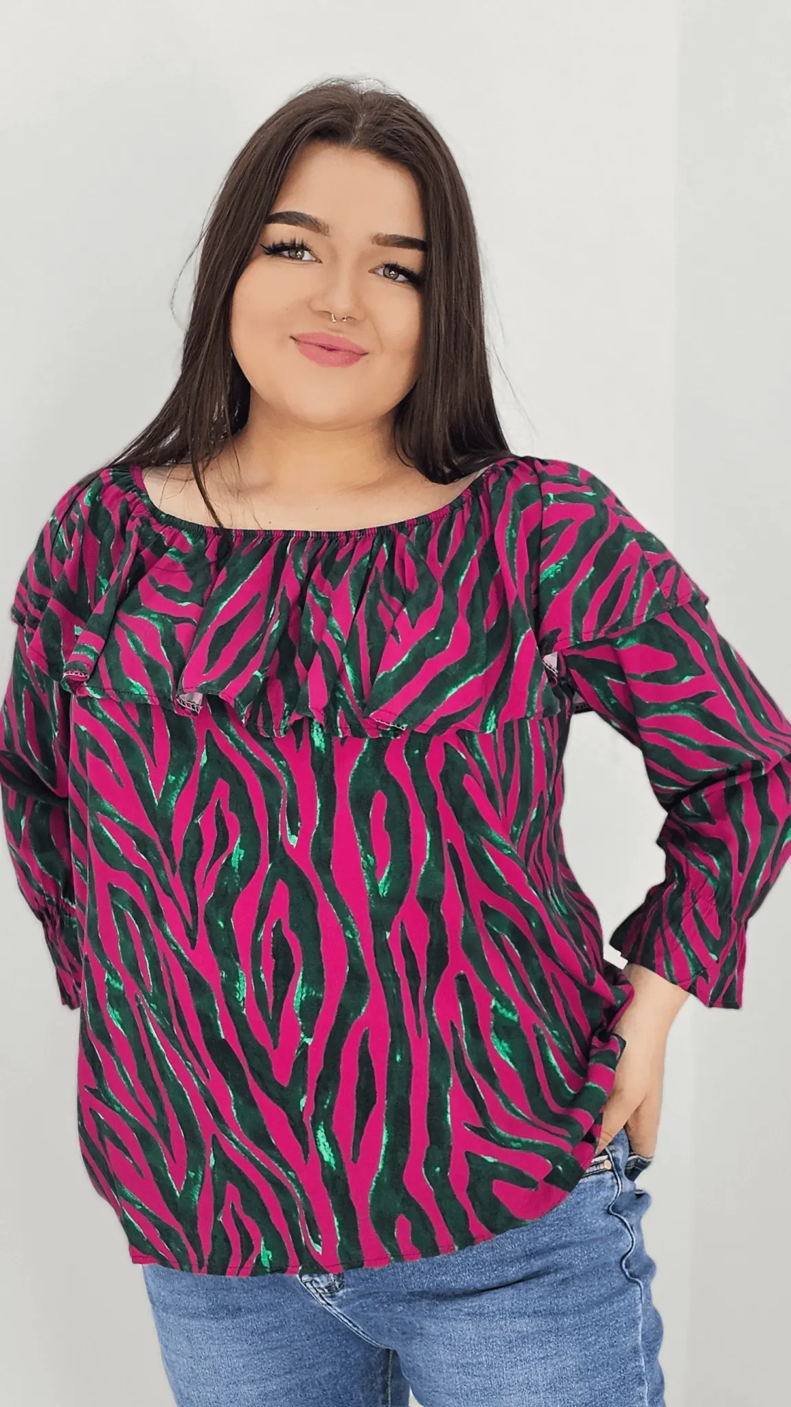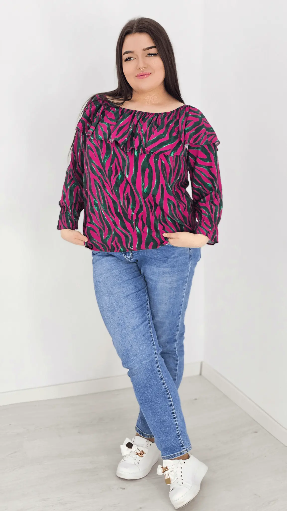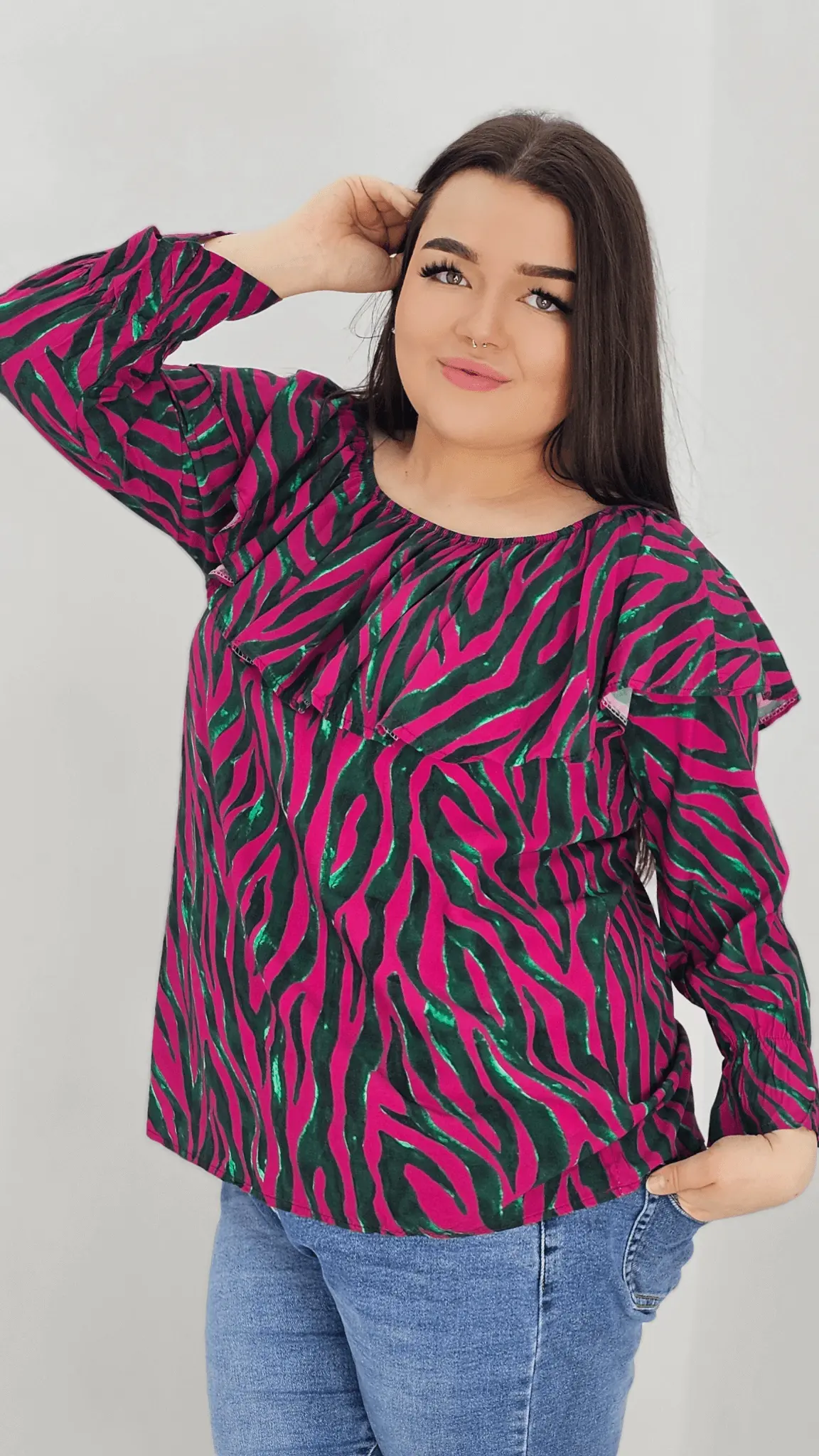 Bluzka hiszpanka z wzorem po całości -fuksja