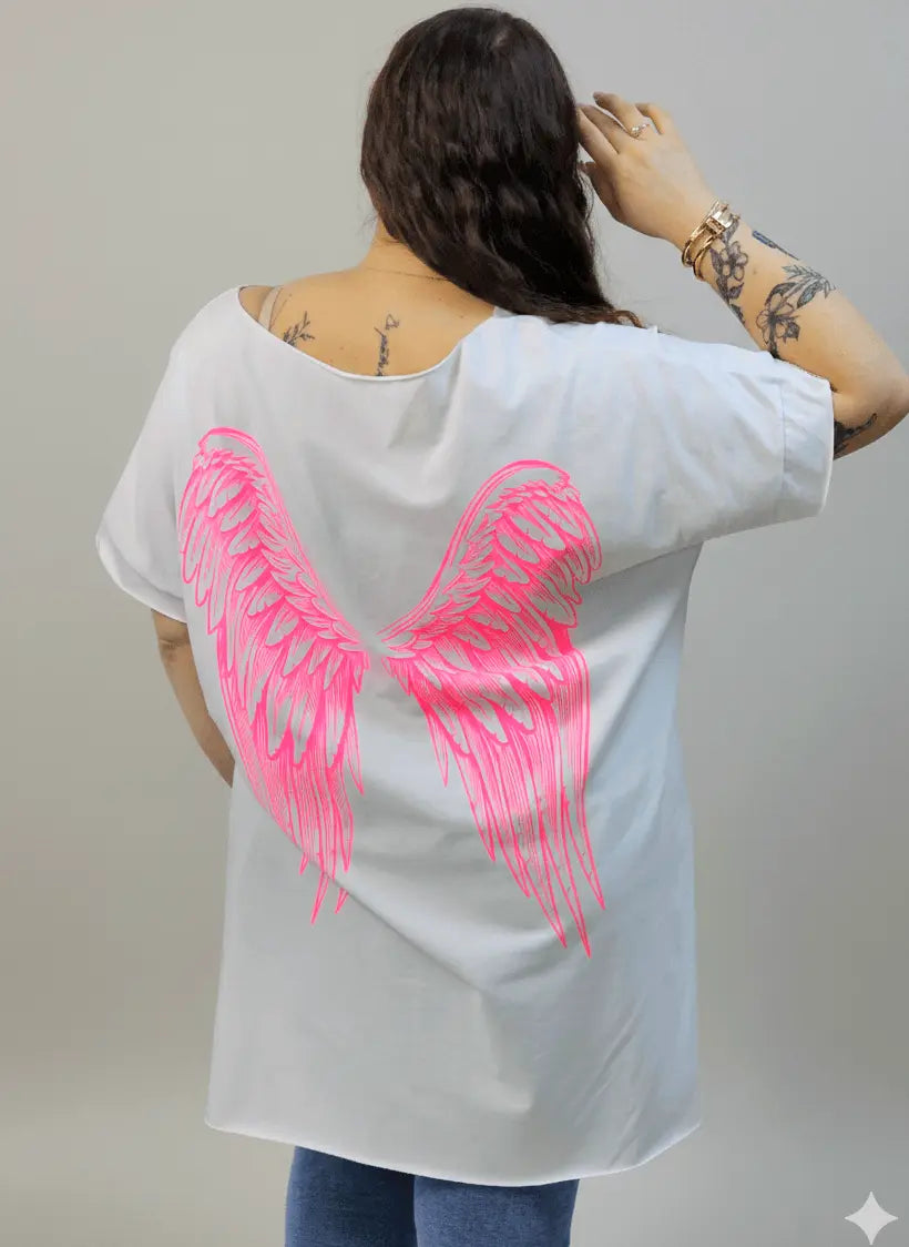 Bluzka plus size biała z neonowymi skrzydłami na plecach