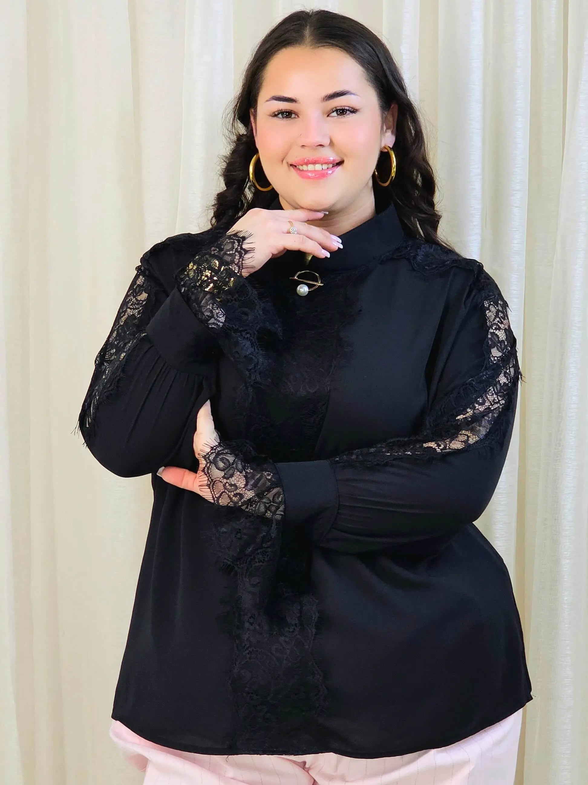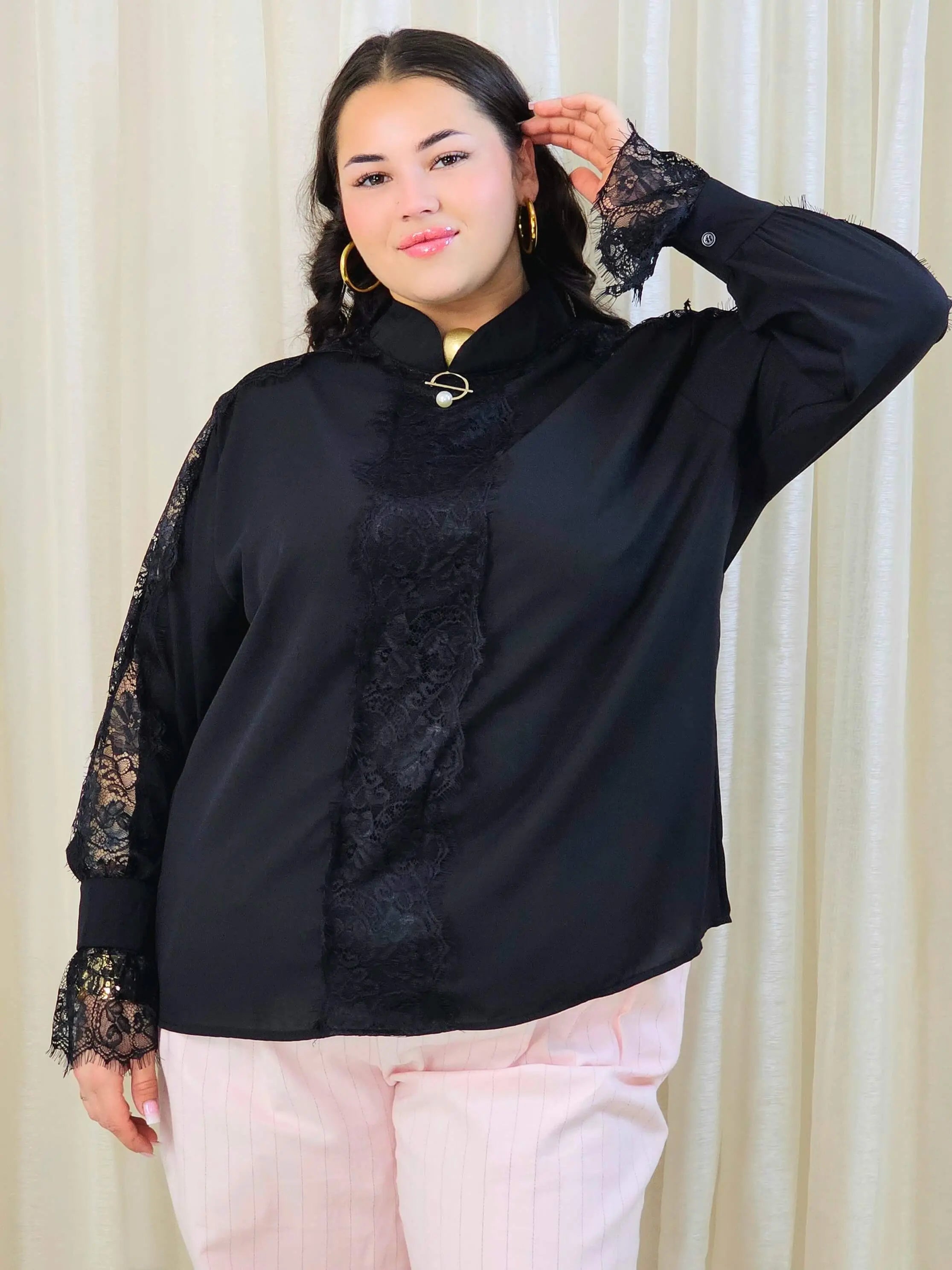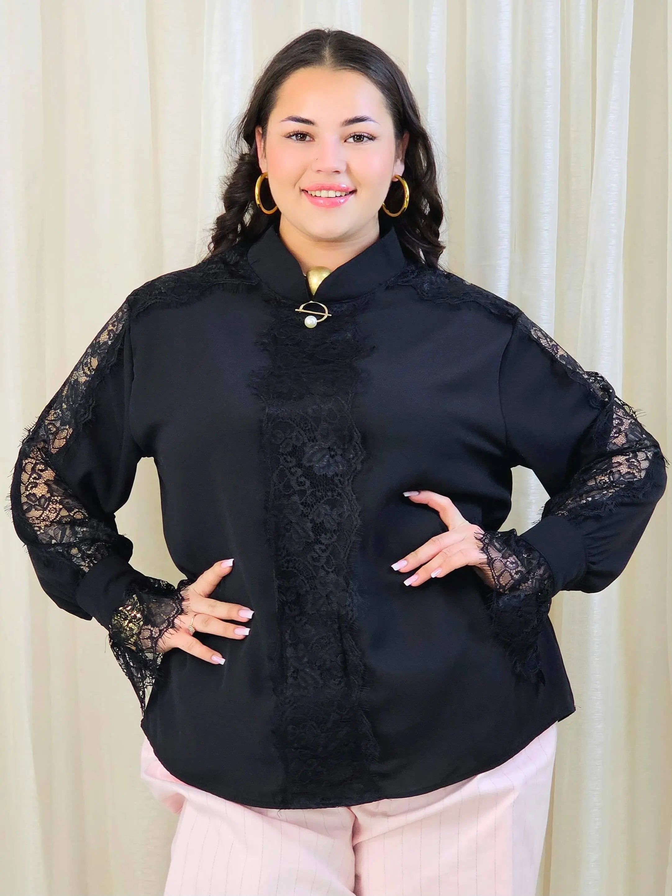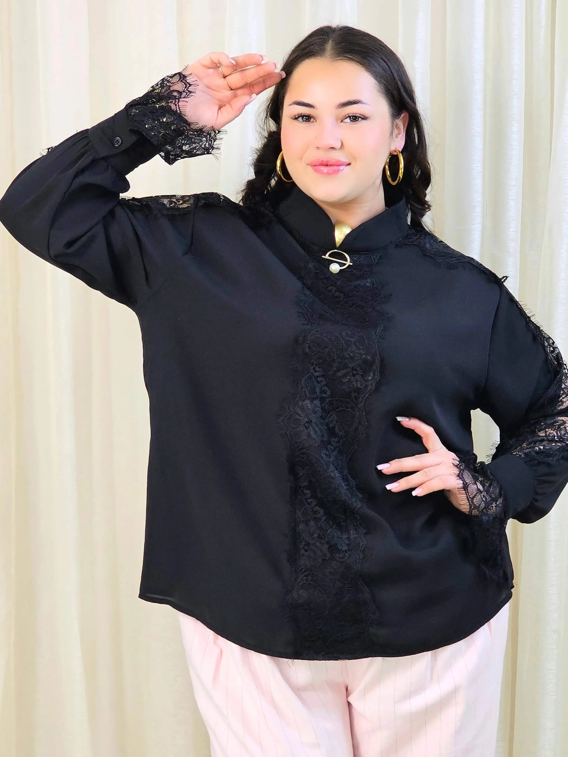 Bluzka plus size z koronką i ozdobnym zapięciem – elegancja i komfort