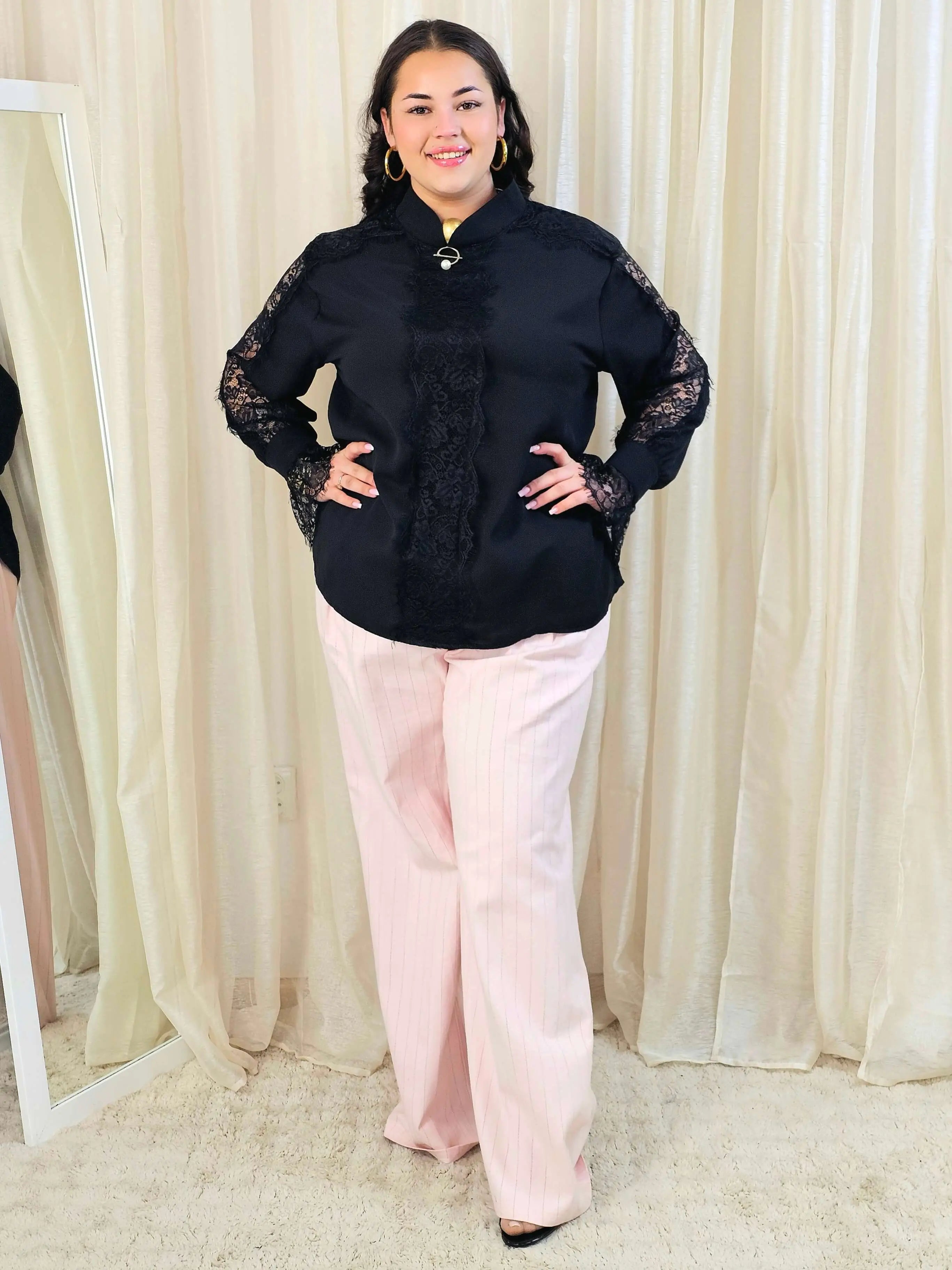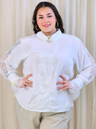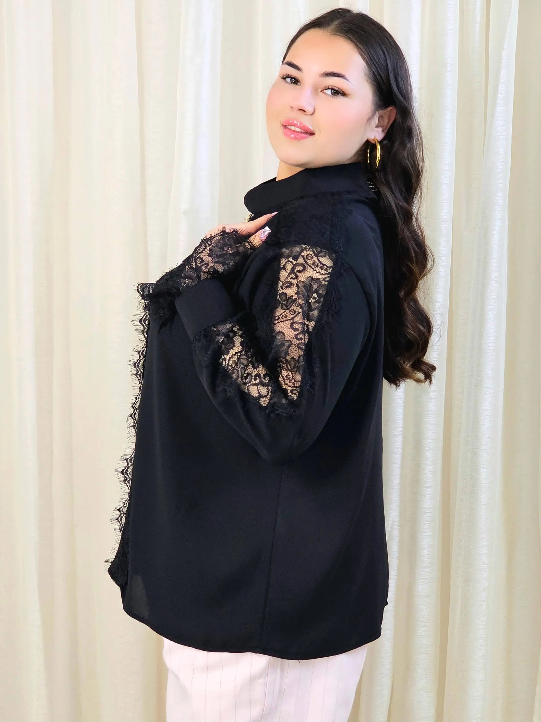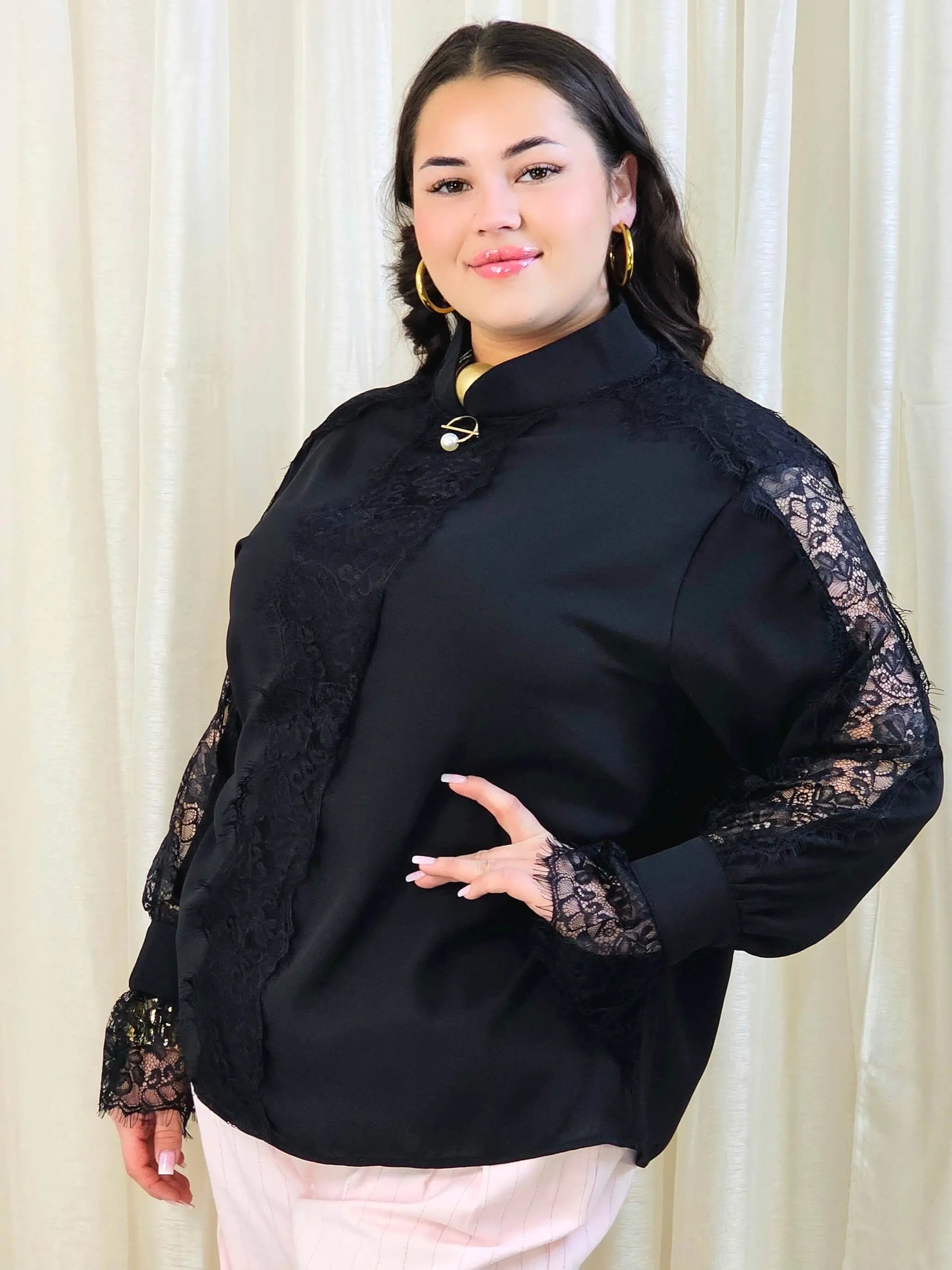 Bluzka plus size z koronką i ozdobnym zapięciem – elegancja i komfort