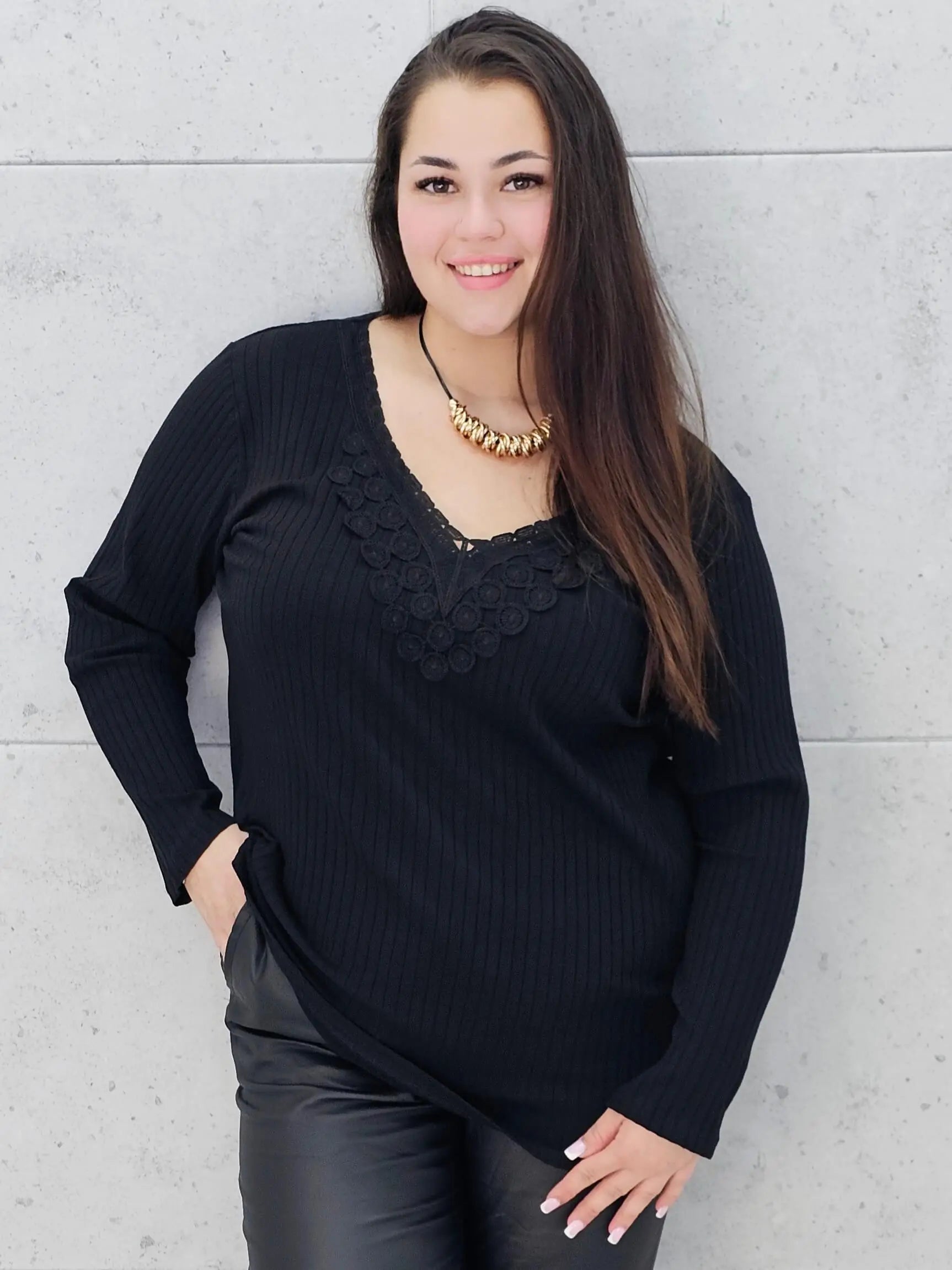 Nasza bluzka plus size z koronkowym dekoltem to model, który pokochasz od pierwszego założenia!