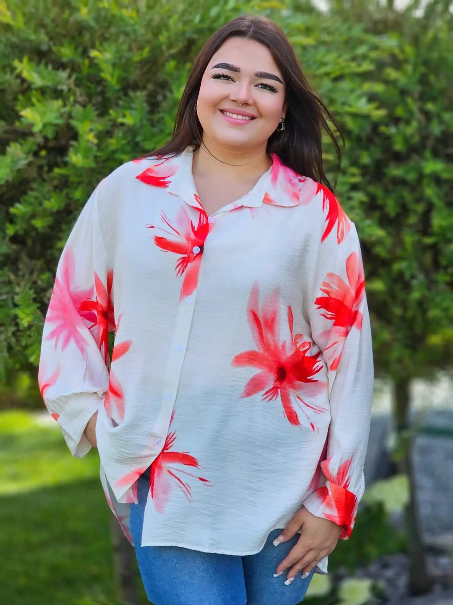 Stylowa koszulowa bluzka w kwiatowy wzór to idealny wybór dla miłośniczek kobiecych i subtelnych stylizacji. Jej unikalny krój z krótszym przodem i dłuższym tyłem zapewnia nowoczesny wygląd, a zapięcie na guziki nadaje jej klasycznego charakteru. Podpinane rękawy pozwalają dostosować stylizację do różnych okazji i pór roku. Wykonana z lekkiego materiału, świetnie sprawdzi się zarówno w casualowych, jak i bardziej eleganckich zestawach.