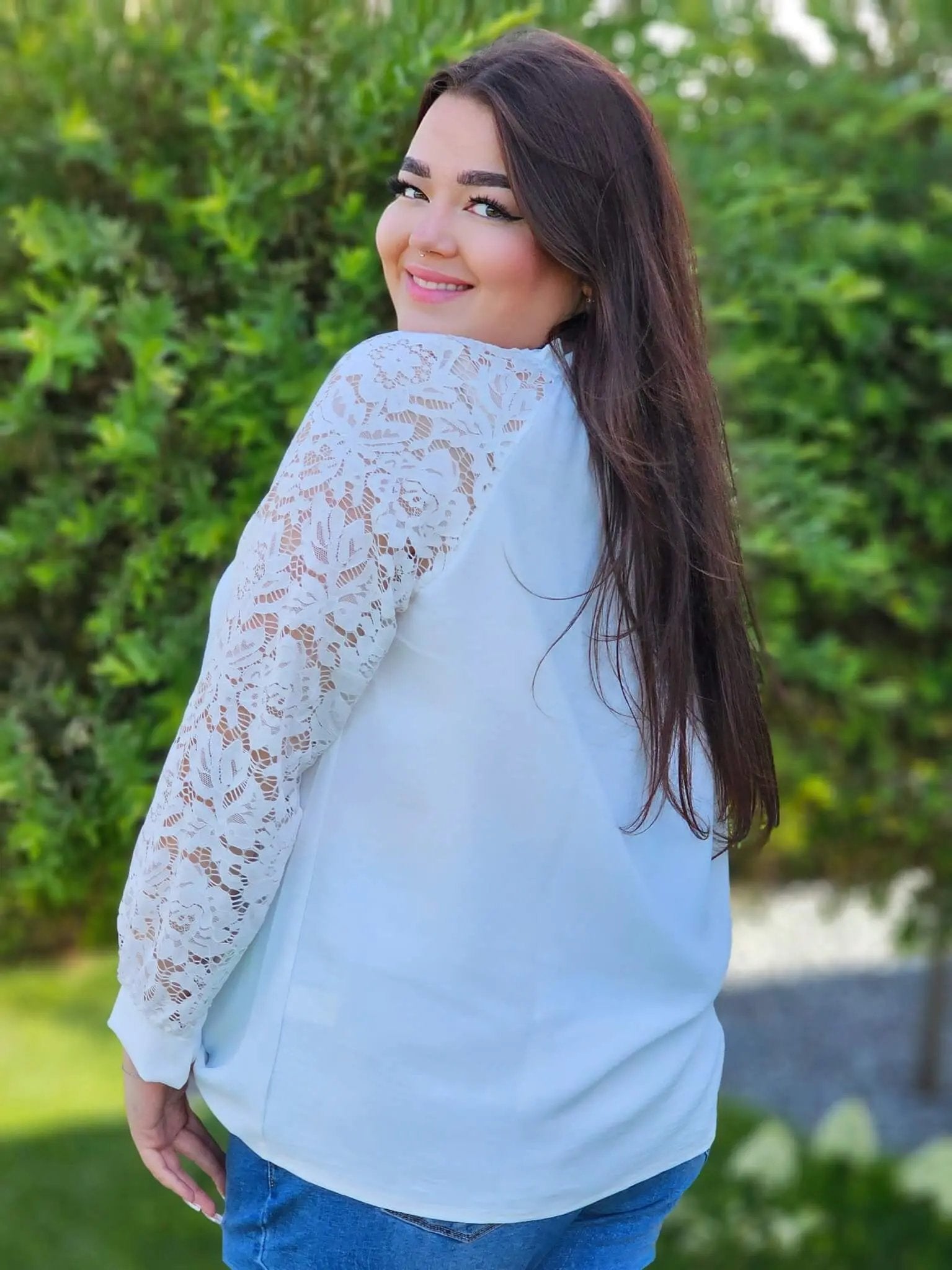 Rękawy: Długie, wykonane z pięknej koronki, nadają bluzce elegancji i wyjątkowości.