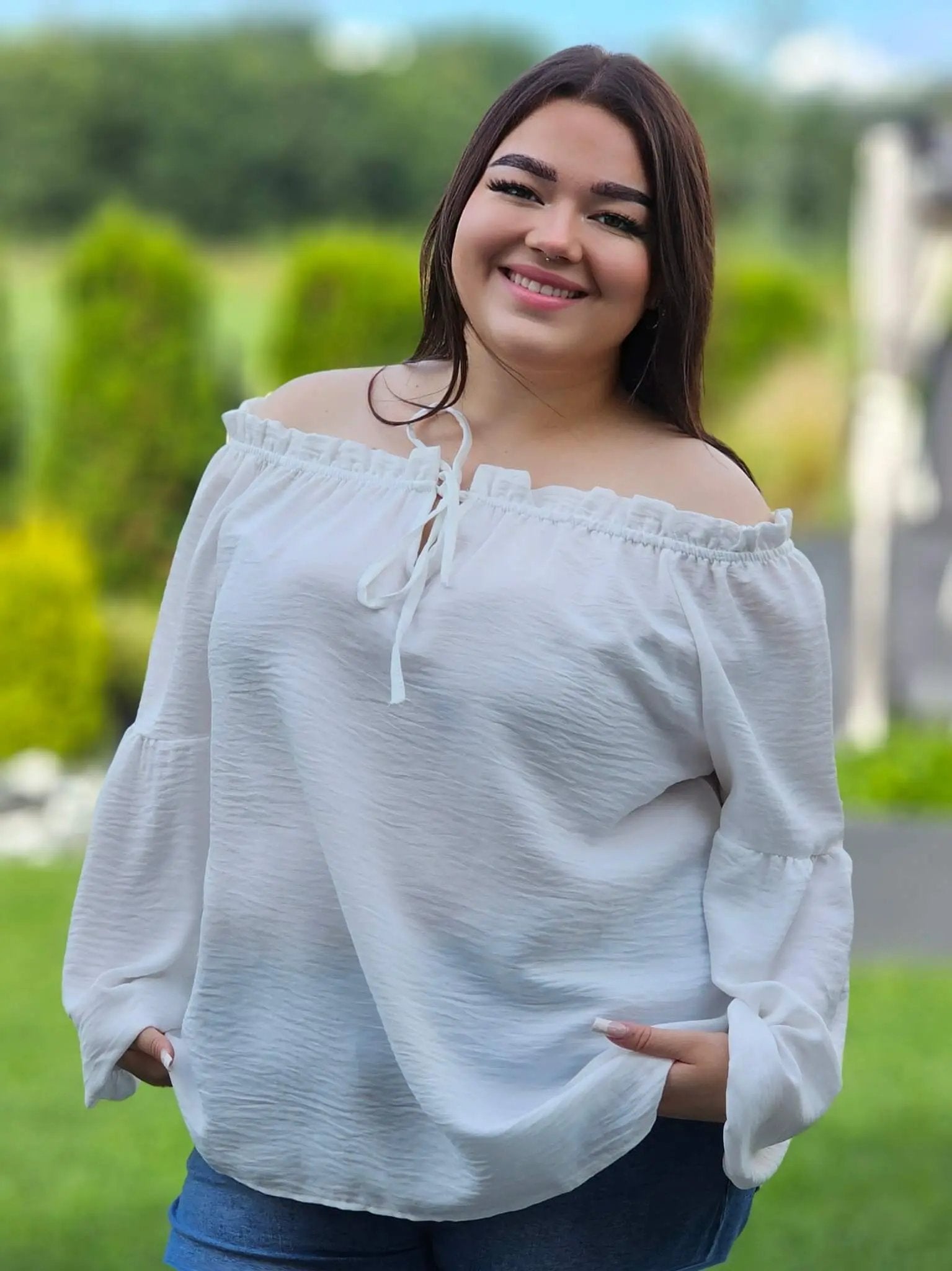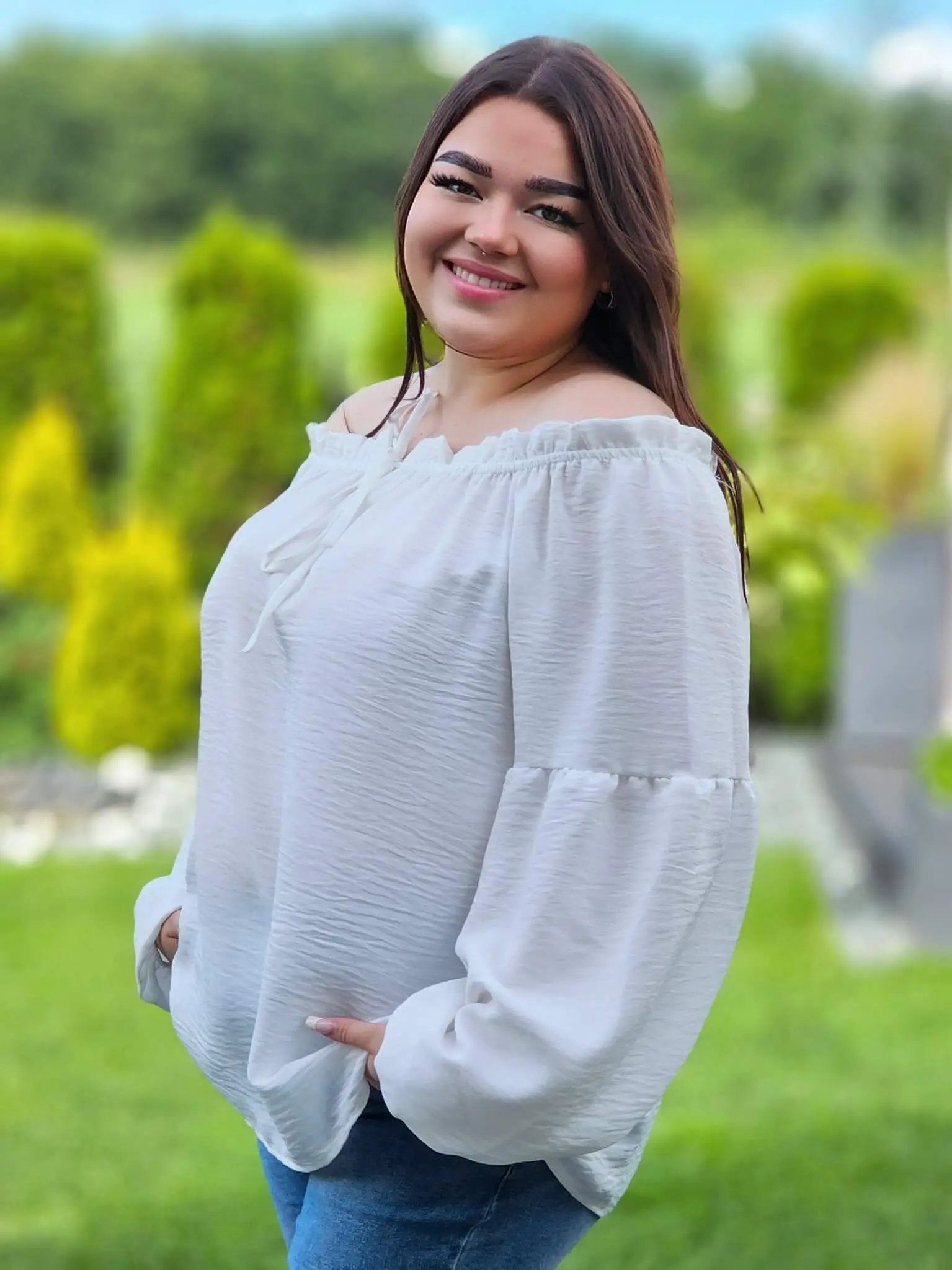 Zjawiskowa, delikatna i niezwykle stylowa – ta bluzka hiszpanka to idealny wybór dla kobiet, które cenią subtelne detale i romantyczne akcenty. Jej lekki materiał pięknie układa się na sylwetce, a marszczony dekolt dodaje uroku każdej stylizacji.