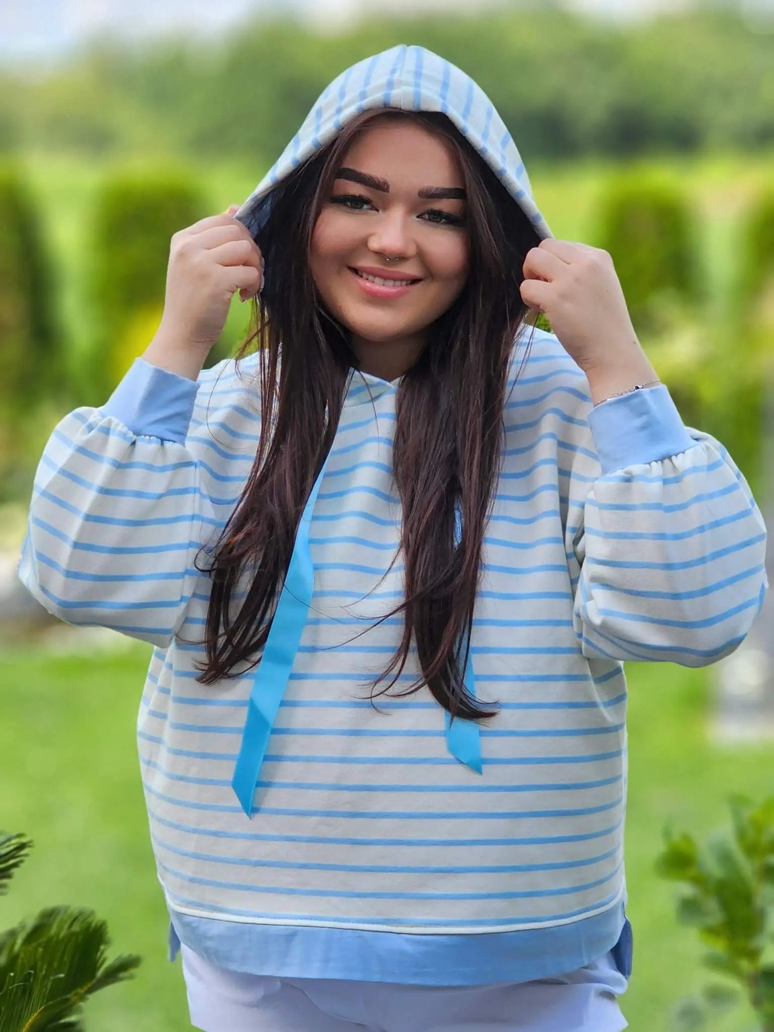 Świetny wybór na swobodny dzień! Bluza z kapturem w paski to propozycja pełna luzu i pozytywnej energii Jej miękki materiał otula ciało, a lekko oversize’owy krój zapewnia maksimum wygody – idealna na spacer, weekendowy wypad czy po prostu chwile dla siebie.