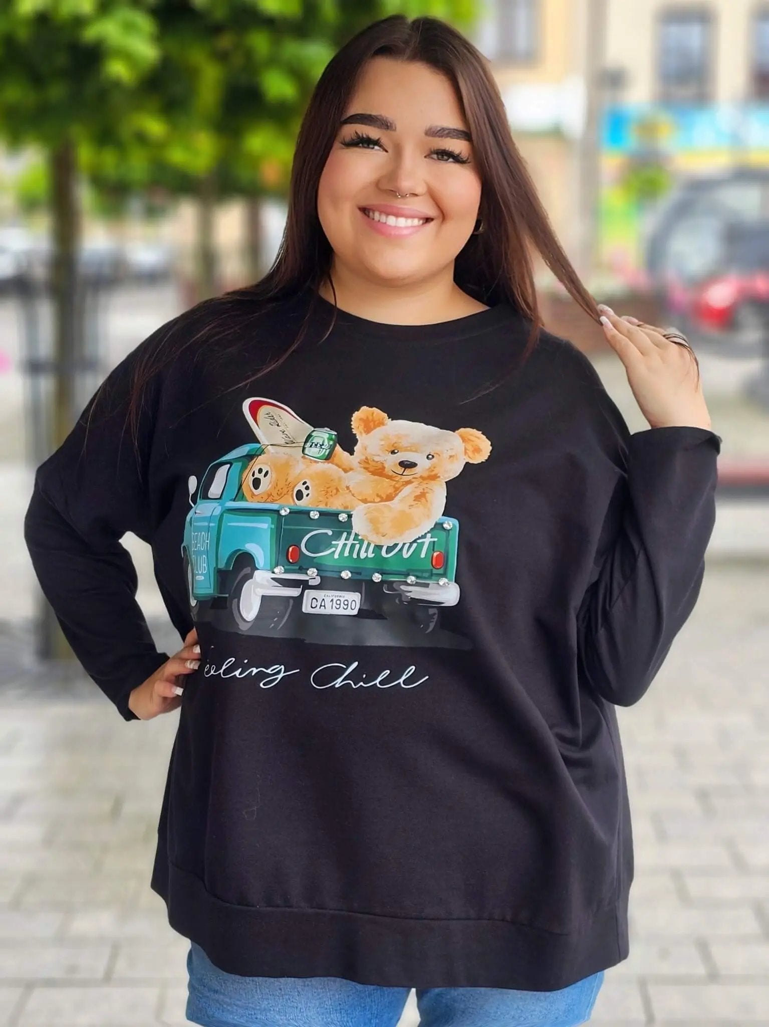 Szukasz bluzy, która rozświetli każdą stylizację? Ten model z uroczym misiem to idealne połączenie wygody i modowego luzu. Dostępna w dwóch wersjach kolorystycznych – klasycznej czerni i delikatnej ecru – świetnie sprawdzi się na co dzień, do jeansów, legginsów czy dresów.