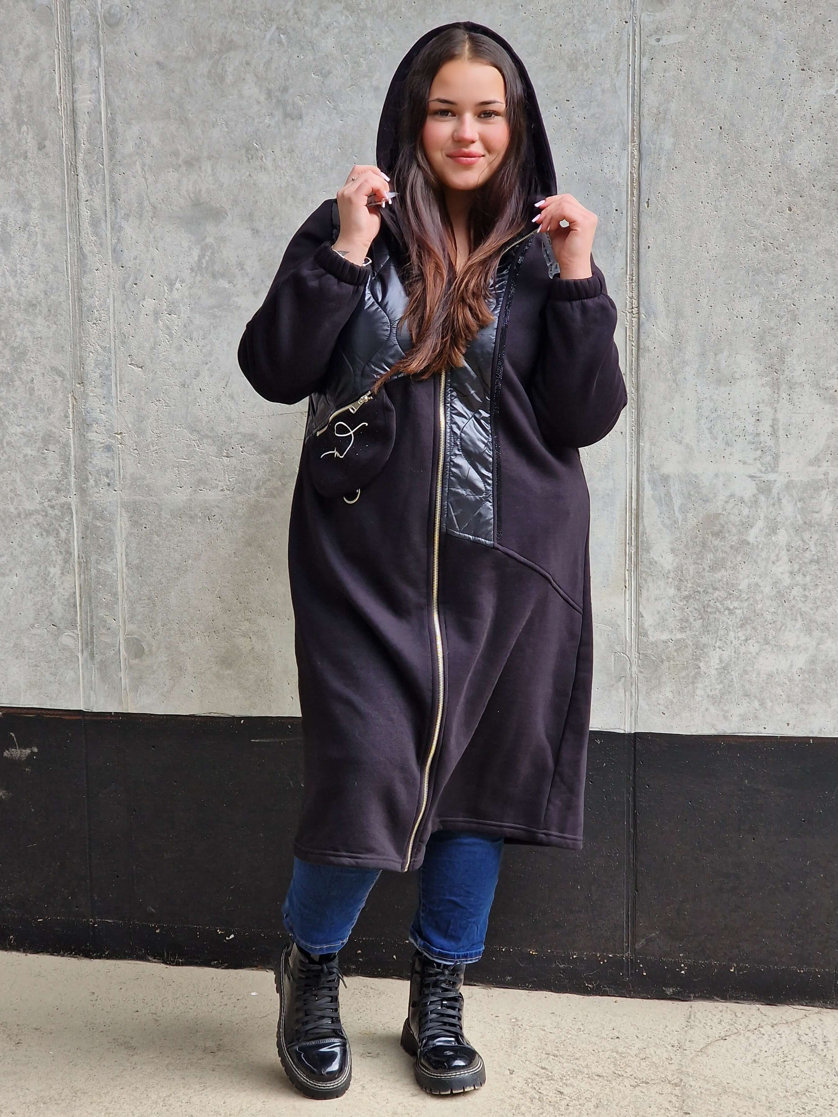 Długa bluza- To idealne połączenie wygody i stylu. Luźny krój nie krępuje ruchów, a praktyczny zamek błyskawiczny sprawia, że bluza jest bardzo funkcjonalna.
