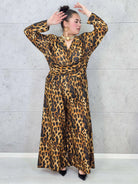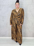 Kombinezon plus size w panterkę – modny kombinezon XXL z kopertową górą