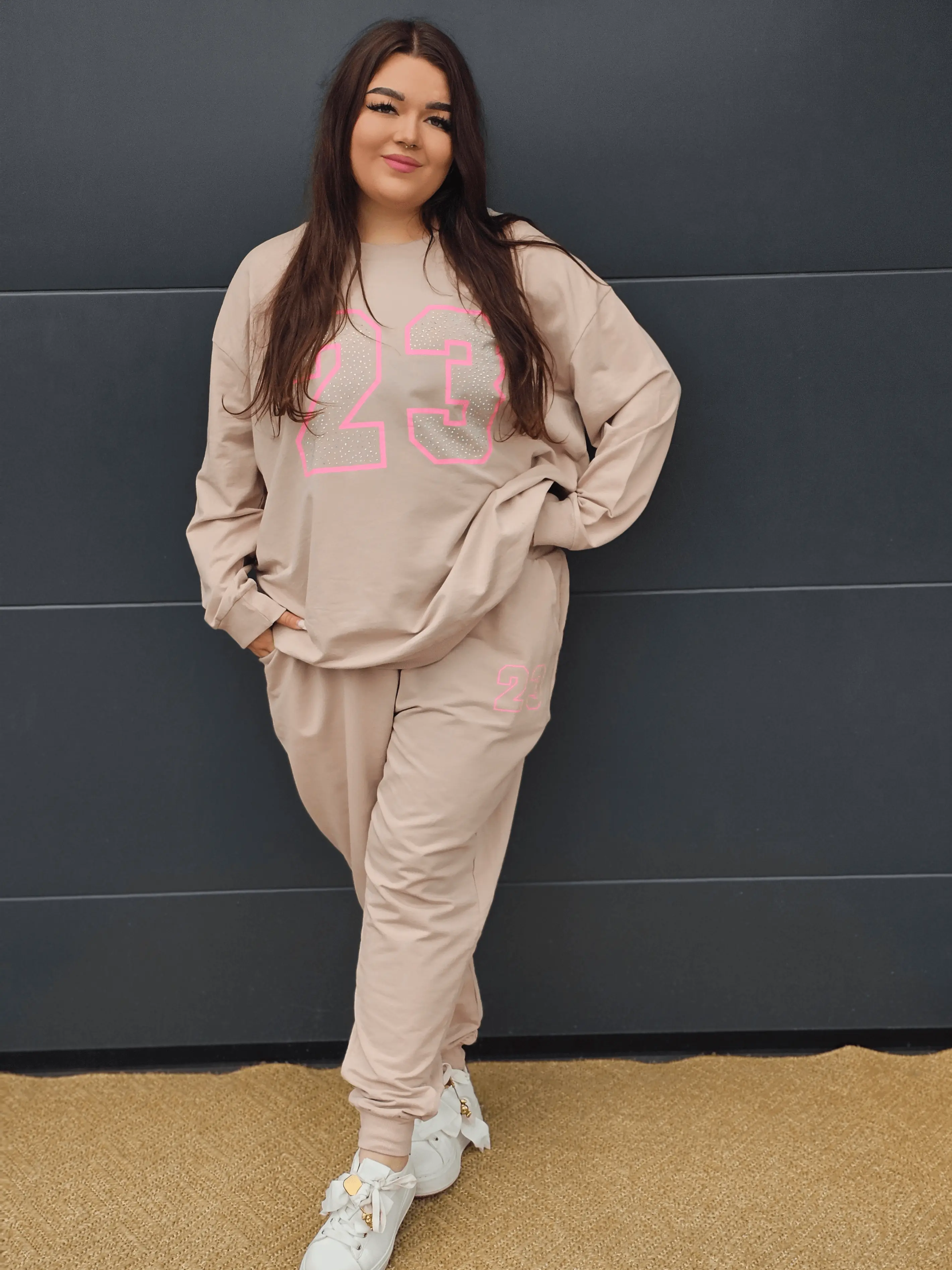 Ten zestaw to idealne połączenie wygody i stylu! Bluza z nadrukiem „23” i dopasowane spodnie tworzą look, który sprawdzi się zarówno na spacer, jak i na leniwe popołudnie w domu. Wyrazisty, energetyczny kolor dodaje charakteru, a elastyczne materiały zapewniają pełną swobodę ruchów
