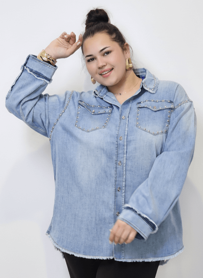 Koszula jeansowa plus size z ozdobnymi nitami – modna koszula XXL dla kobiet