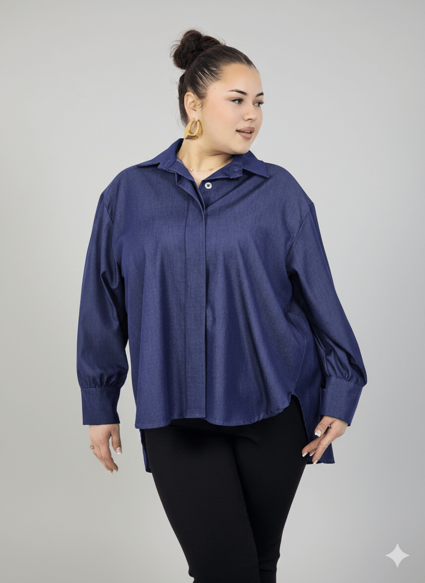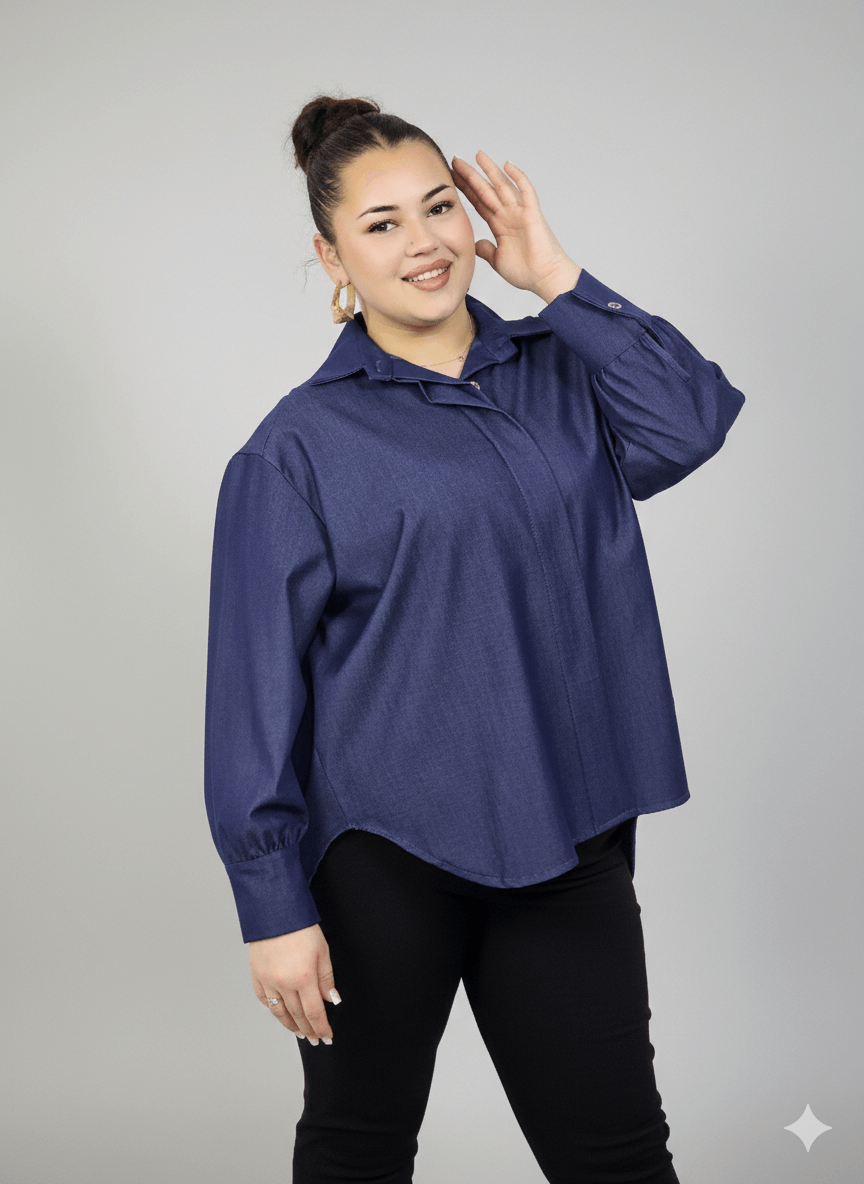 Koszula plus size damska klasyczna z kołnierzykiem – elegancka i wygodna