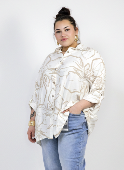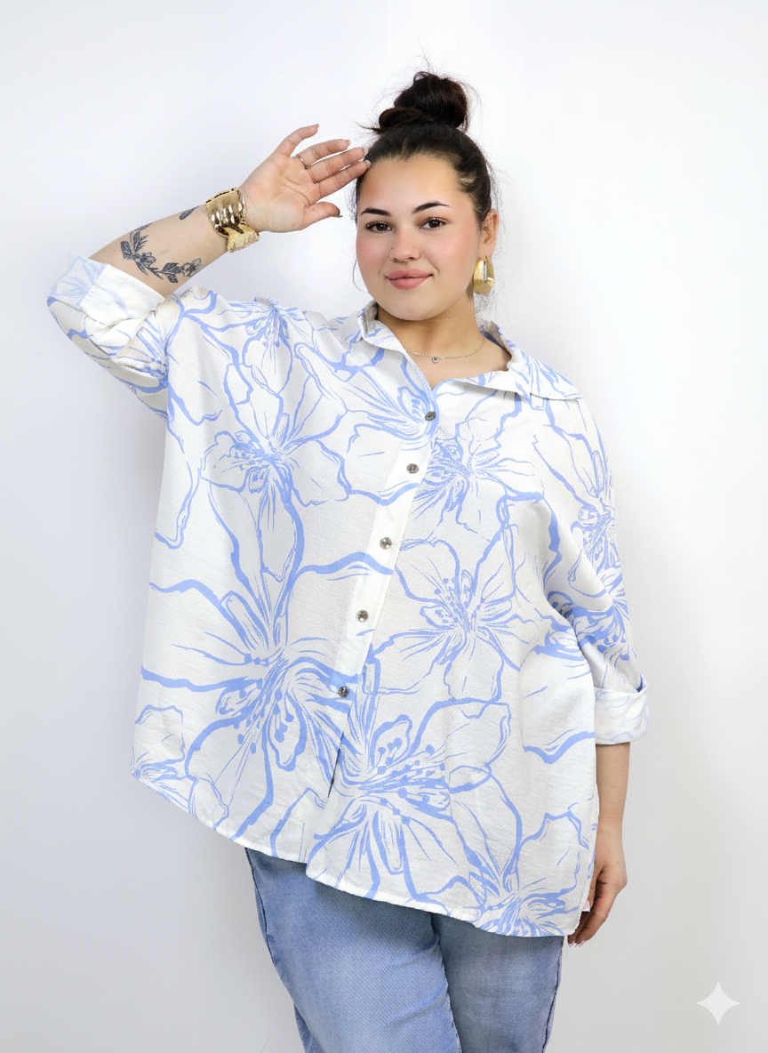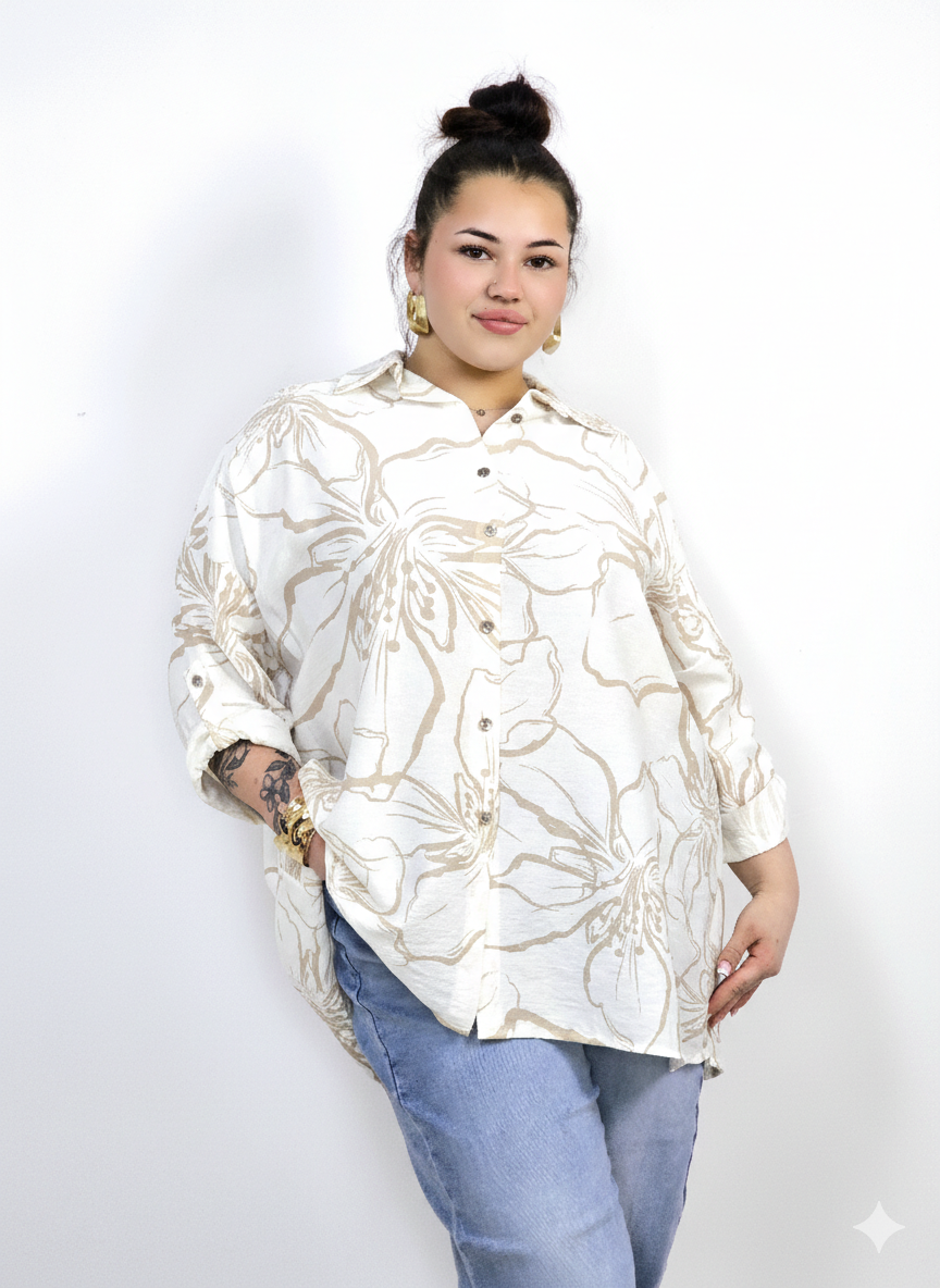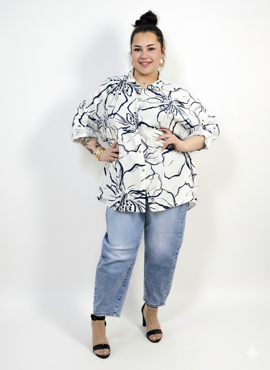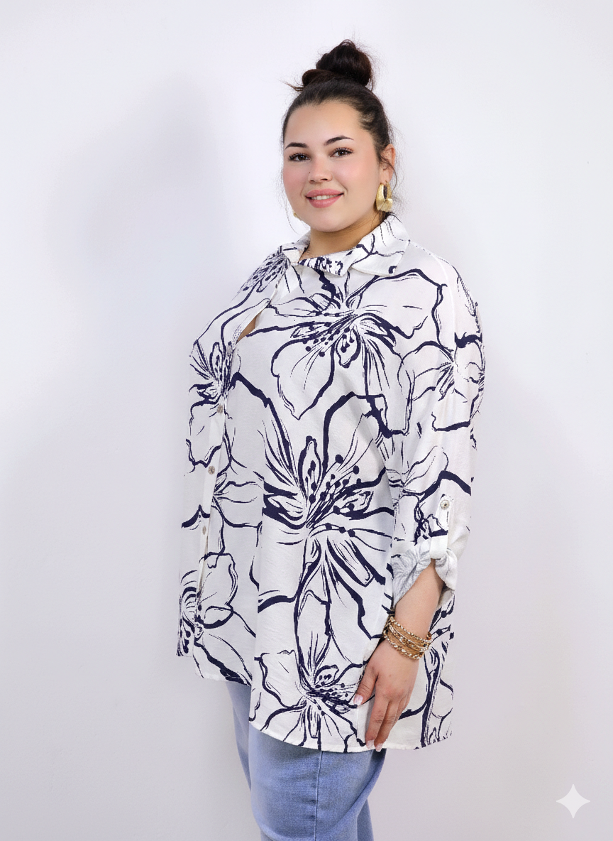 Koszula plus size z kobiecym wzorem i swobodnym fasonem