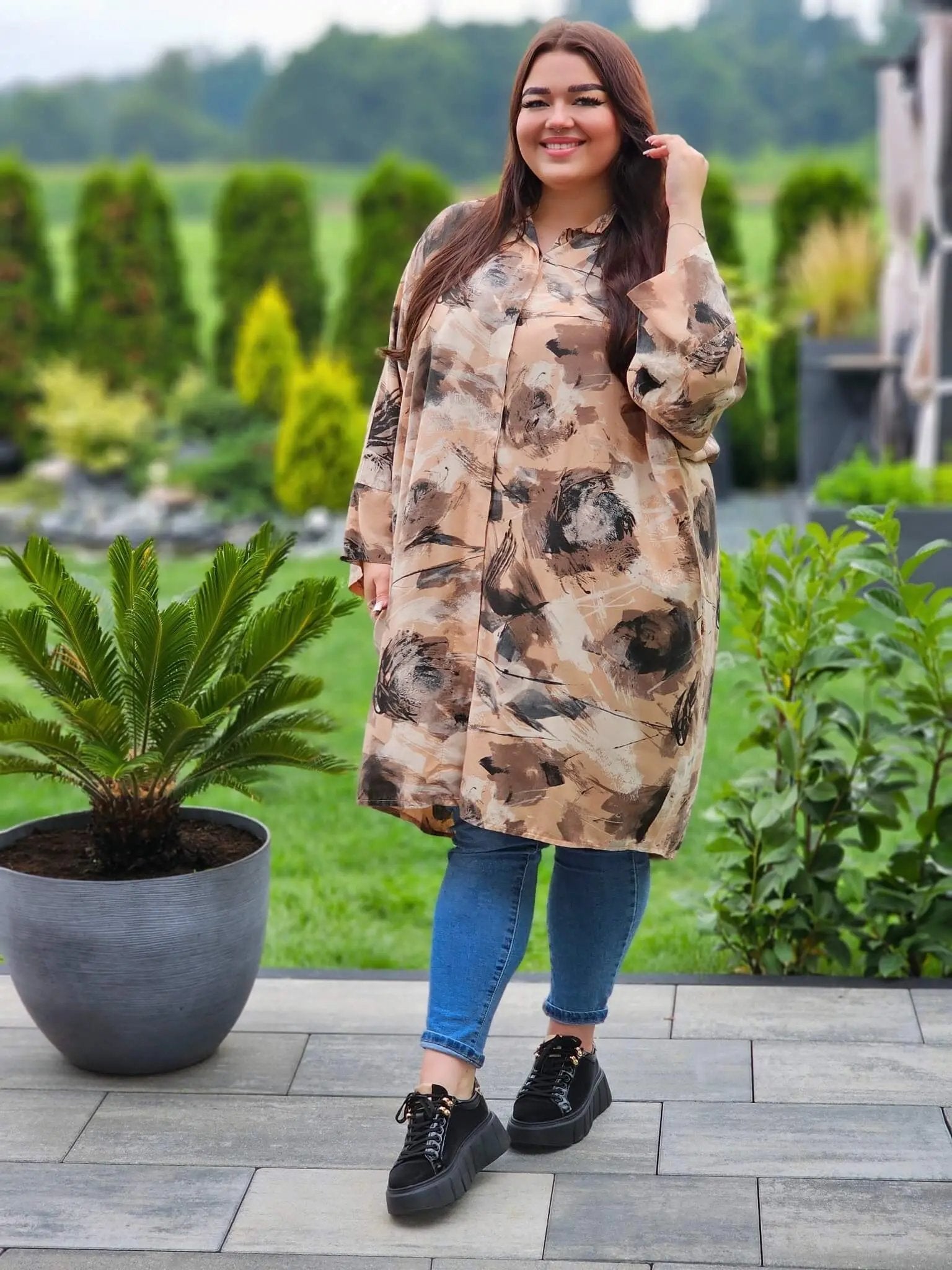 Koszulowa tunika z malarskim wzorem