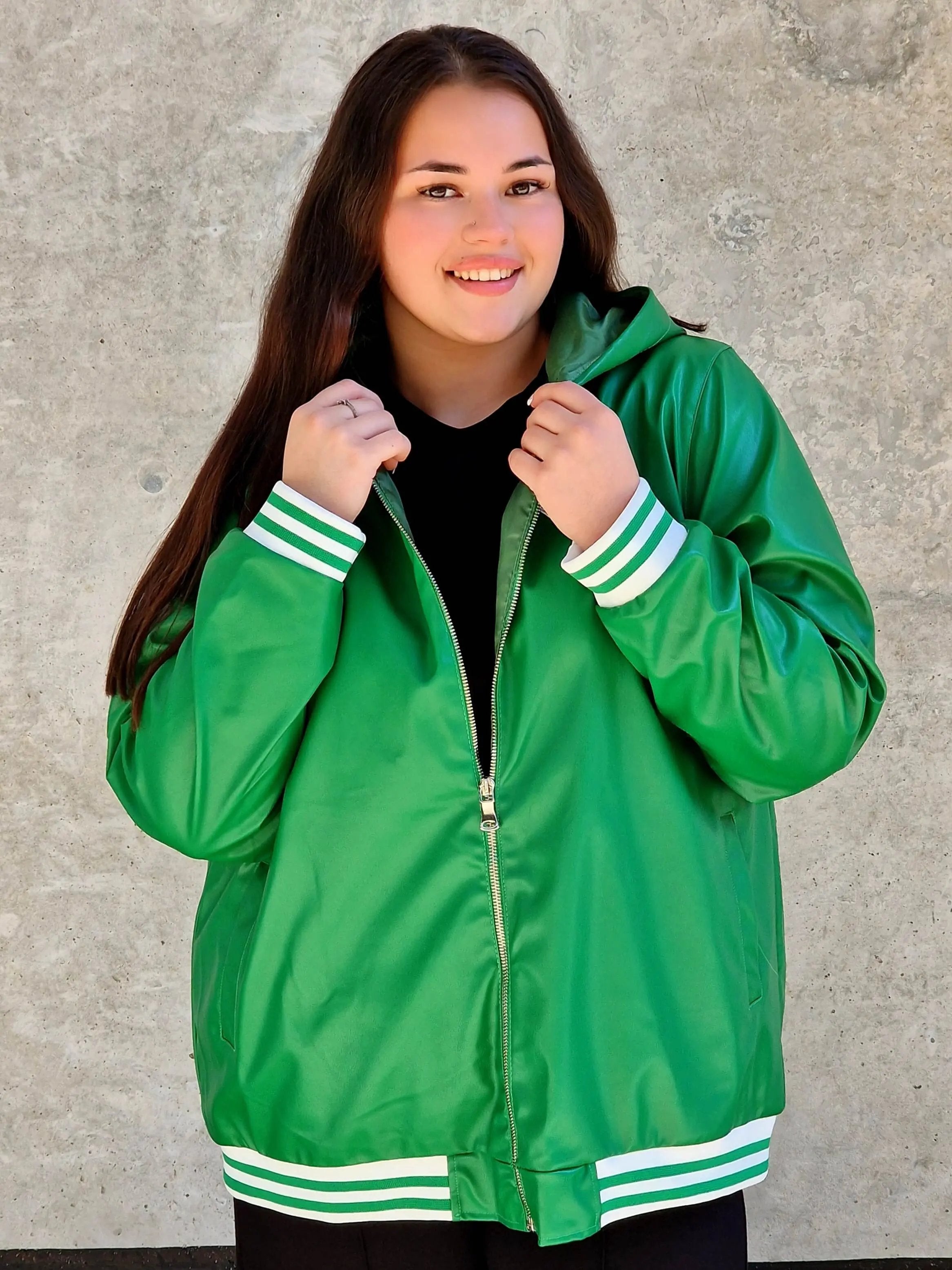 - Kurtka wykonana jest z tzw. eco skóry, co oznacza, że nie jest to naturalna skóra, lecz materiał sztuczny, który naśladuje skórę.