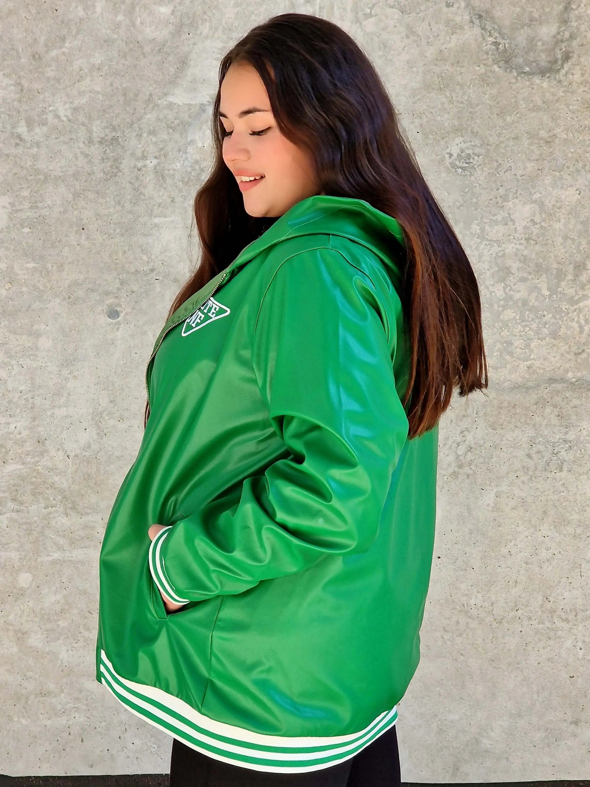 - Kurtka posiada kaptur, który pozwala na ochronę głowy przed deszczem lub wiatrem.