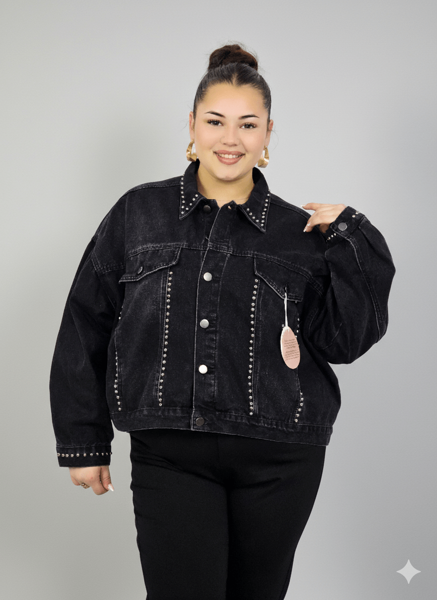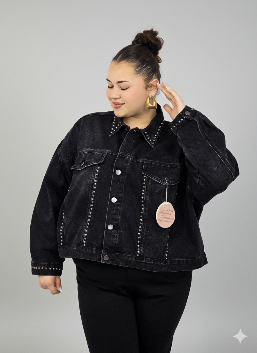 Kurtka plus size XXL z ćwiekami – czarna, modna i wyrazista
