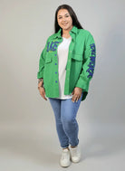 Kurtka plus size w intensywnym zielonym kolorze to modna propozycja dla kobiet, które cenią wygodę i wyrazisty styl. Model inspirowany koszulowym krojem doskonale wpisuje się w aktualne trendy mody plus size, łącząc funkcję lekkiej kurtki przejściowej z luźnym fasonem oversize. Dzięki temu kurtka plus size sprawdzi się idealnie w sezonie wiosennym, letnim oraz wczesną jesienią.