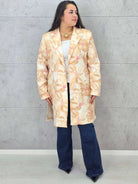 Subtelny kwiatowy nadruk w pastelowych tonach dodaje marynarce delikatności i elegancji, jednocześnie zachowując uniwersalność, dzięki której łatwo zestawisz ją z wieloma outfitami. Klasyczna długość do bioder sprawia, że marynarka świetnie współgra zarówno z jeansami, spodniami materiałowymi, jak i sukienkami. To idealna narzutka na co dzień i na bardziej eleganckie wyjścia, tworząca stylowy akcent w modzie plus size.