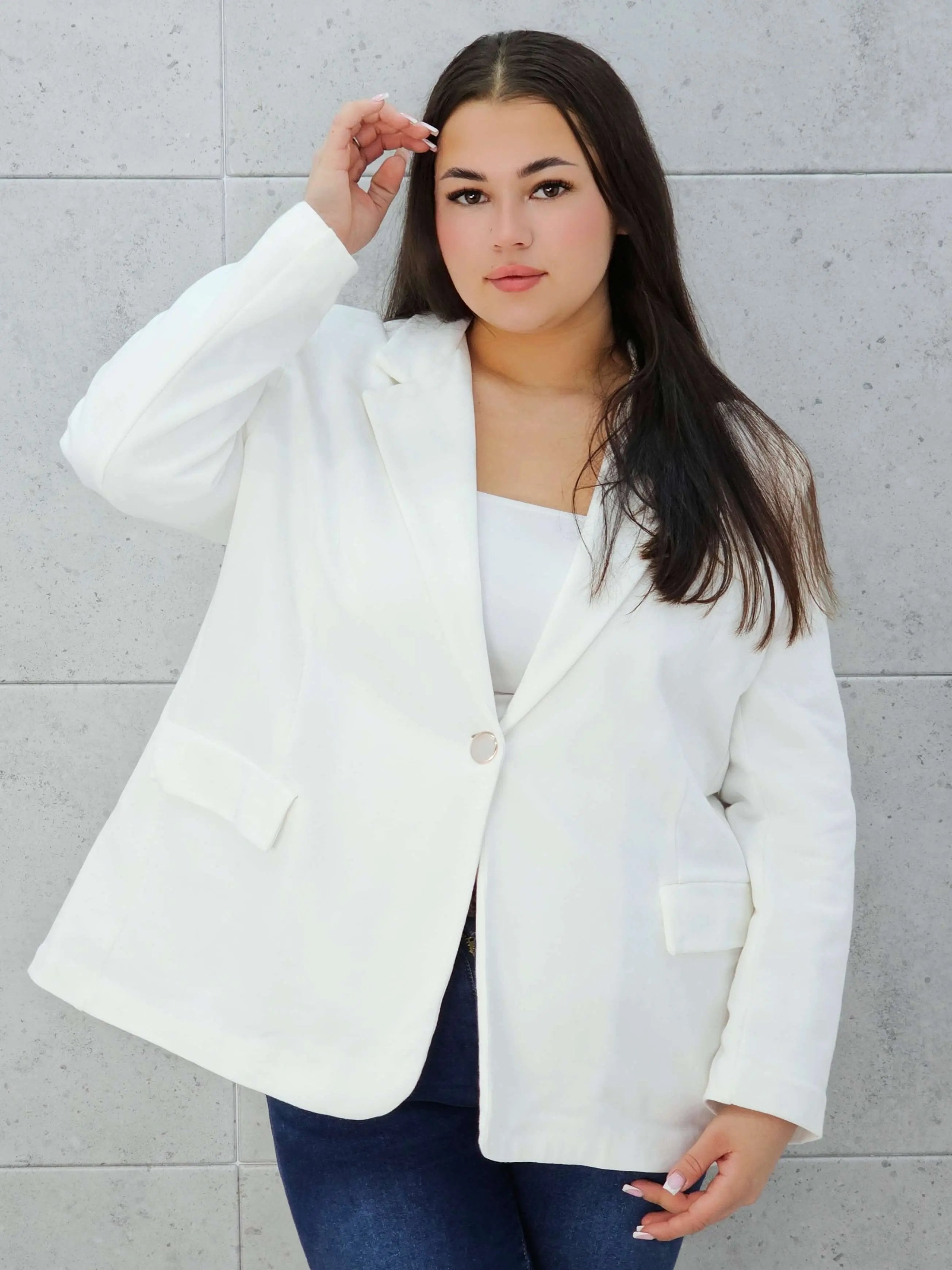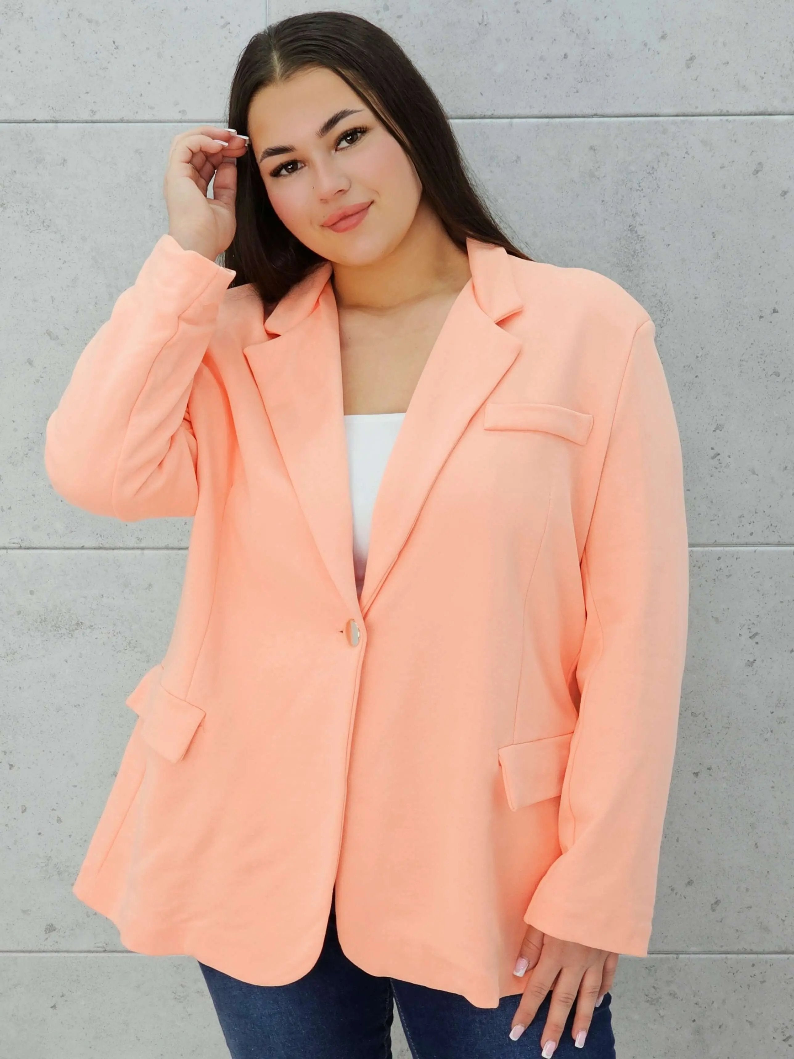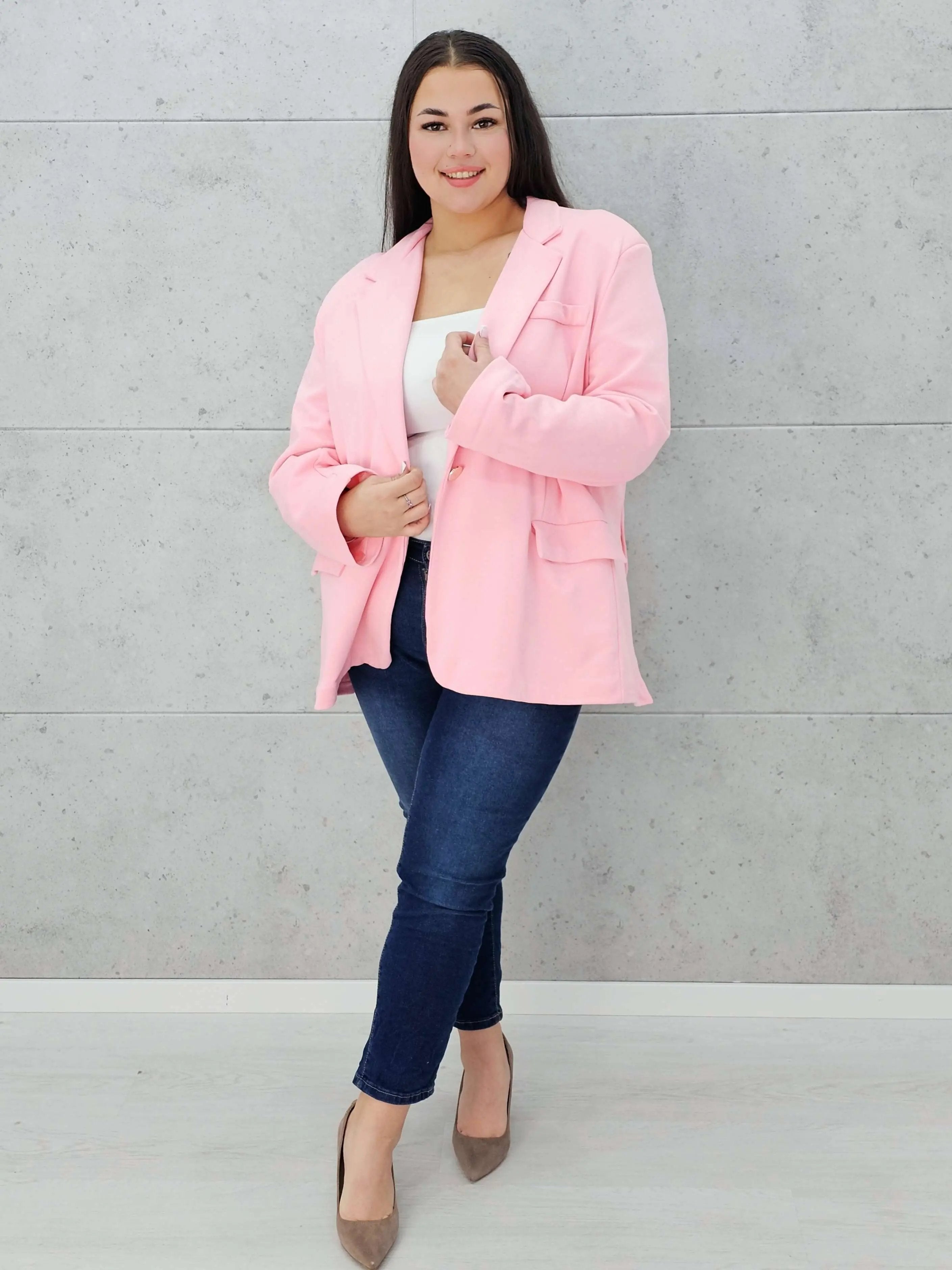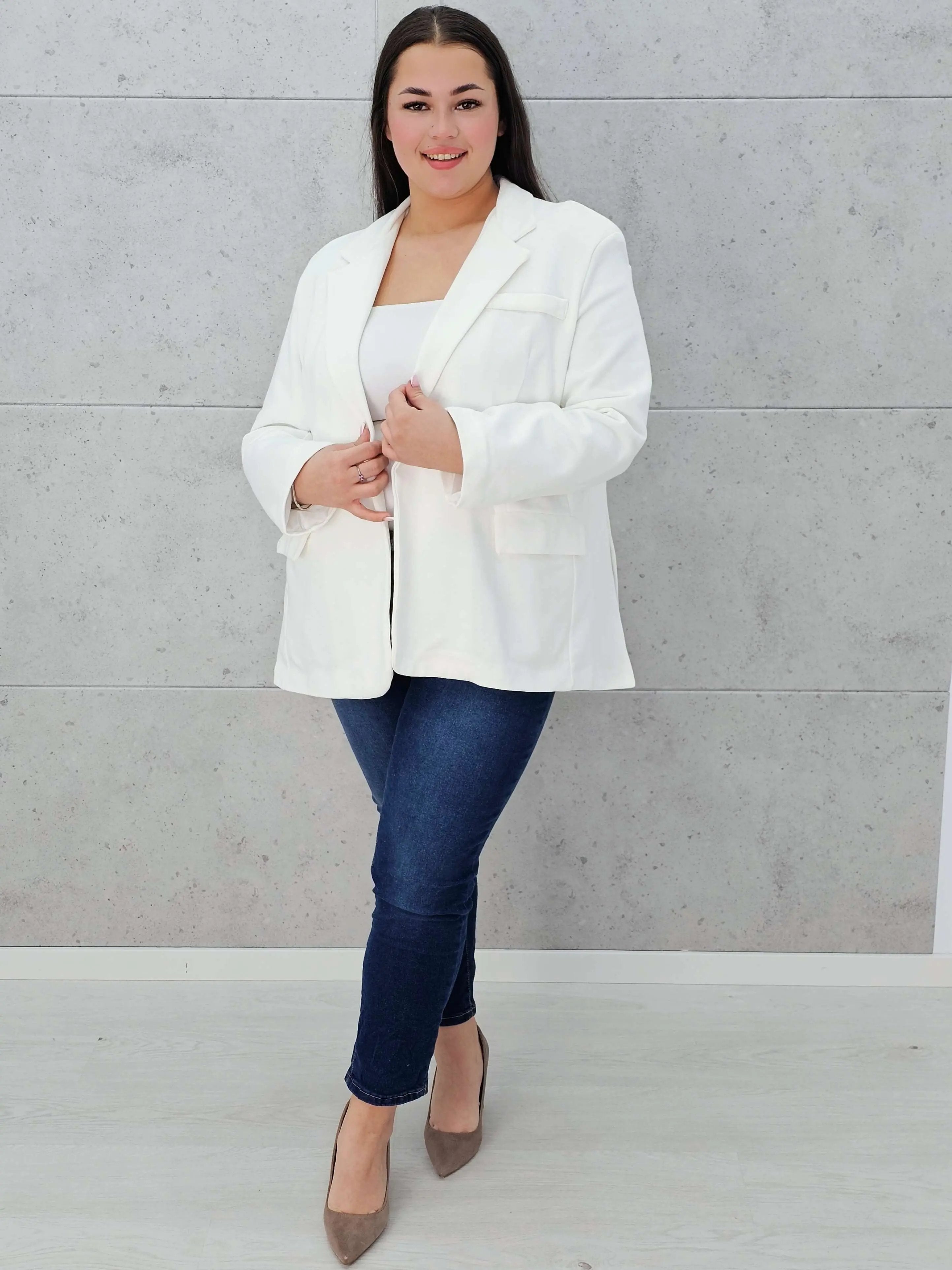 Swobodny krój gwarantuje komfort noszenia, a pojedyncze zapięcie na guzik dodaje elegancji.
