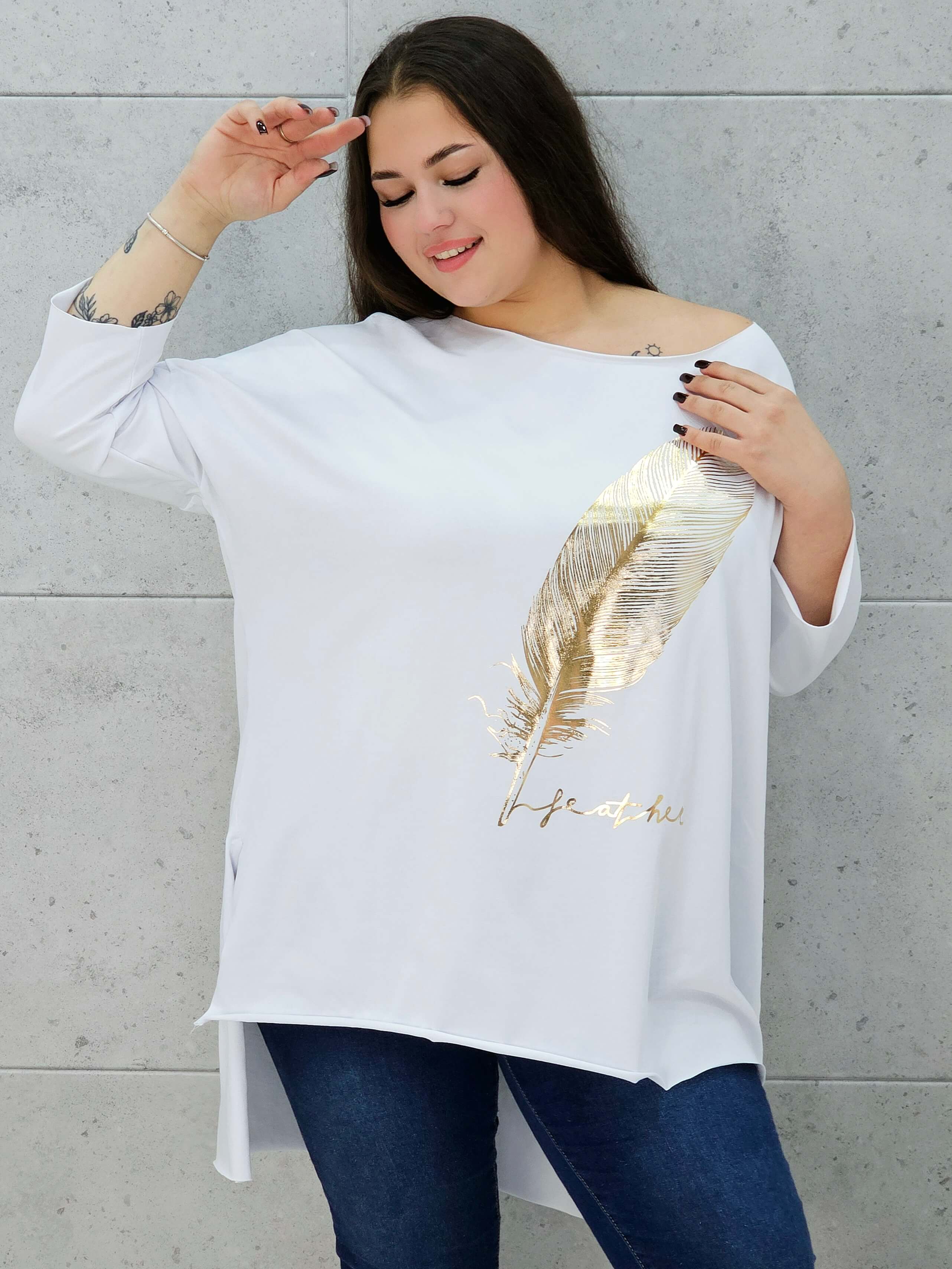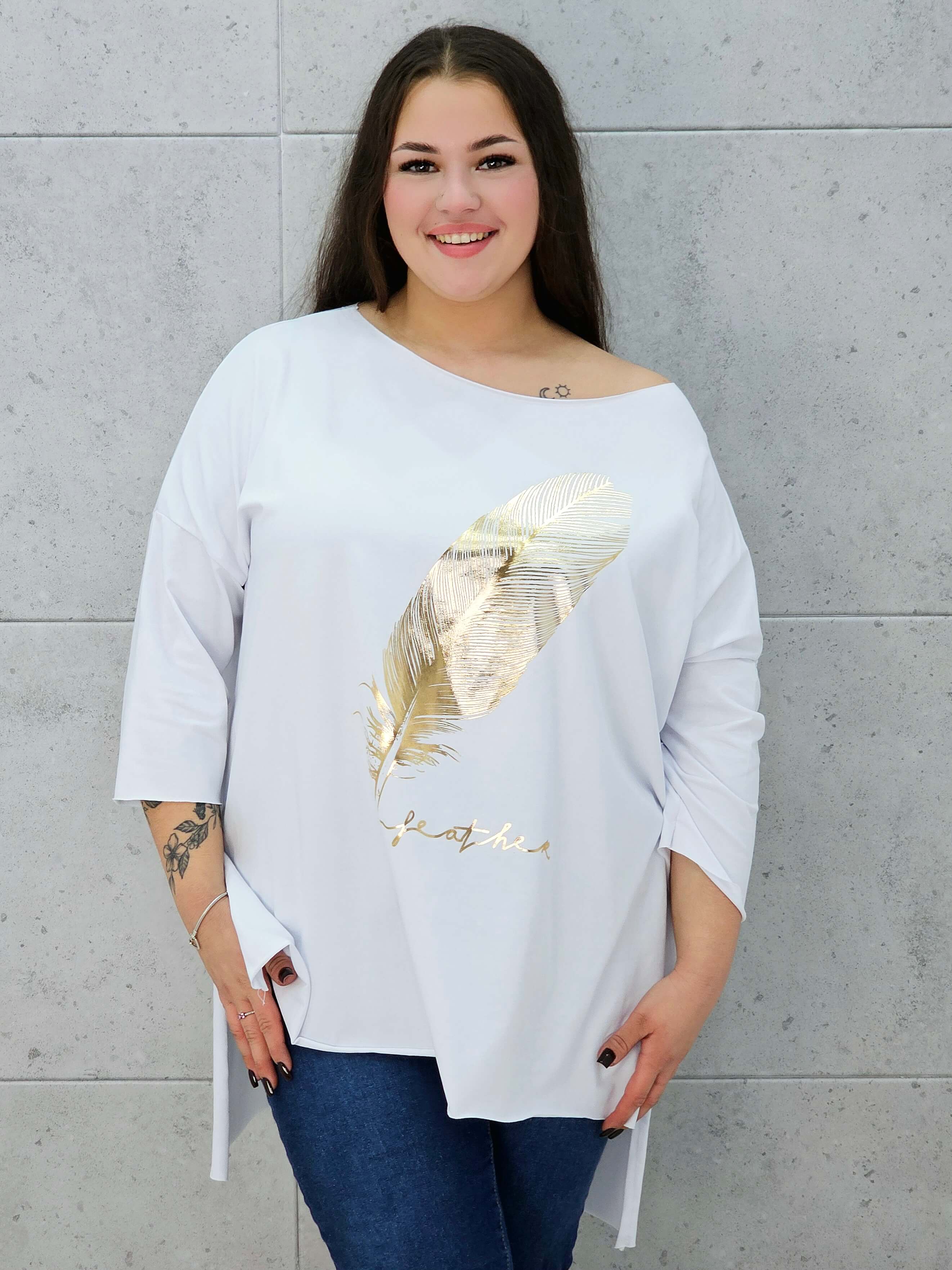 Nasza bluzka bawełniana plus size ze złotym piórkiem to propozycja dla kobiet, które cenią styl i wygodę.