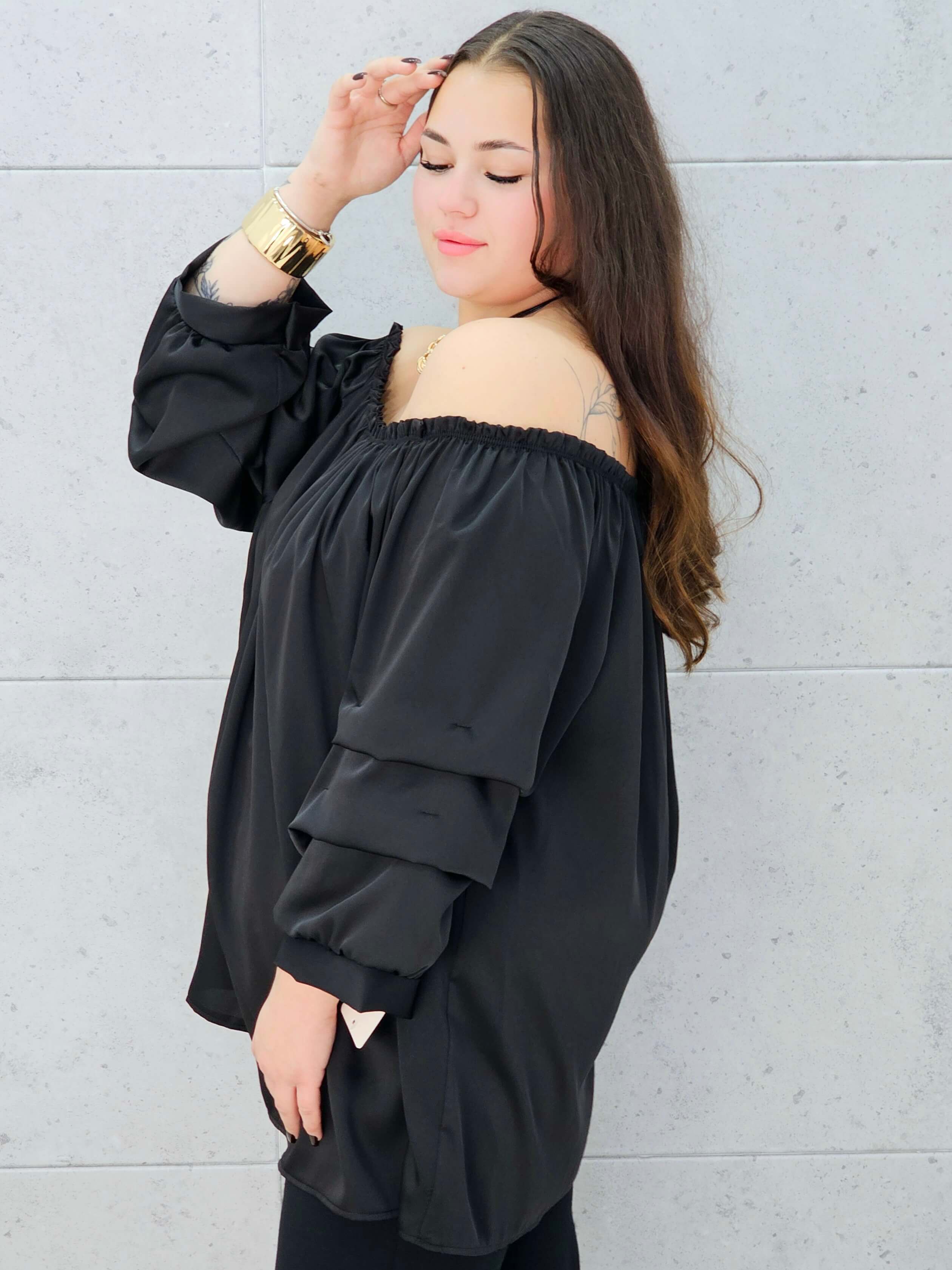 Nasza bluzka hiszpanka xxl to połączenie elegancji i komfortu w najlepszym wydaniu. Delikatny materiał pięknie się układa, a dekolt typu hiszpanka podkreśla ramiona i dodaje bluzce lekkości.