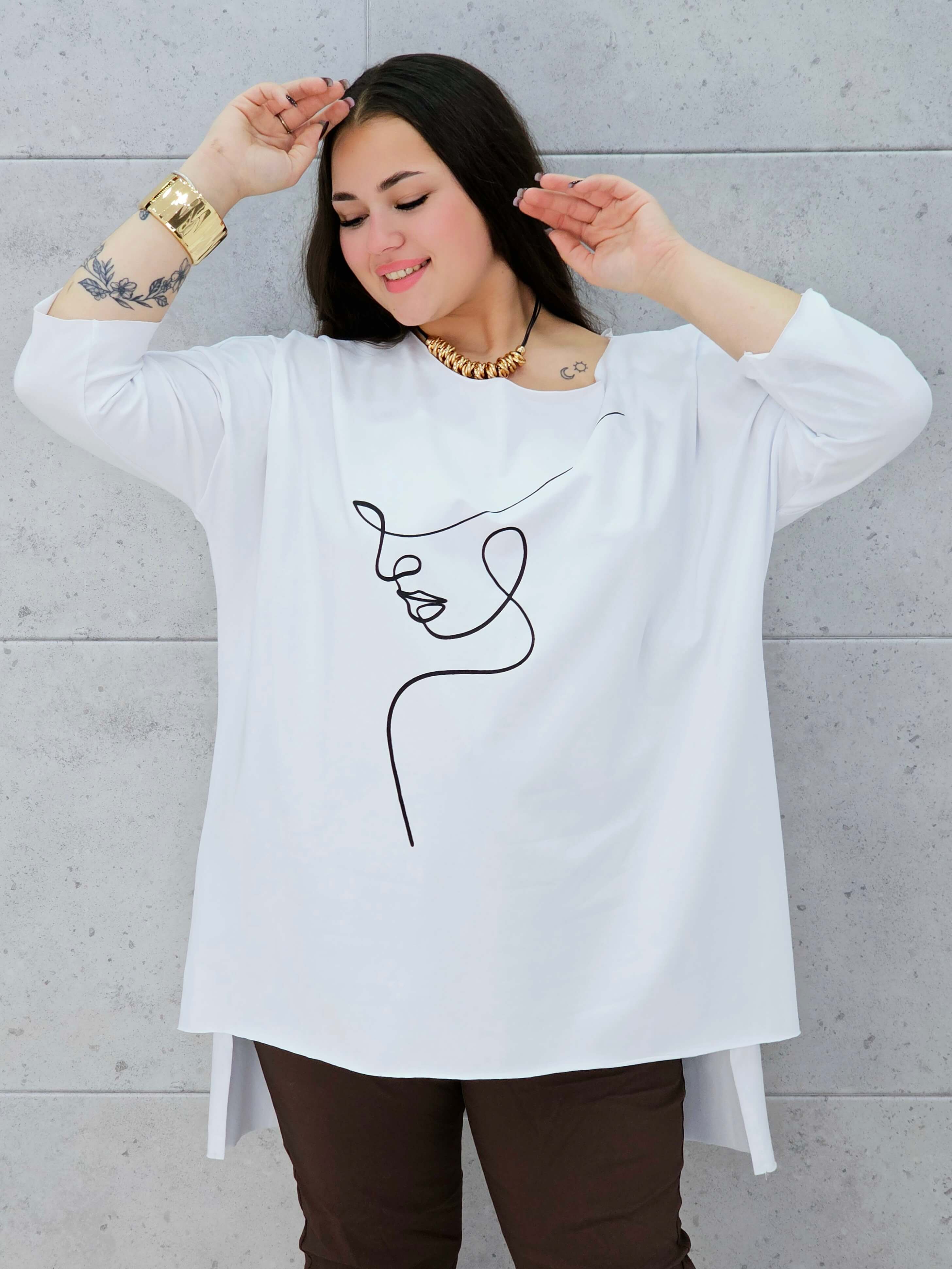Bluzka plus size z nadrukiem twarzy to połączenie komfortu i wyjątkowego designu.