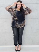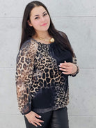 Ta bluzka to idealny wybór dla kobiet, które kochają przyciągać spojrzenia i czuć się wyjątkowo! Zmysłowy, panterkowy wzór w ciepłych odcieniach beżu i czerni doda charakteru każdej stylizacji. Lekko transparentne rękawy i luźny krój sprawią, że poczujesz się swobodnie i stylowo – zarówno na co dzień, jak i na wieczorne wyjście