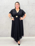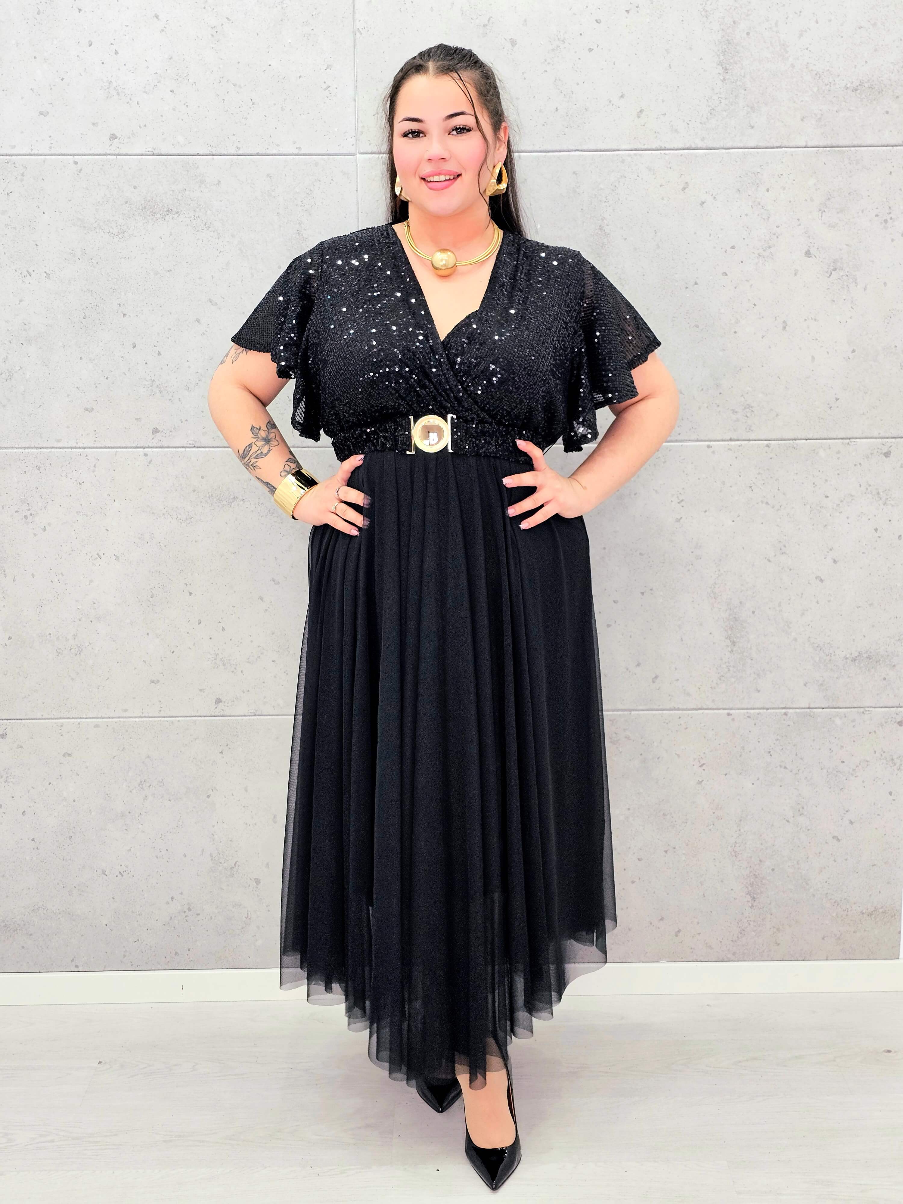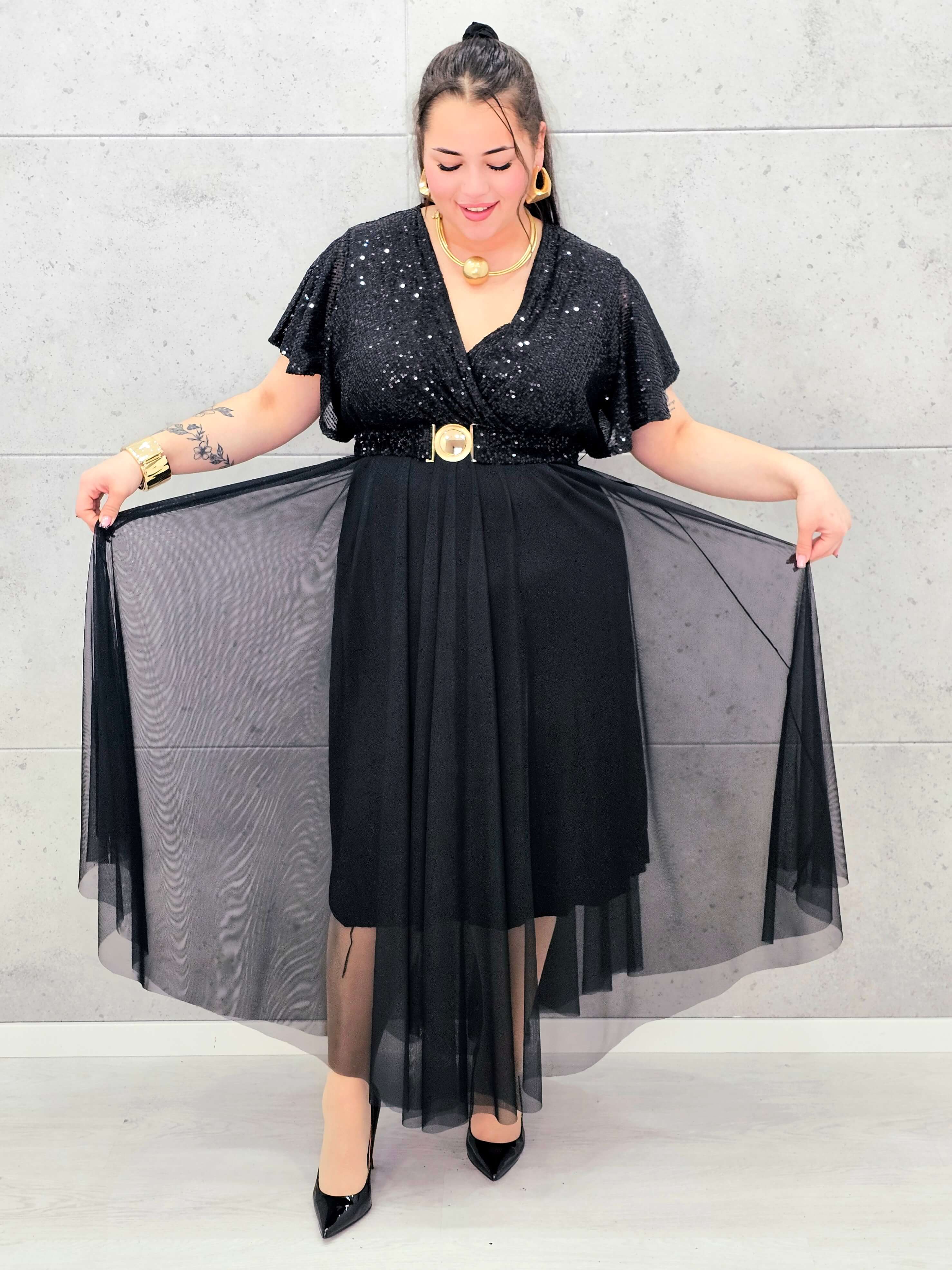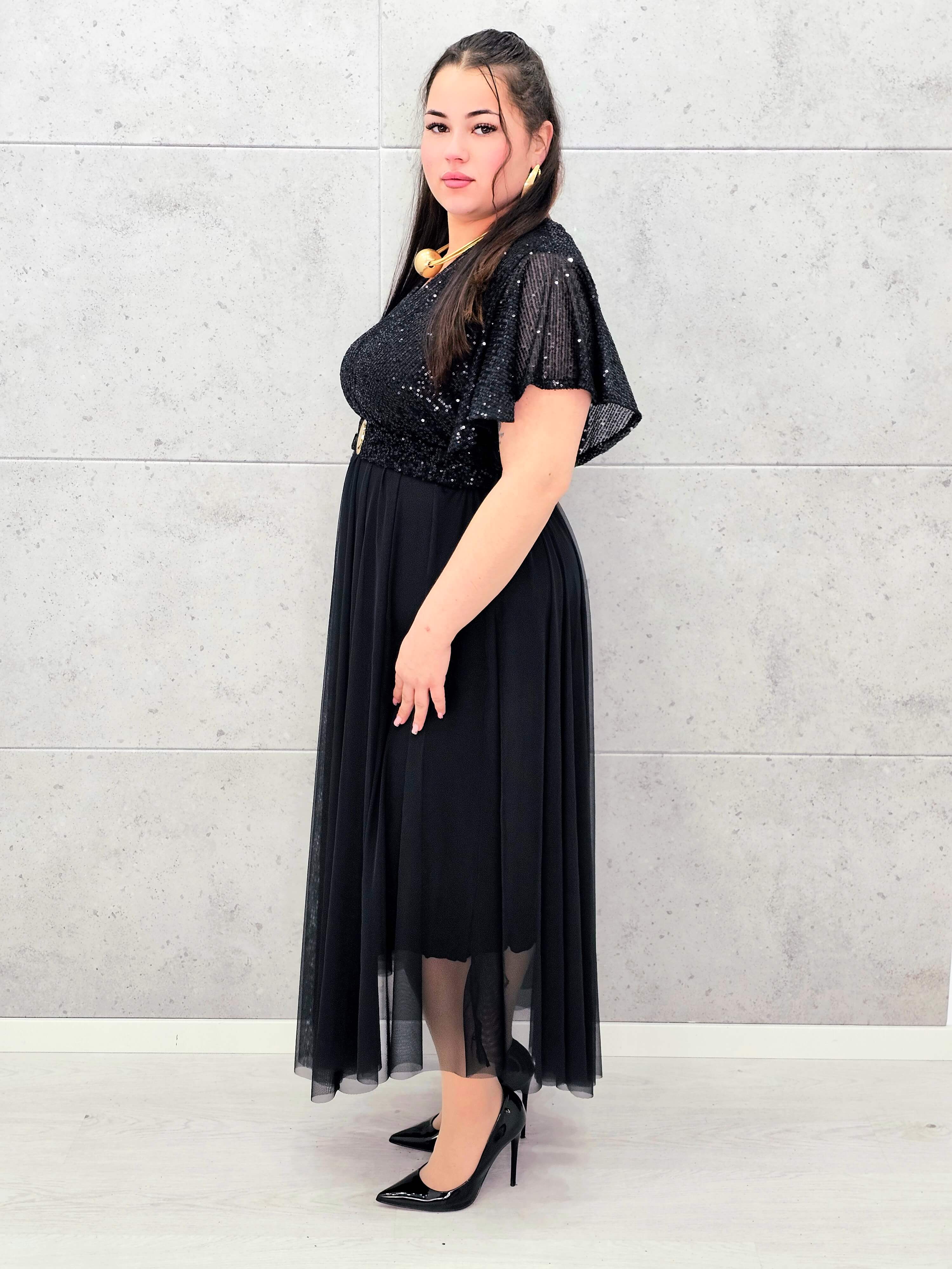 Elegancka sukienka XXL z cekinową górą i plisowanym dołem – wyjątkowa kolekcja plus size