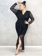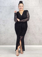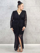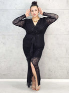 Sukienka plus size to kwintesencja wieczorowej elegancji. Połączenie czarnej, pełnej detalu koronki z delikatnie połyskującymi aplikacjami tworzy efekt luksusu, który przyciąga spojrzenia. Kopertowy dekolt pięknie podkreśla biust, a elastyczna talia dopasowuje się do sylwetki, tworząc kobiecą linię.