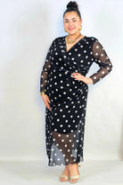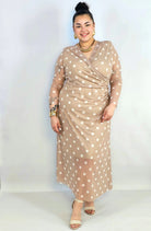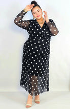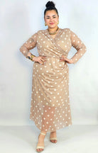 Sukienka plus size kopertowa w grochy – elegancka midi z marszczeniem