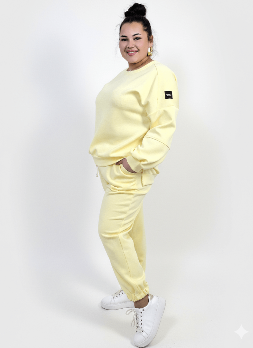 Komplet dresowy plus size XXL to zestaw, który daje maksymalny komfort i wygląda świetnie w każdej codziennej stylizacji. Miękka bluza o luźniejszym kroju oraz spodnie typu joggery tworzą komplet, który możesz nosić razem lub osobno, budując wiele zestawów w stylu mody plus size. Kolory do wyboru: pastelowy żółty, błękit i pudrowy róż – każdy z nich pięknie odświeża look i dodaje lekkości.