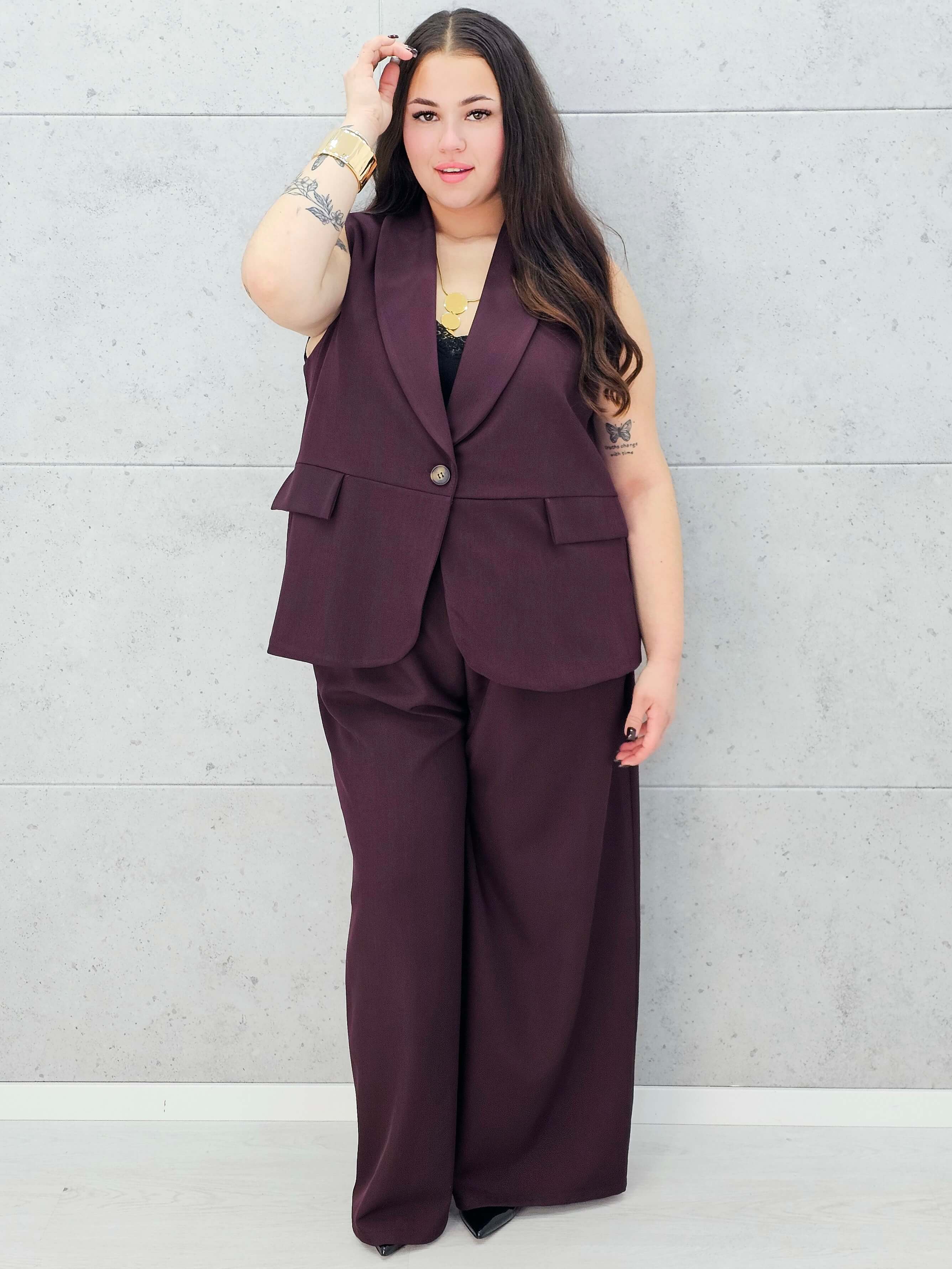 Stylowy komplet z kamizelką plus size – idealny na wyjątkowe okazje i codzienną elegancję.