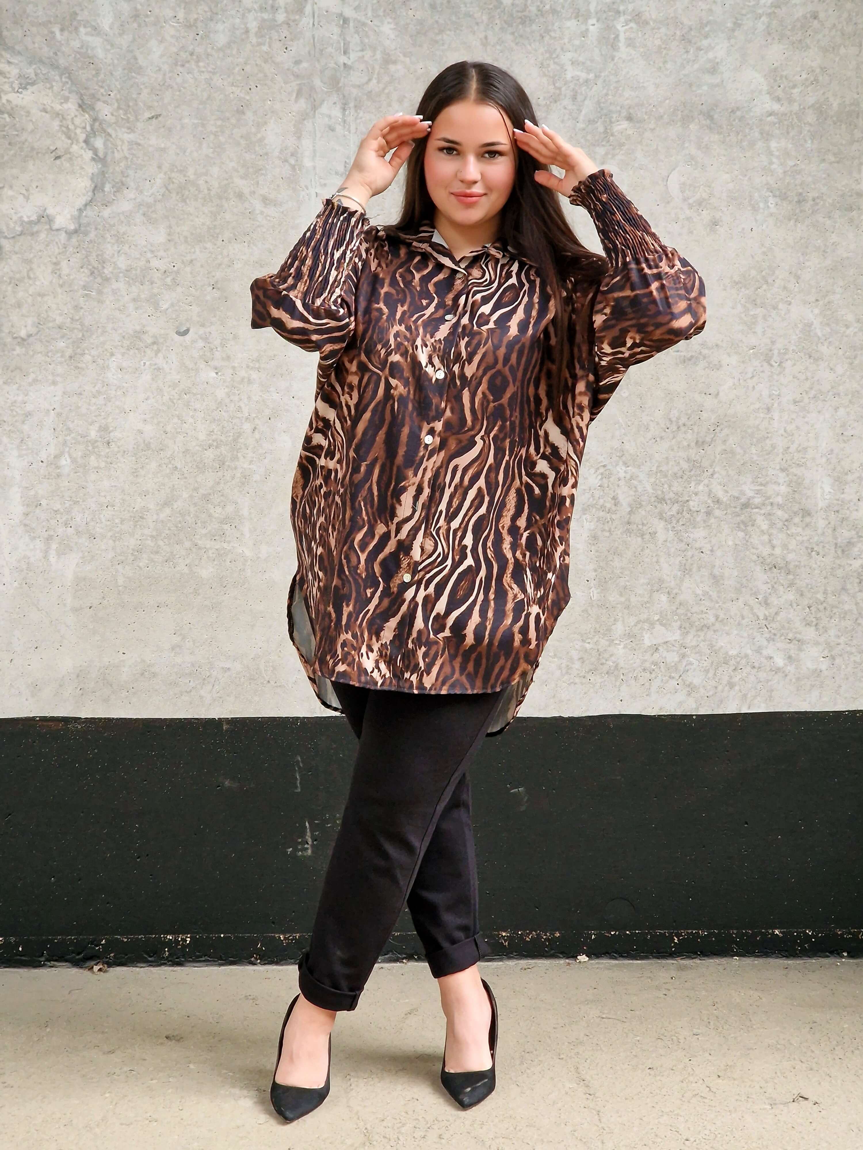 Koszula plus size o luźnym kroju w zwierzęcy print – Stylowa XL