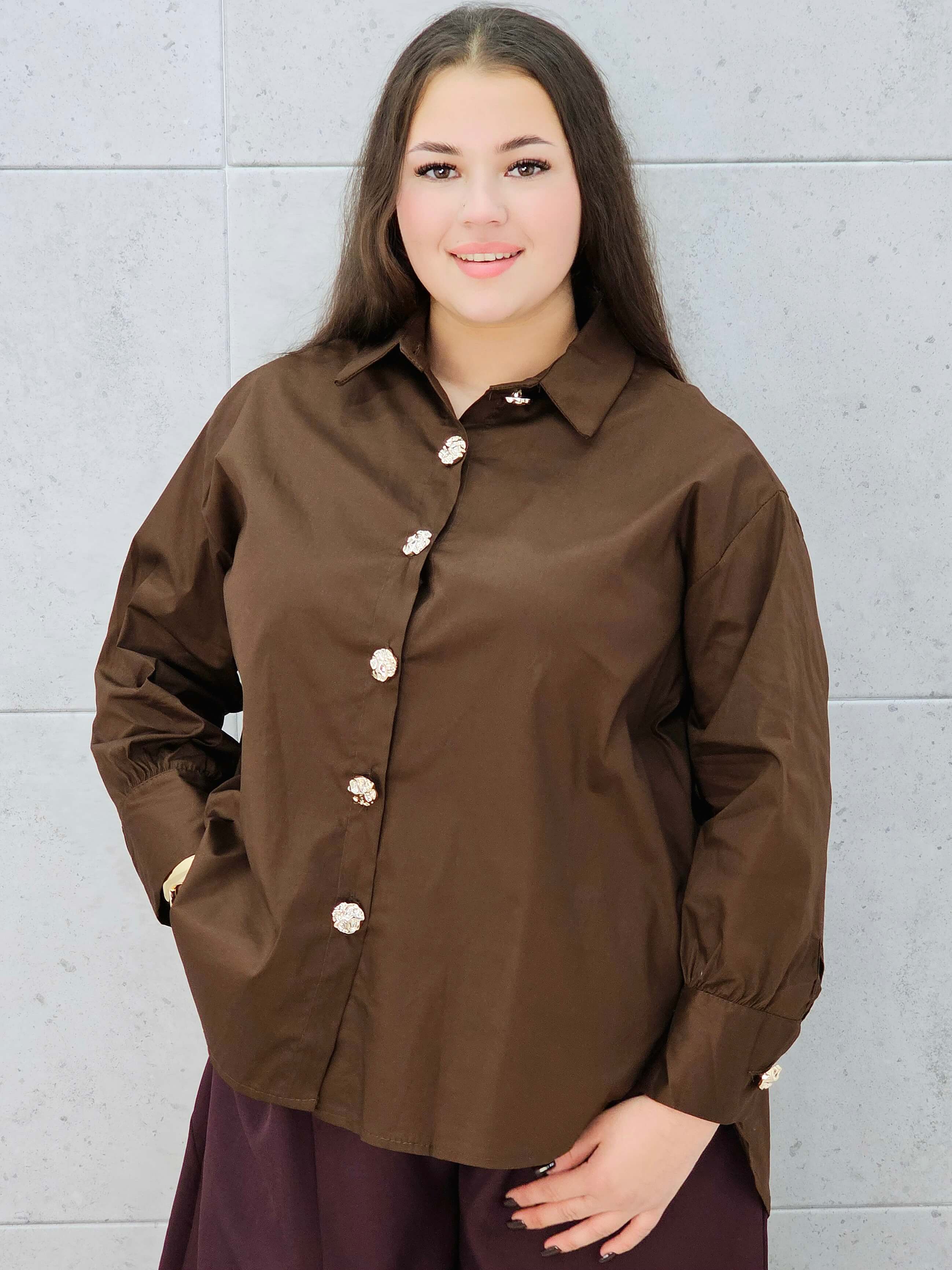 Klasyczna, a jednocześnie wyjątkowa – koszula plus size z ozdobnymi guzikami to model, który dodaje elegancji w każdej stylizacji