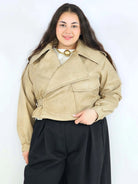 Kurtka plus size – modna ramoneska XXL w eleganckim beżu