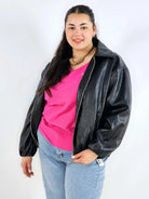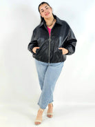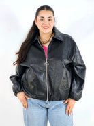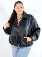 Kurtka plus size posiada praktyczne kieszenie oraz suwak z ozdobnym uchwytem, który podkreśla nowoczesny charakter modelu. To fason, który świetnie wygląda ze spodniami, legginsami czy sukienką i doskonale wpisuje się w estetykę mody plus size.